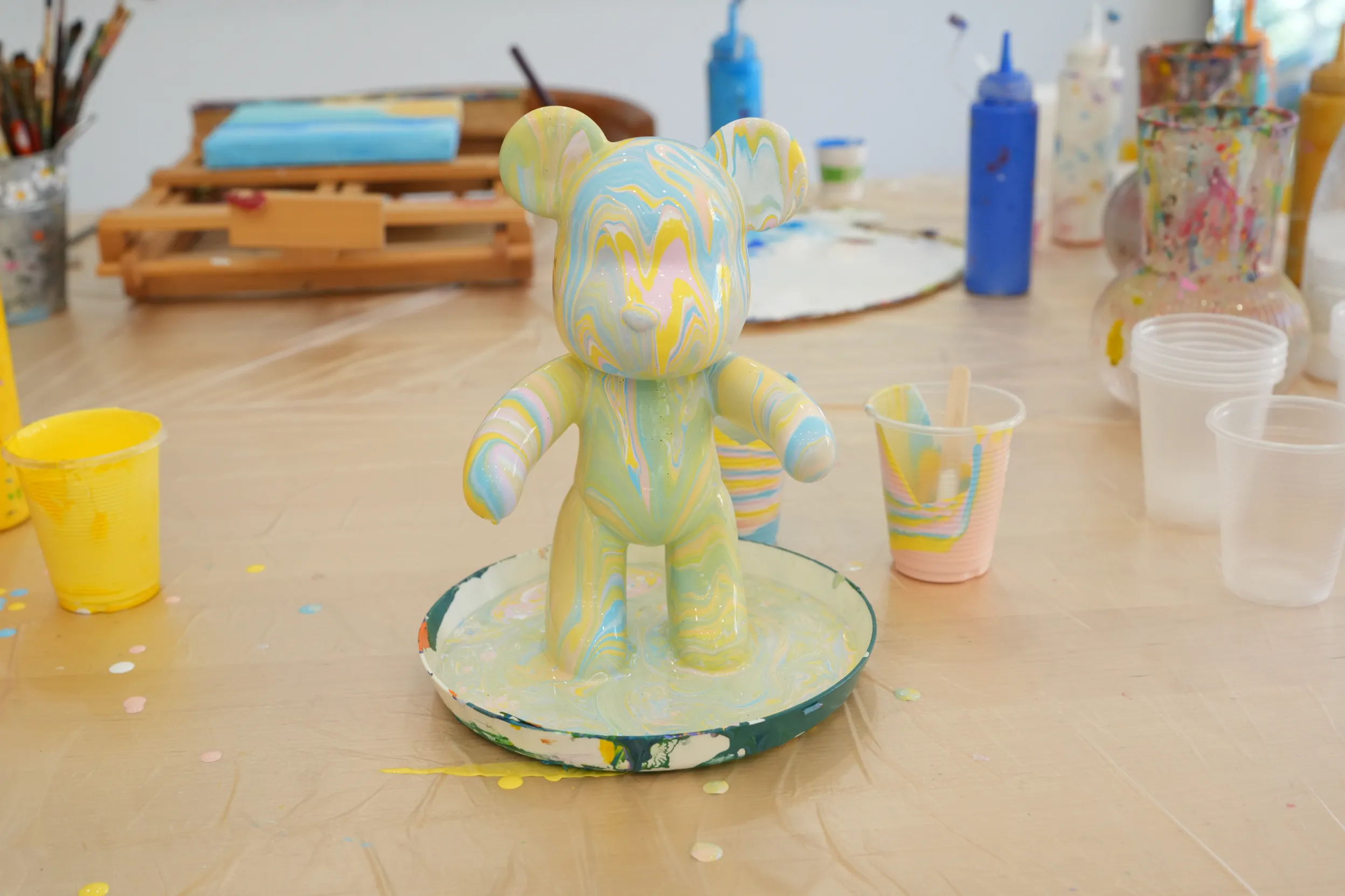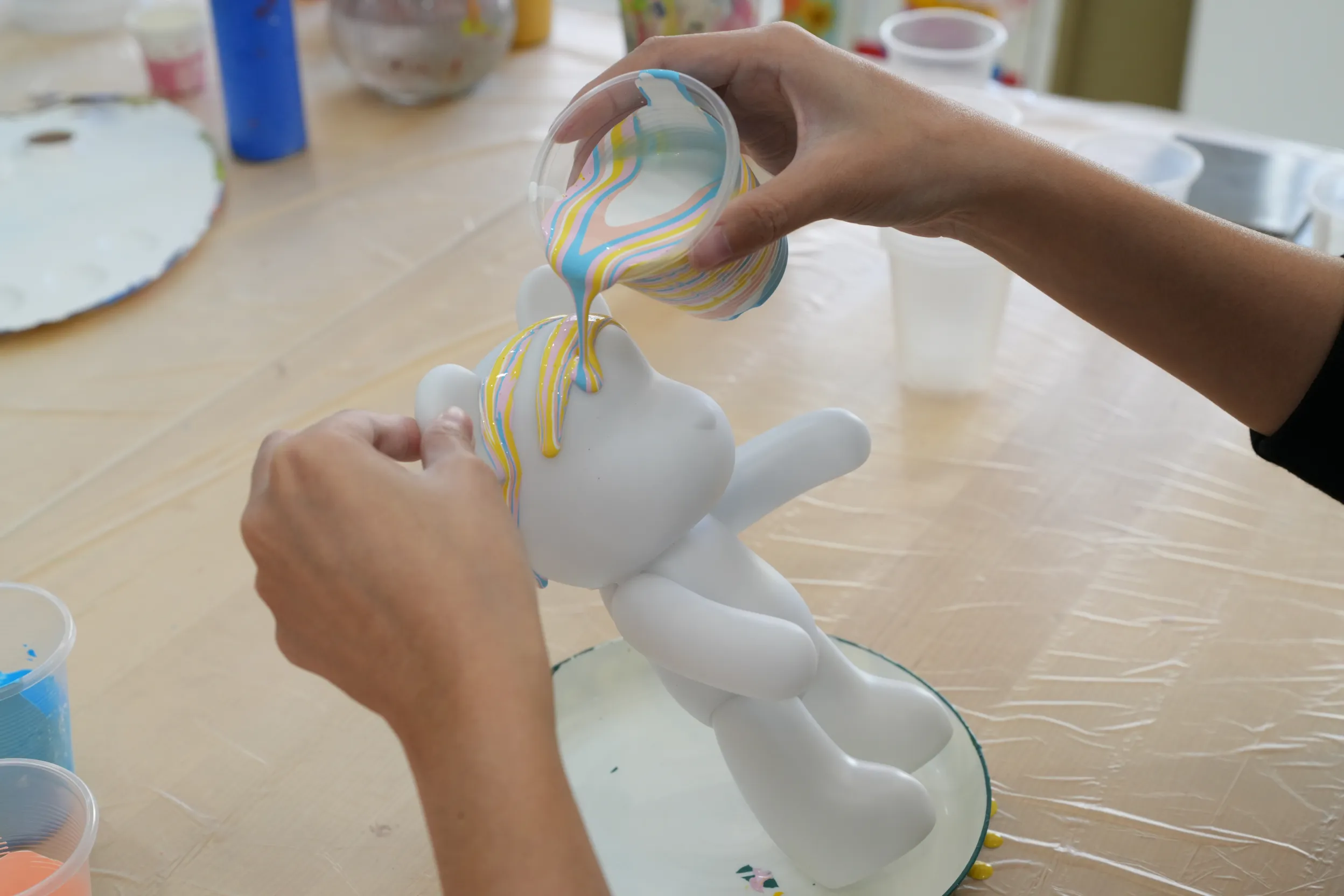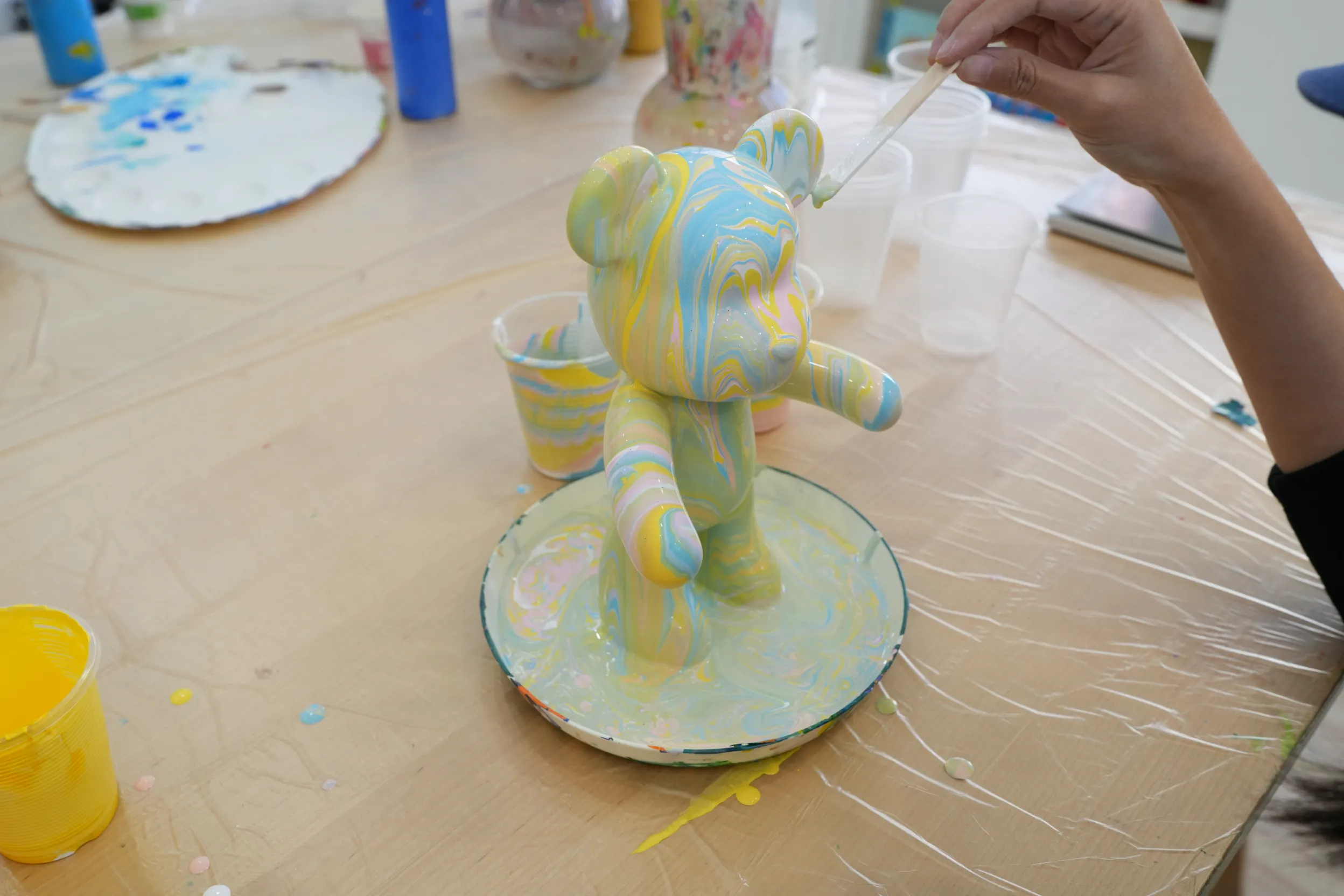 ▼因為流體熊顏料全乾需要1 ~ 2天,當天無法將作品帶走,之後再跟老師約時間拿作品,或是選擇用寄送的也OK。