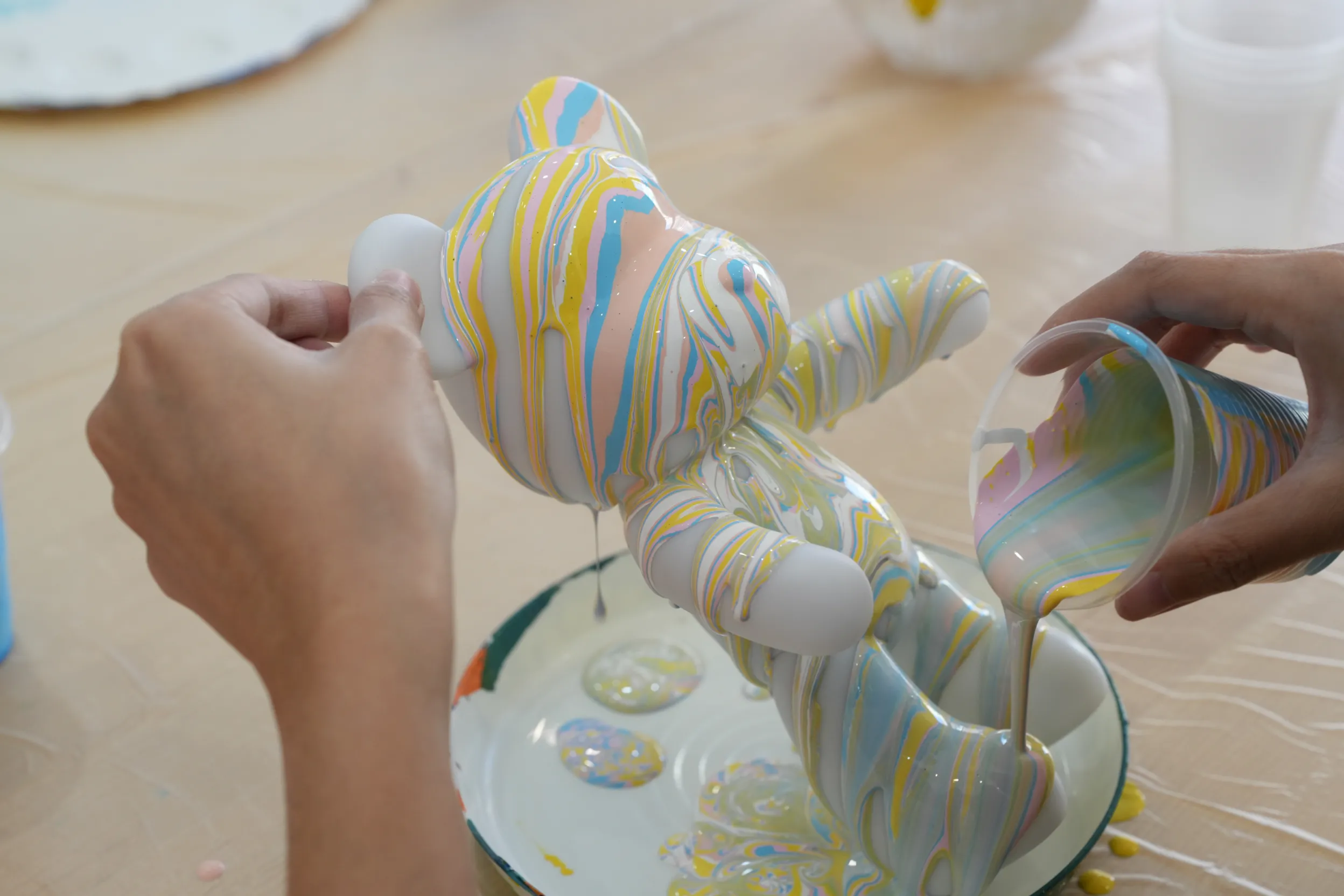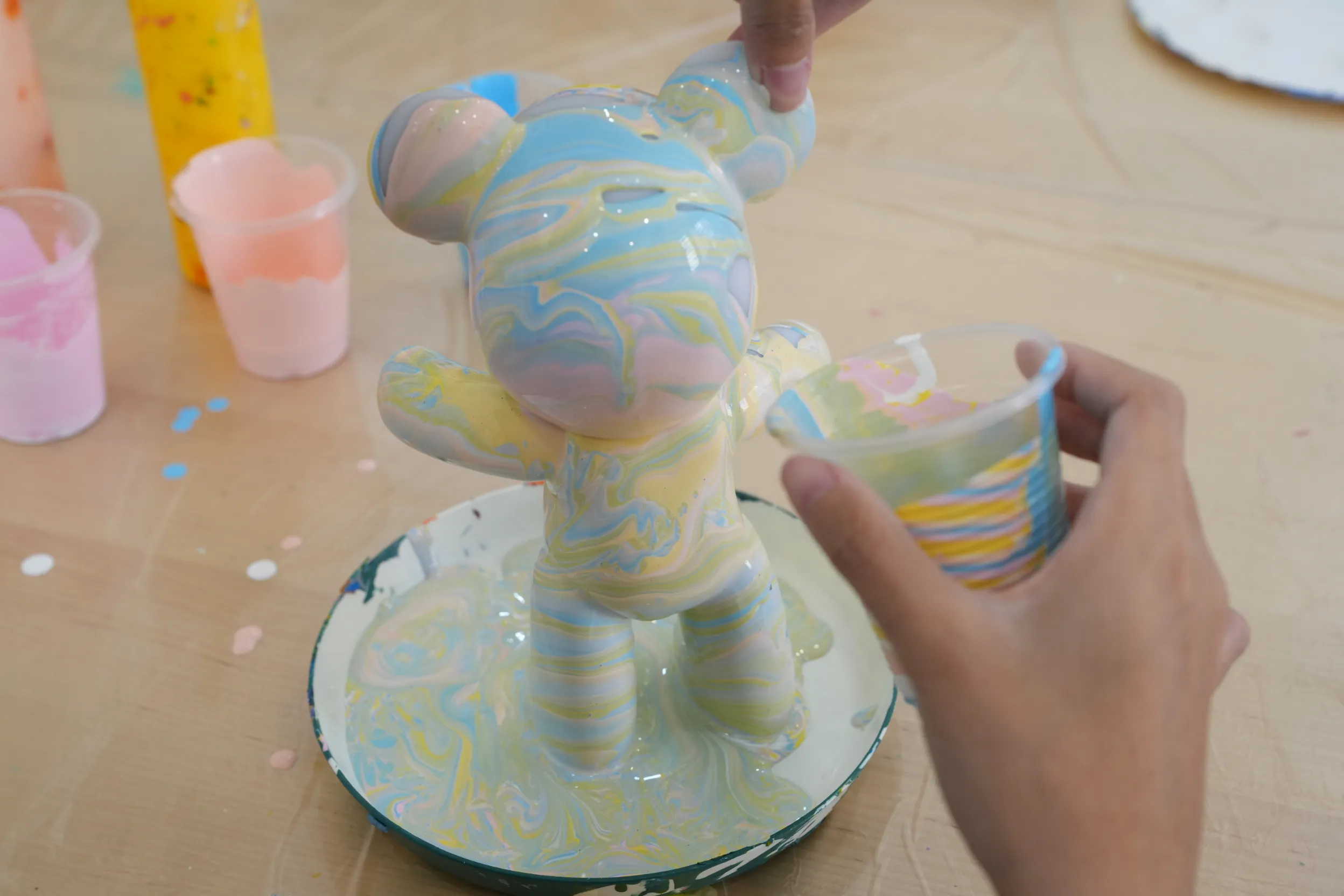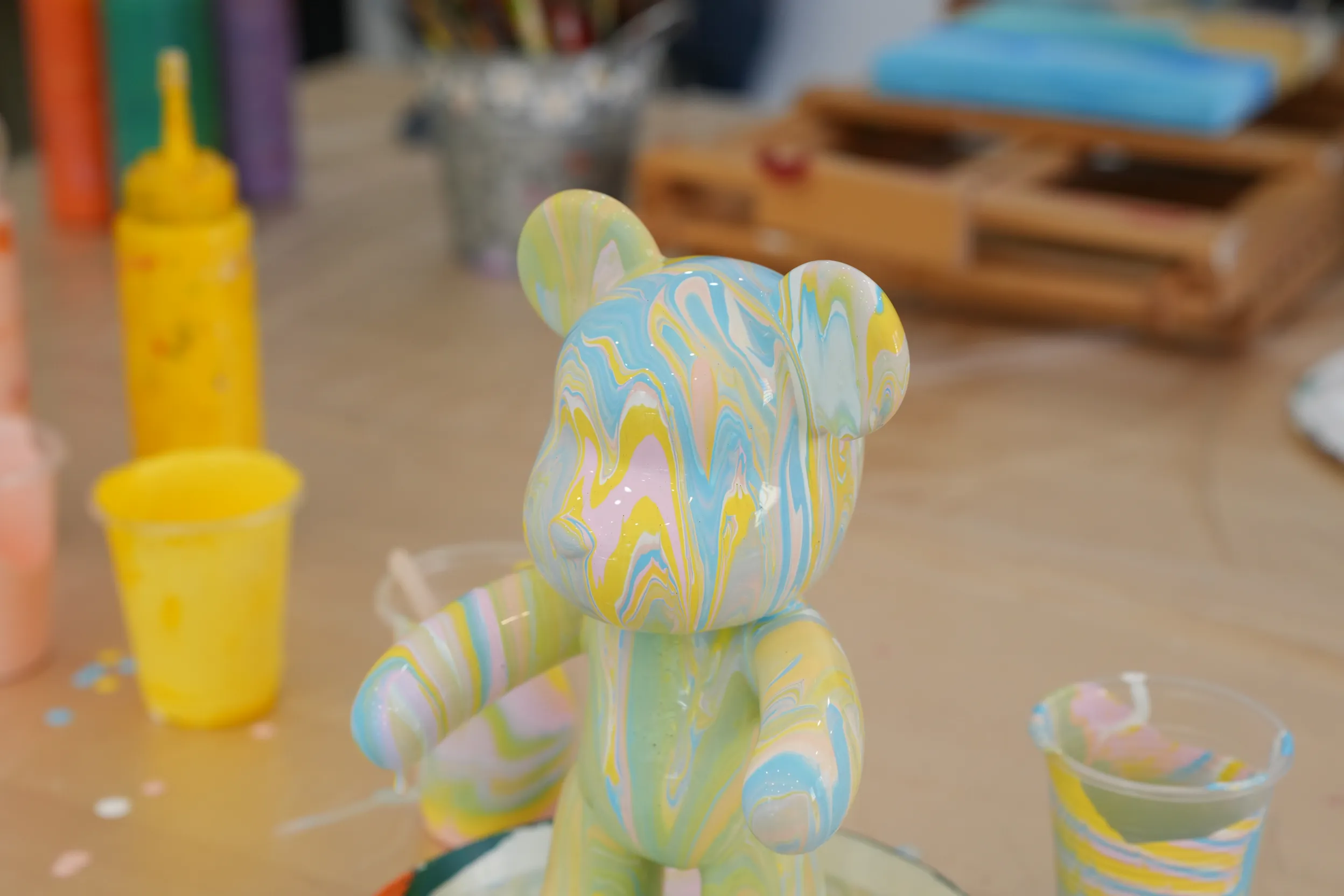 ▼因為流體熊顏料全乾需要1 ~ 2天,當天無法將作品帶走,之後再跟老師約時間拿作品,或是選擇用寄送的也OK。