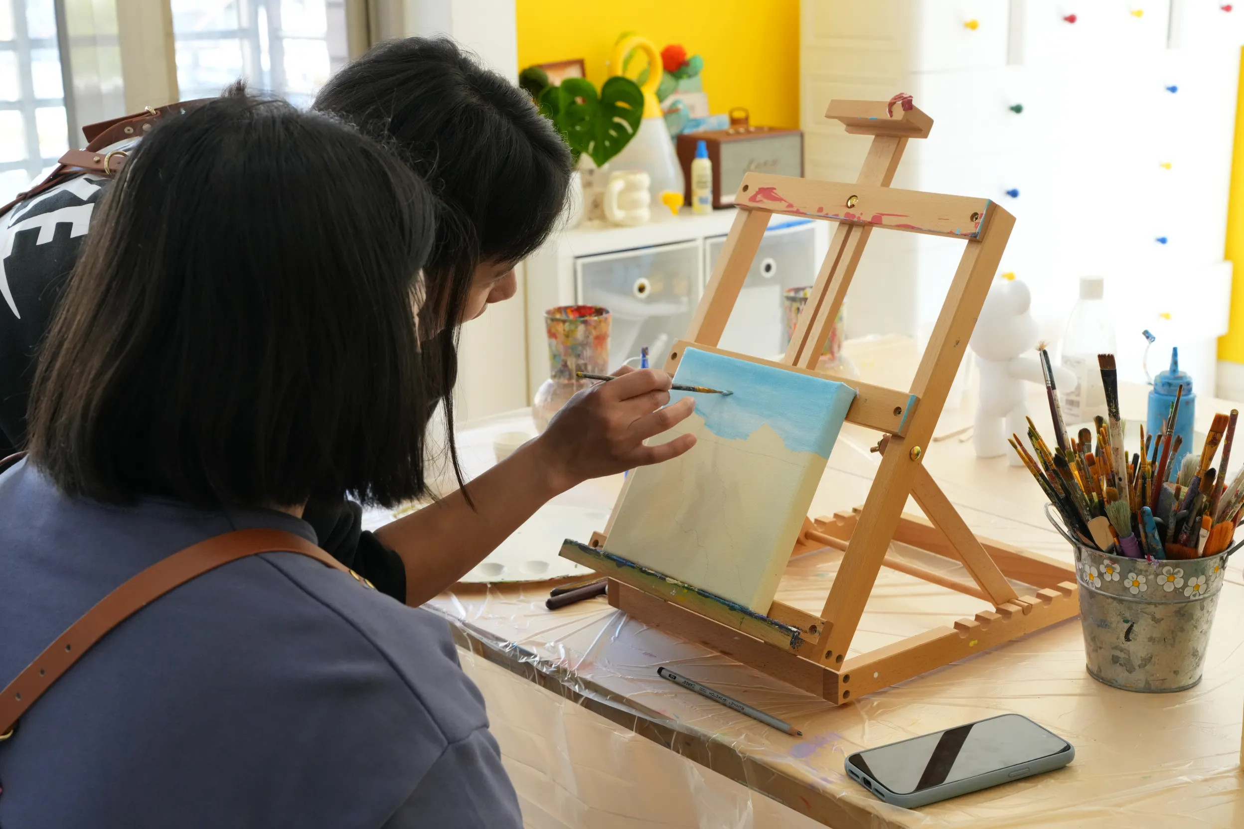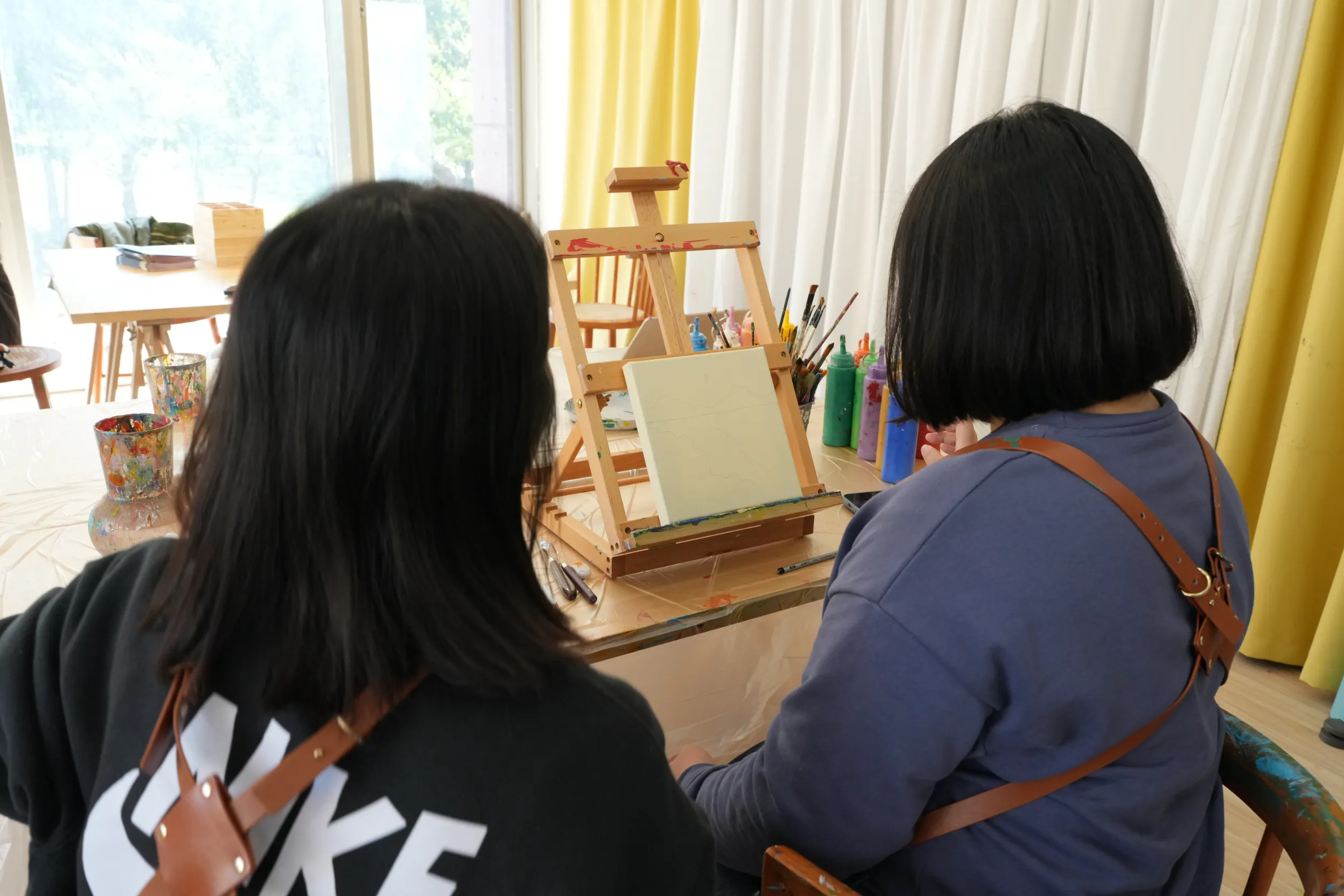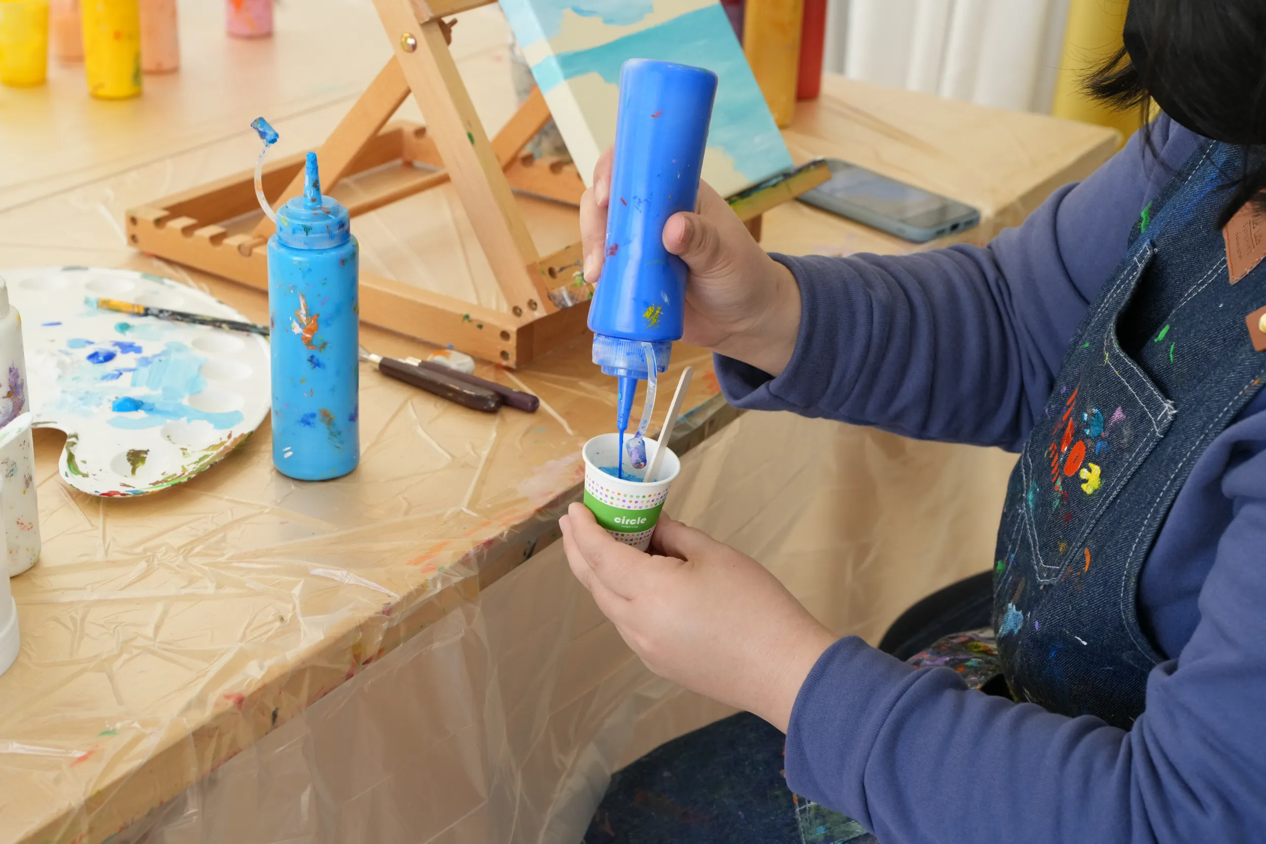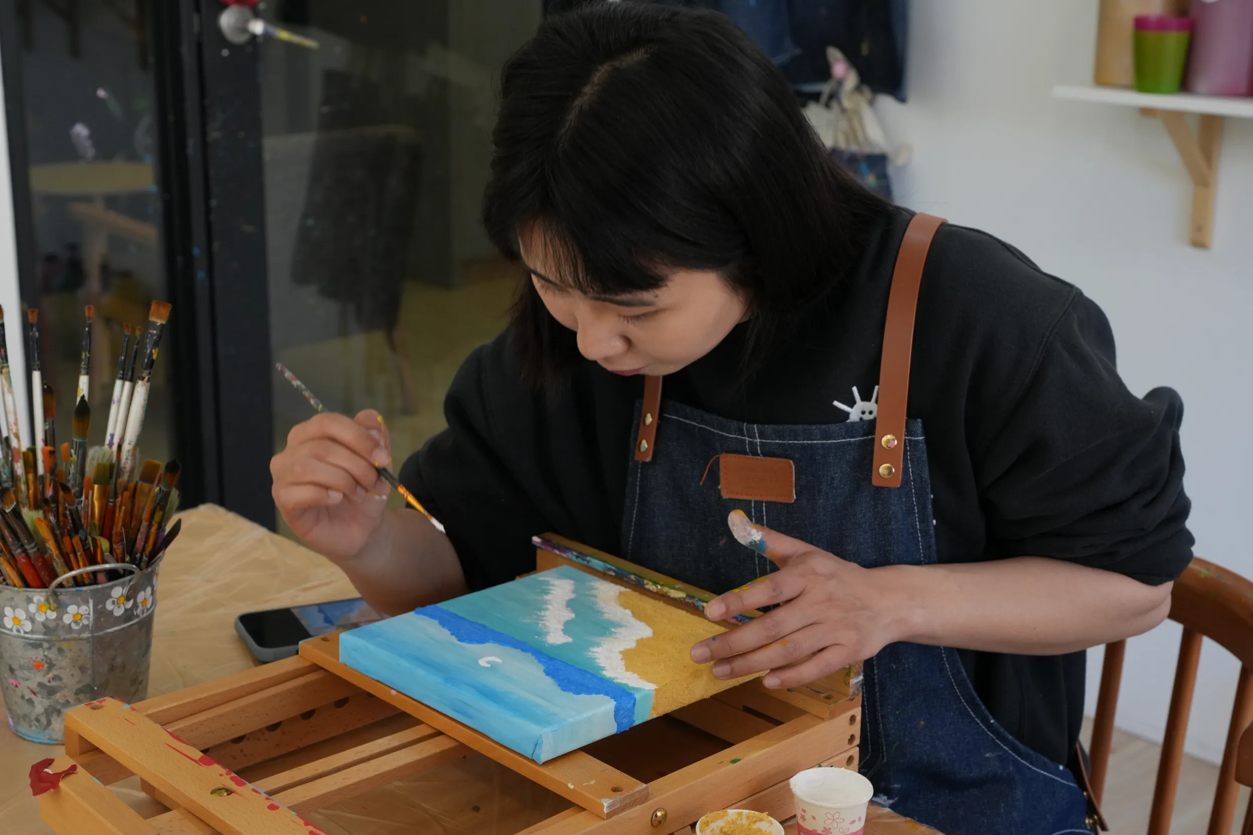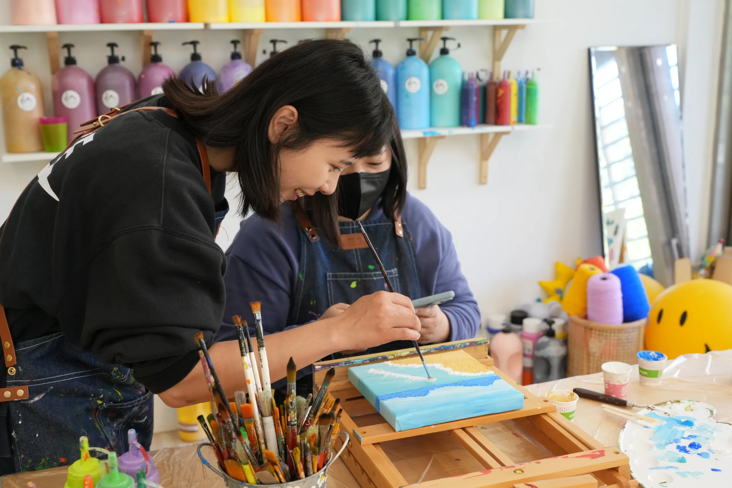 在體驗肌理畫的過程中,如果遇到任何問題,都可以隨時向老師請教,無論是技巧上的疑惑或顏料運用的細節,老師都會耐心解答。在畫室內創作氛圍輕鬆愉快,老師非常親切幽默,不時與你互動聊天,還會貼心地幫忙拍下創作瞬間,增添不少樂趣與紀念價值。