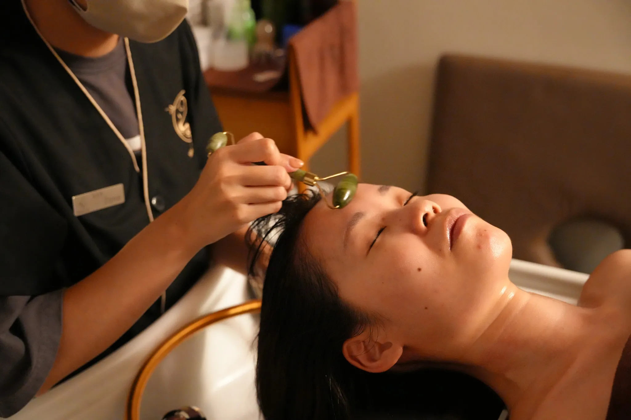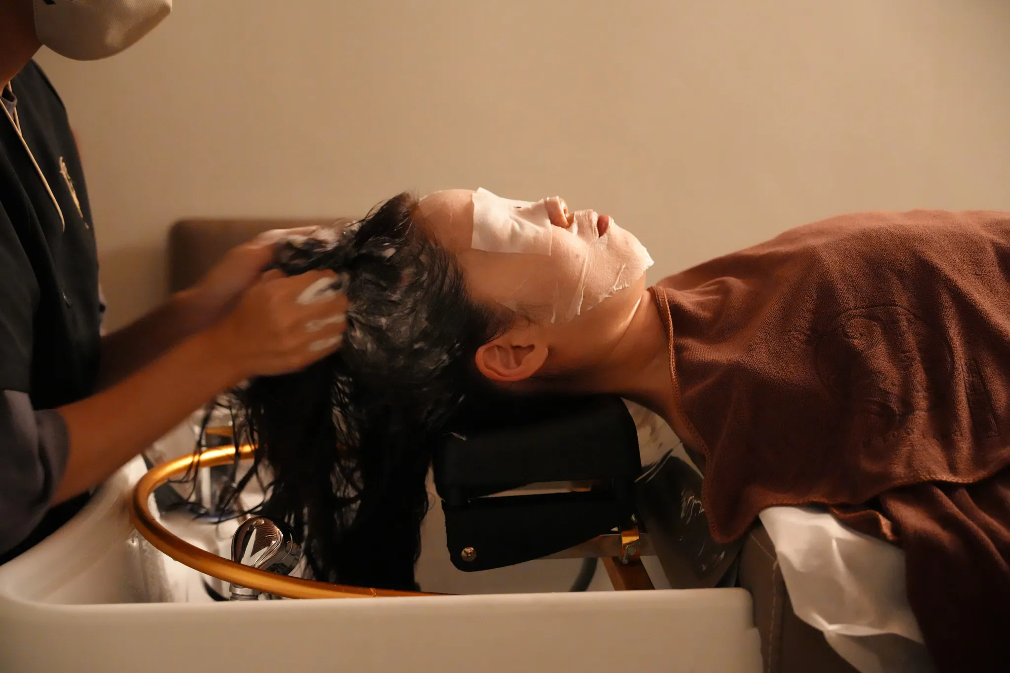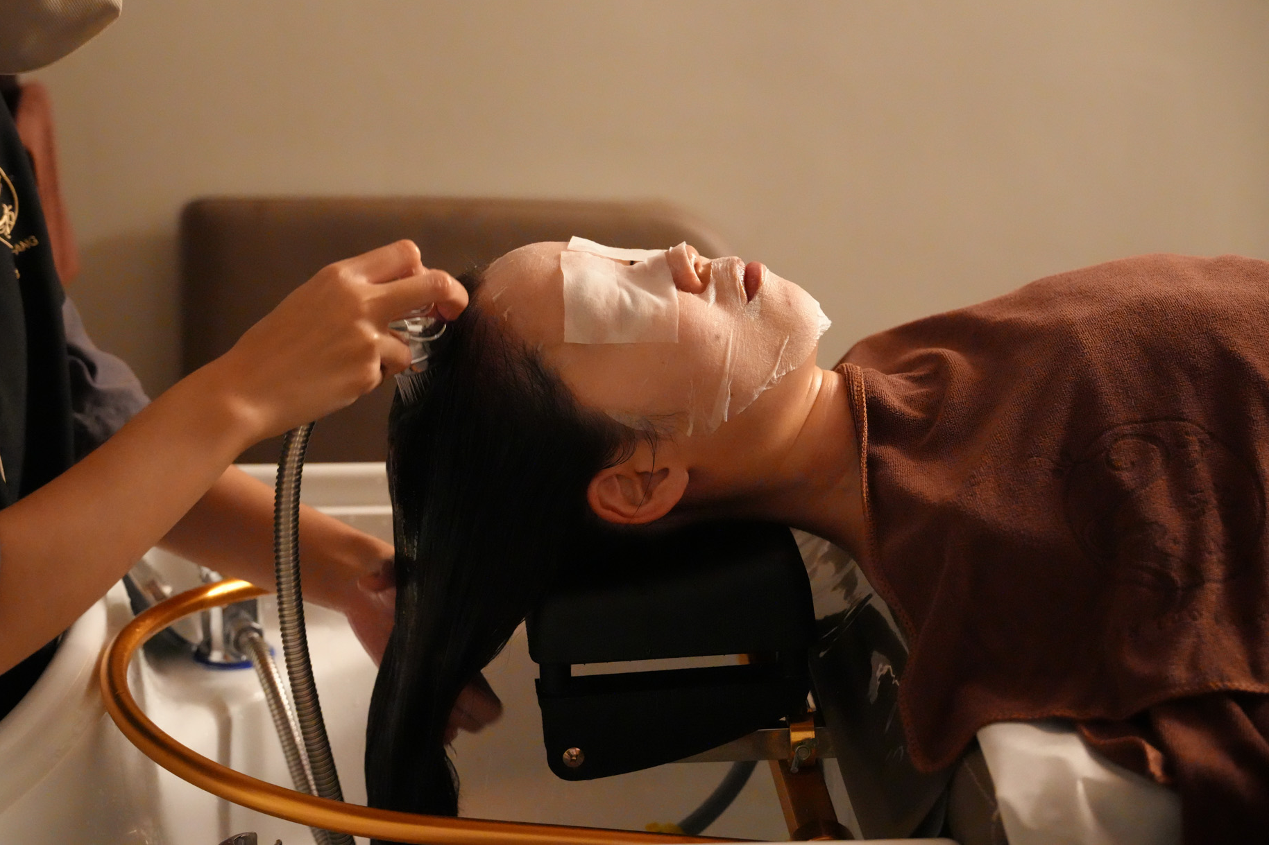 ▼然後進入洗頭的步驟,總共會洗兩次,並且搭配頭皮按摩,也會洗肩膀和脖子,水溫太熱太冷都可以跟服務人員說,十分舒服。