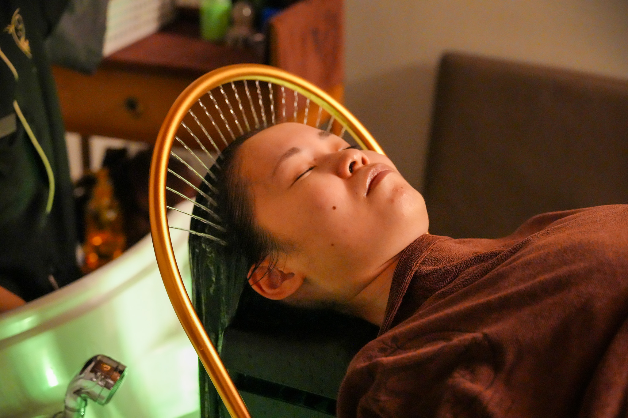 ▼最後就是水循環的部分,一開始會先沖洗脖子,水柱不會很強,不用擔心臉會濕掉,但會讓脖子有點癢癢的,接著會慢慢移到頭皮,結束今天的課程。