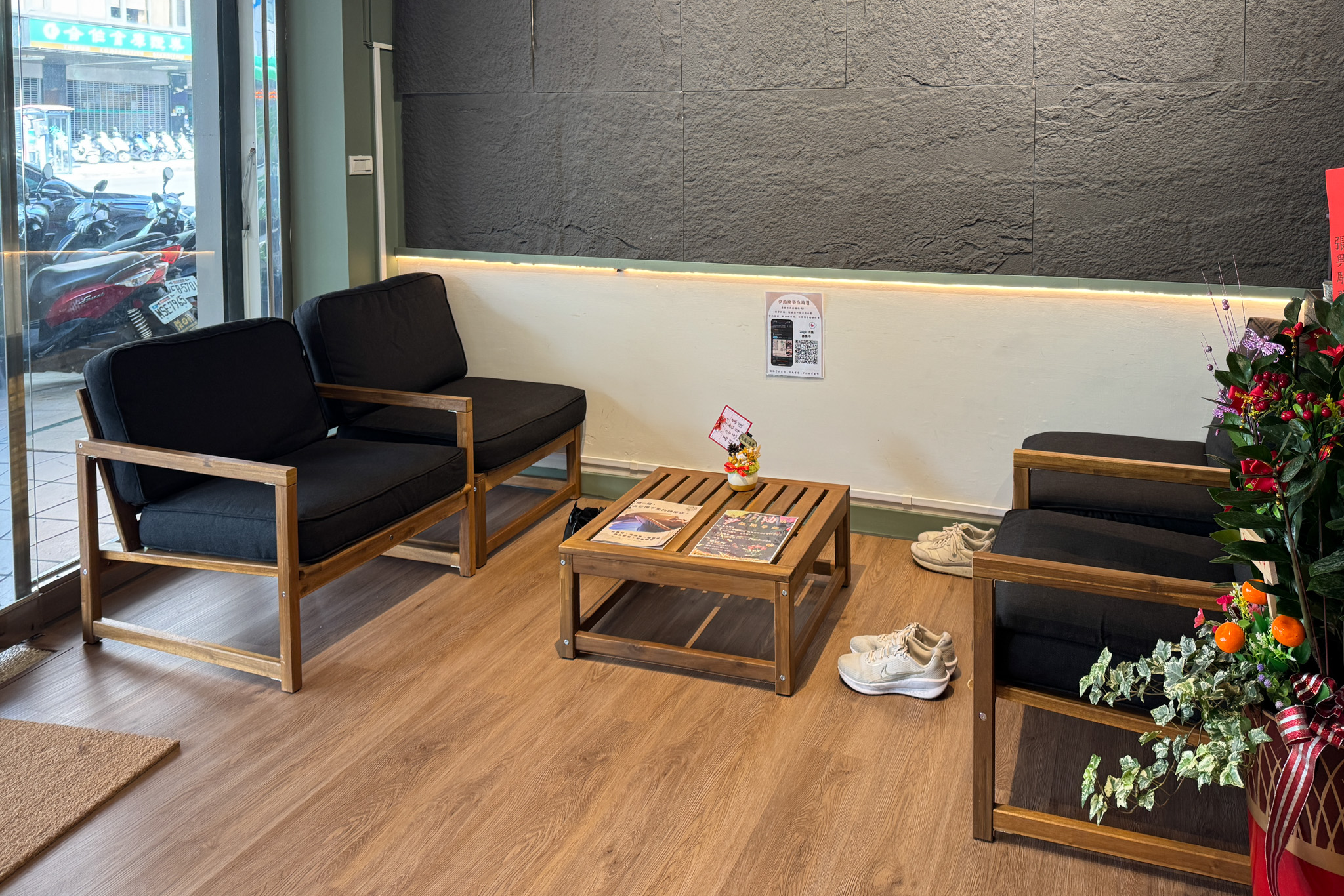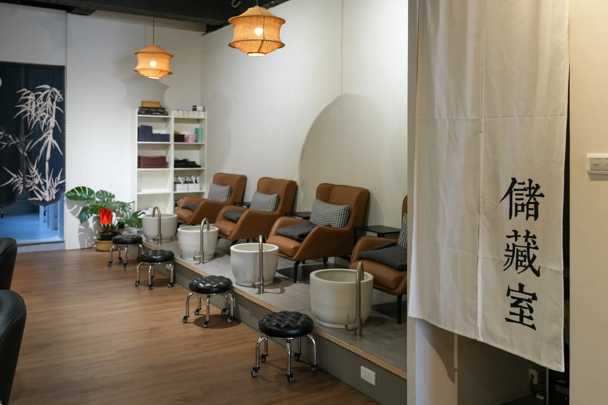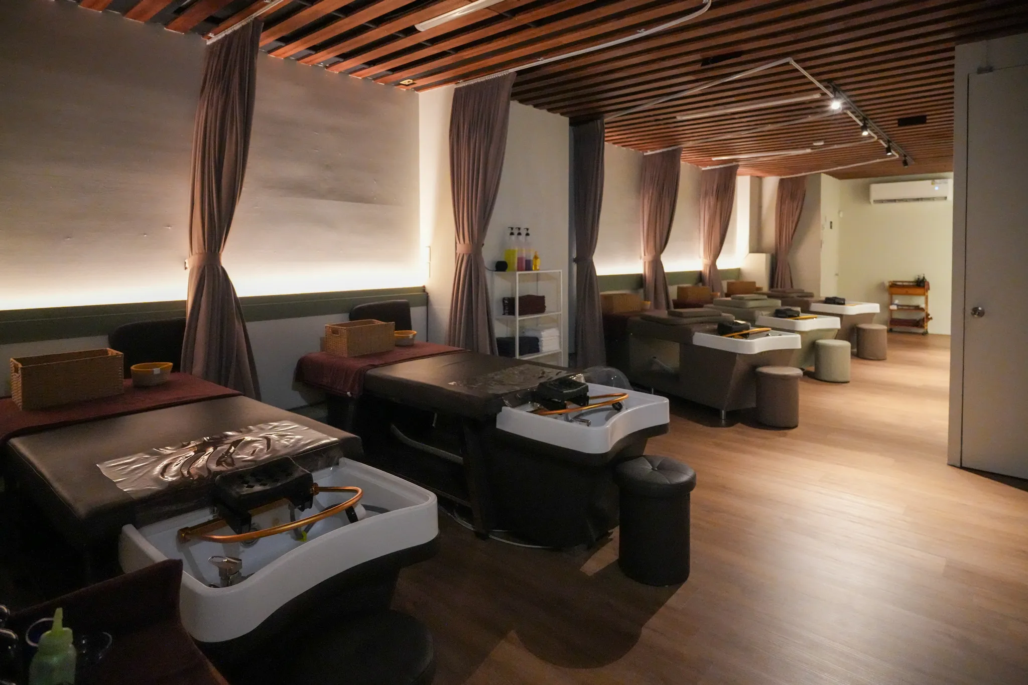 ▼店內總共分為一樓及二樓,一樓為接待區及泡腳、吹頭髮區,整體走日系簡約風格,採用大量木質元素,讓整個空間更加有質感。