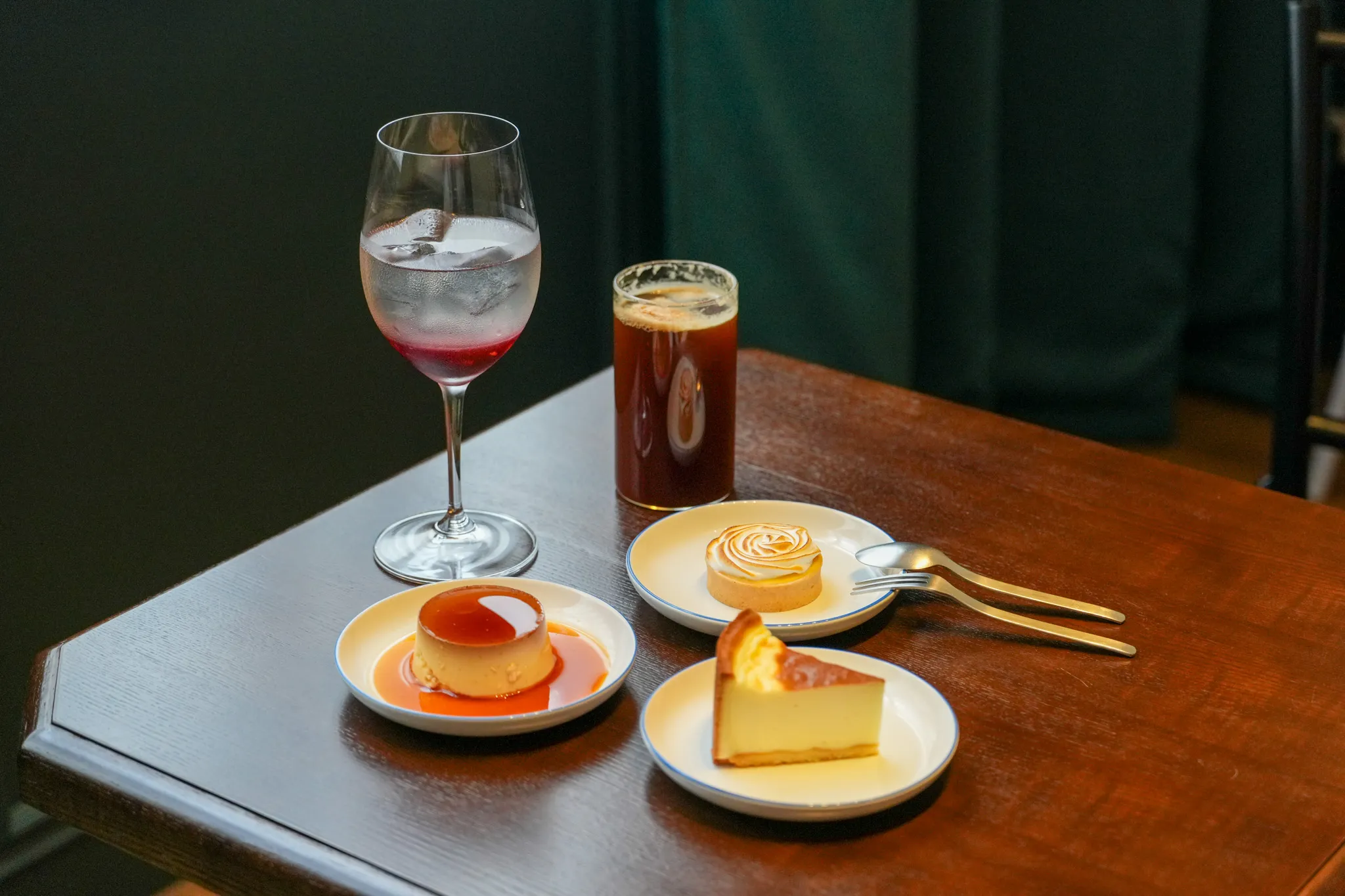 ▼由於我們這次入座的時間較晚,主餐時間已經結束,所以我們就以甜點為主軸,點了一杯葡萄沒事、無酒精特調Danny、蕾夢塔、布蕾布丁和烤乳酪。