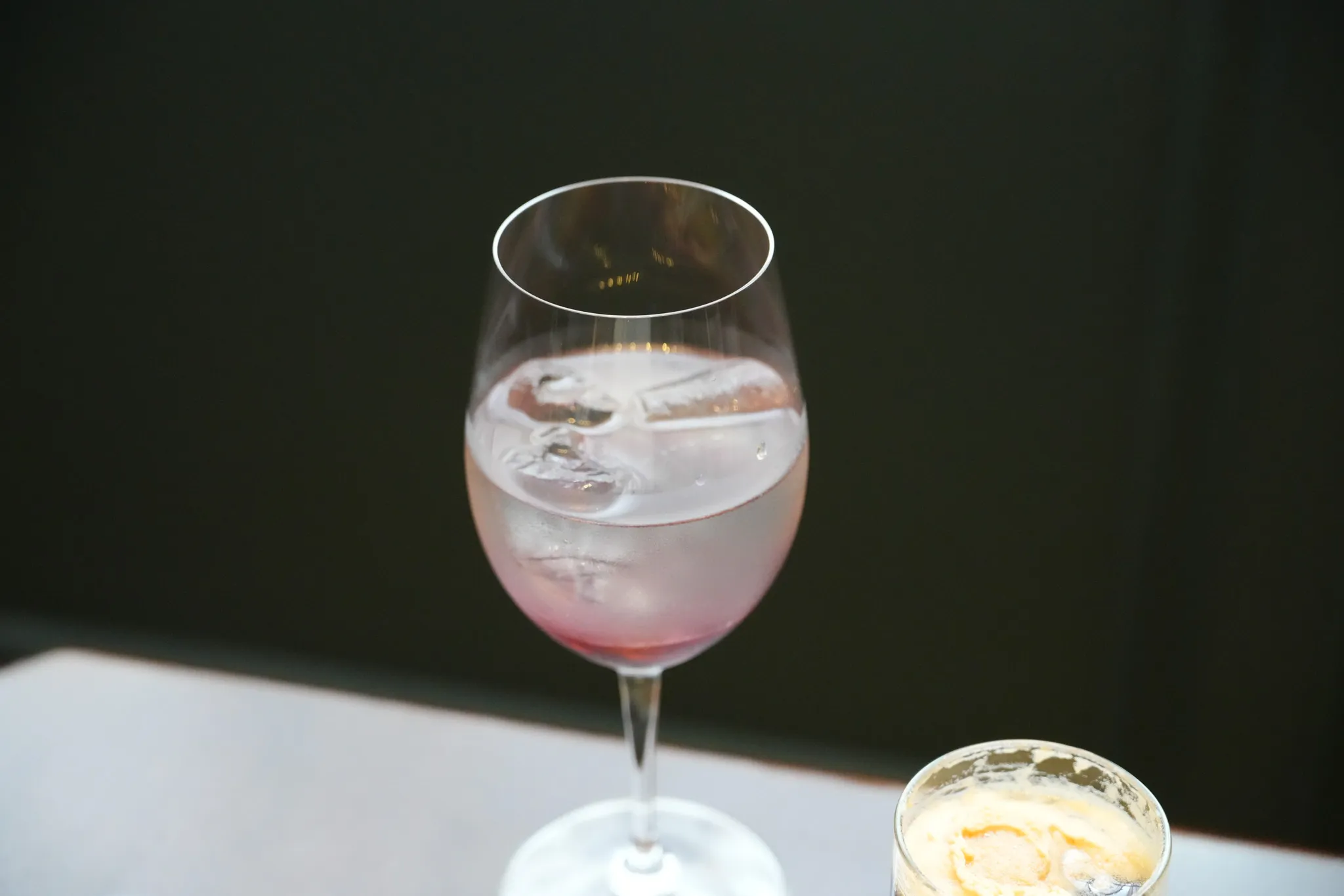 ▼使用柚子、玫瑰、檸檬、桑椹組合而成,使用高腳杯裝盛上桌,剛上桌時會是透明分層的顏色,攪拌過後才是漂亮的酒紅色,讓人有種在喝紅酒的錯覺XD