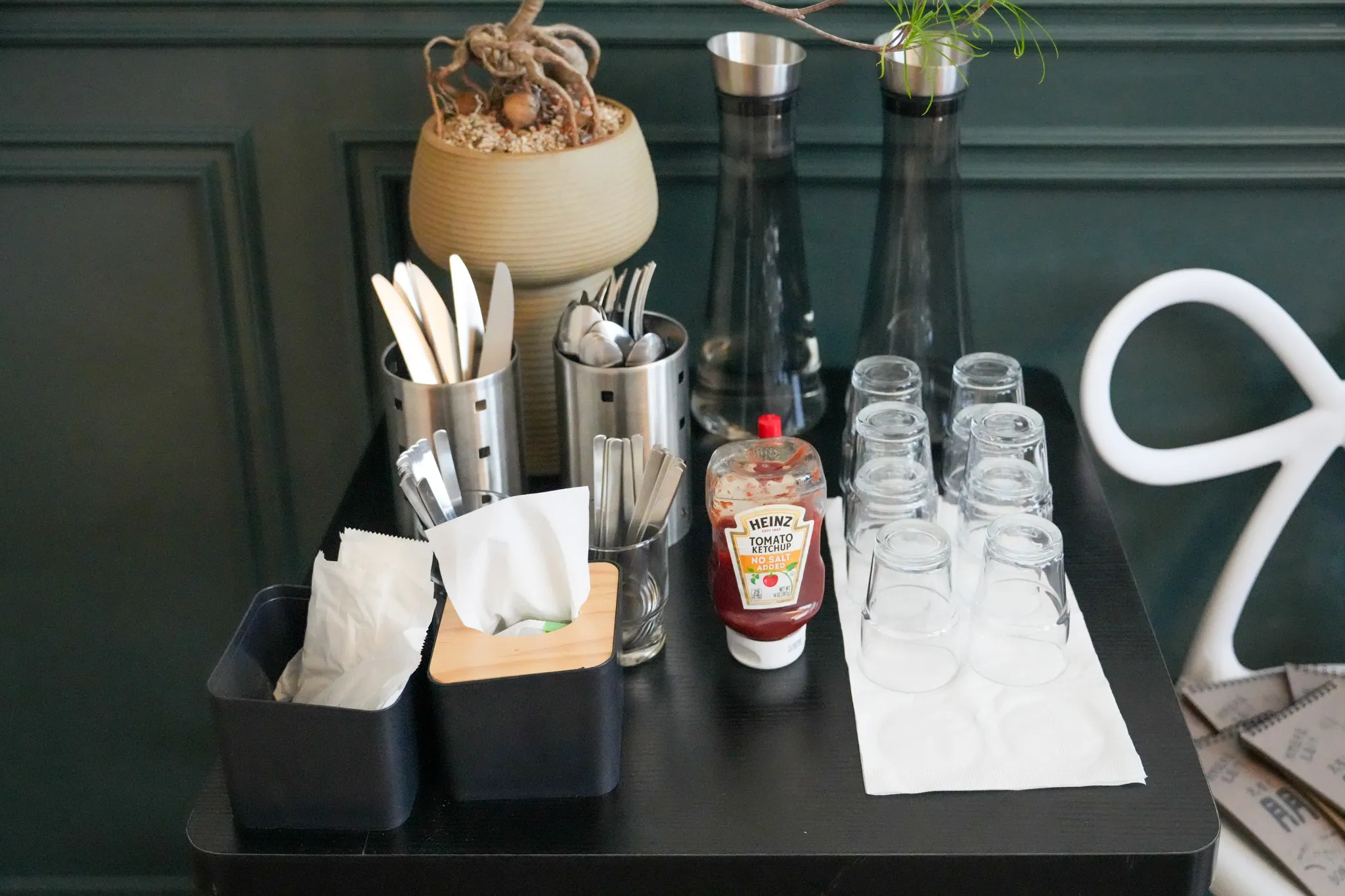 ▼二樓主要是雙人桌座位居多,樓梯旁有餐具、飲用水和醬料可以自取,目測大約能容納5組客人,空間不大,如果是熱門用餐時段可能會需要稍微等待一下。