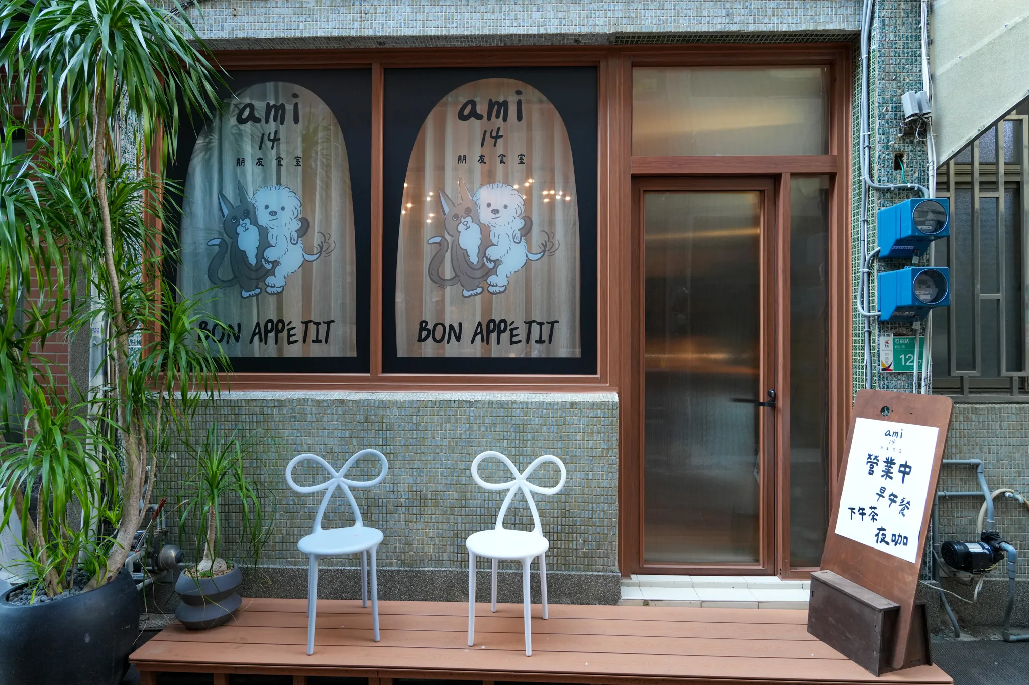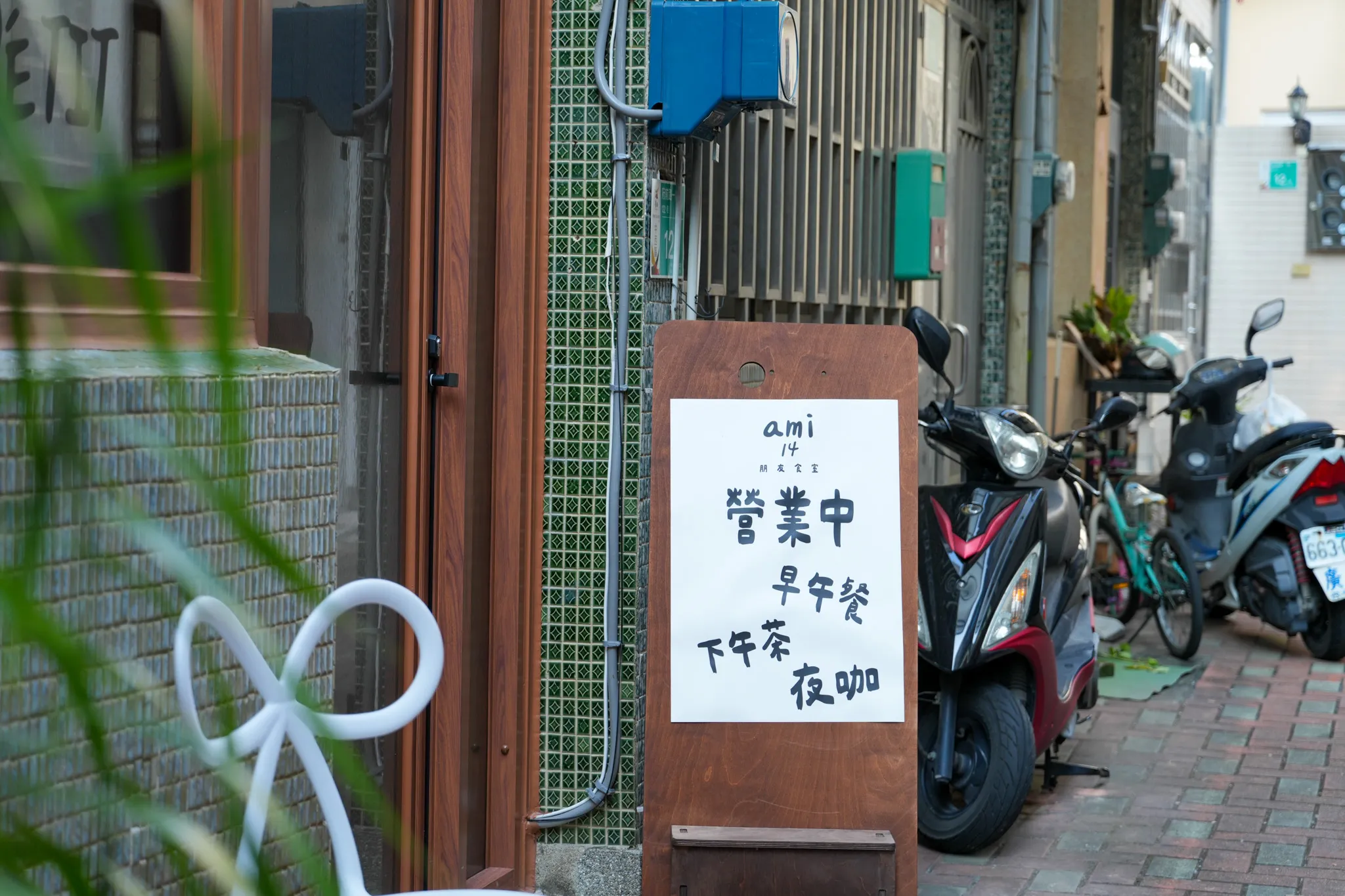 ▼我們這次是從府前路一段側進入巷弄內,往前走的第一個巷口右轉,就會看到「ami14朋友食室」的手繪招牌,十分可愛,當時也是一眼就被吸引。