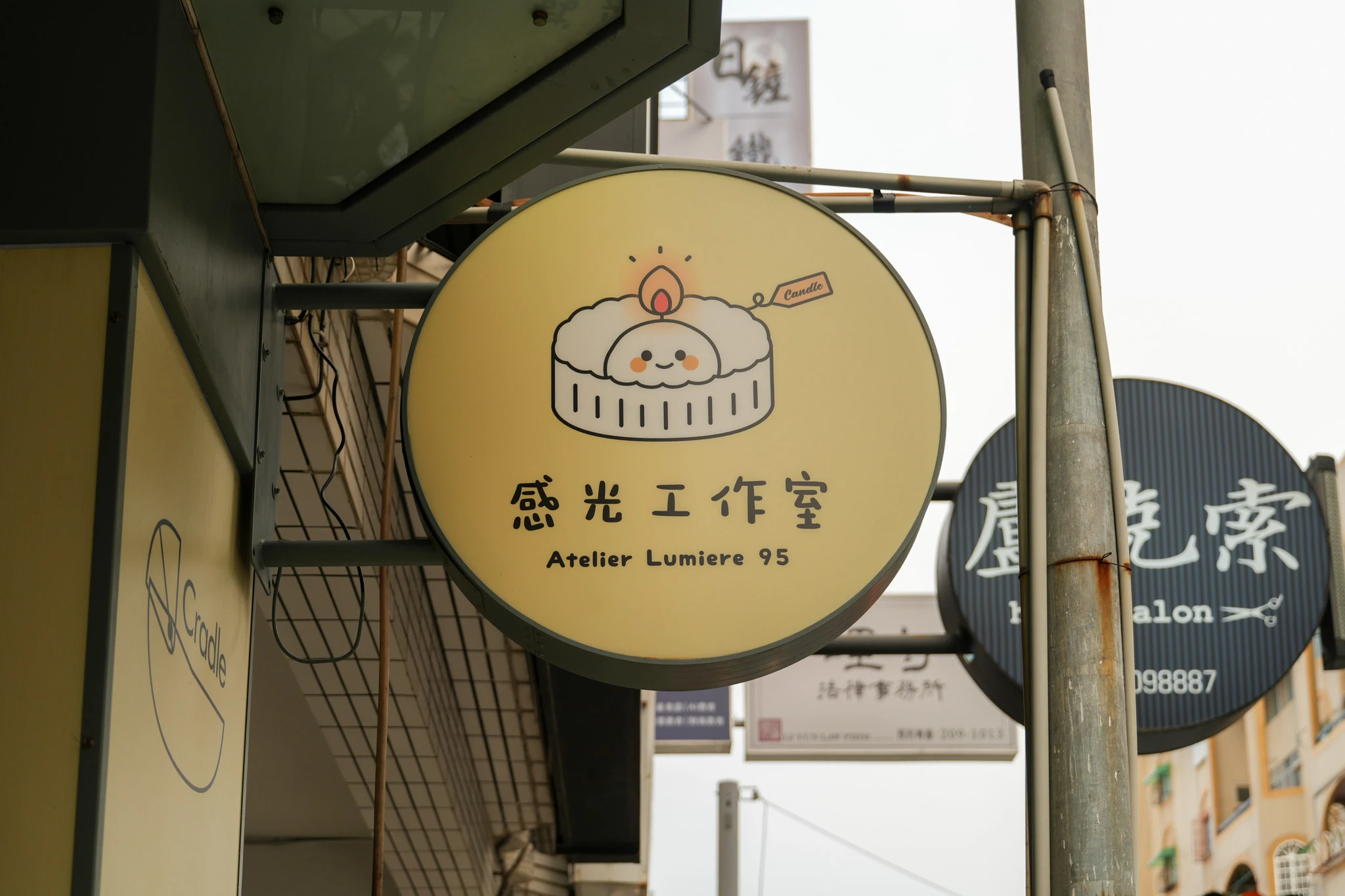 ▼「感光工作室」隱藏在「瑰朵選物」內,外觀以綠色、藍色及黃色為主色調,旁邊可以看到可愛的蠟燭Logo及「感光工作室」的招牌,看到招牌就代表你找對地方啦!