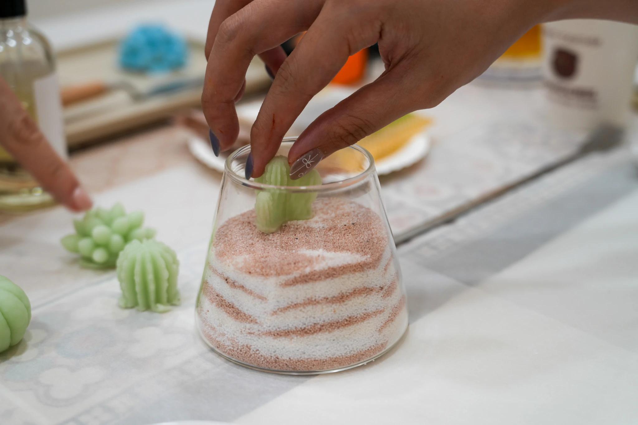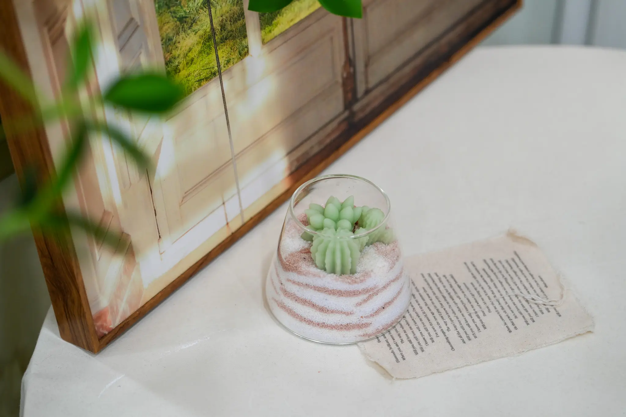 ▼盆栽的部分是用沙蠟做底,它雖然是蠟燭,但不管是看起來還是摸起來都是沙子的感覺,非常特別。