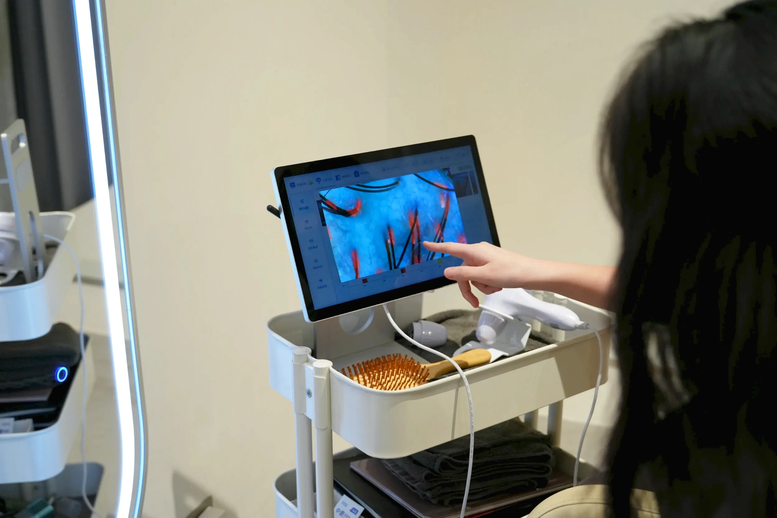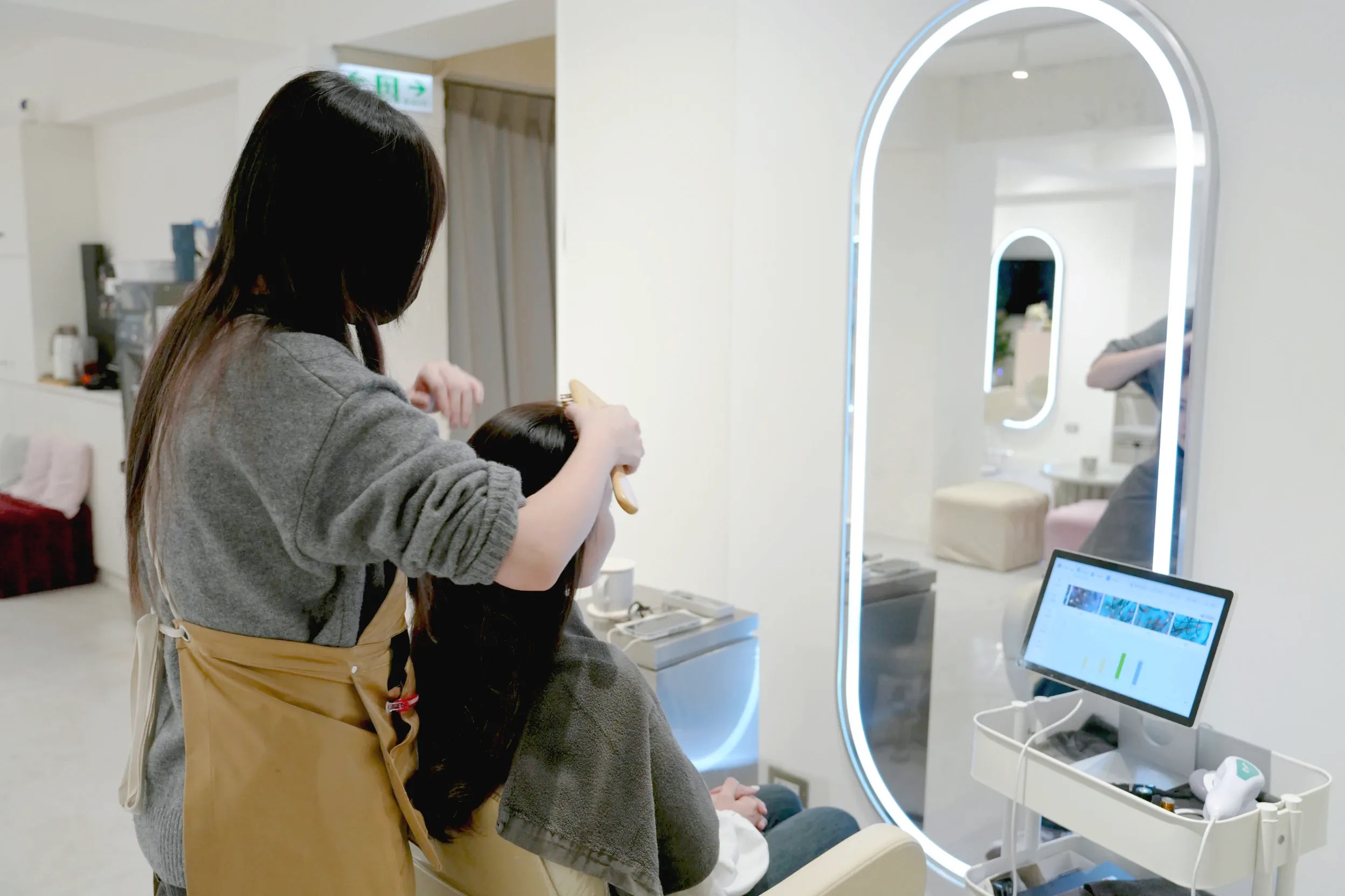 ▼做完頭皮檢測後,開始使用梳子進行頭皮按摩,養護師的手法很溫柔,我的頭髮很長但是並沒有被拉扯的感覺,力道大小也可以根據喜好調整,整個過程非常舒服。