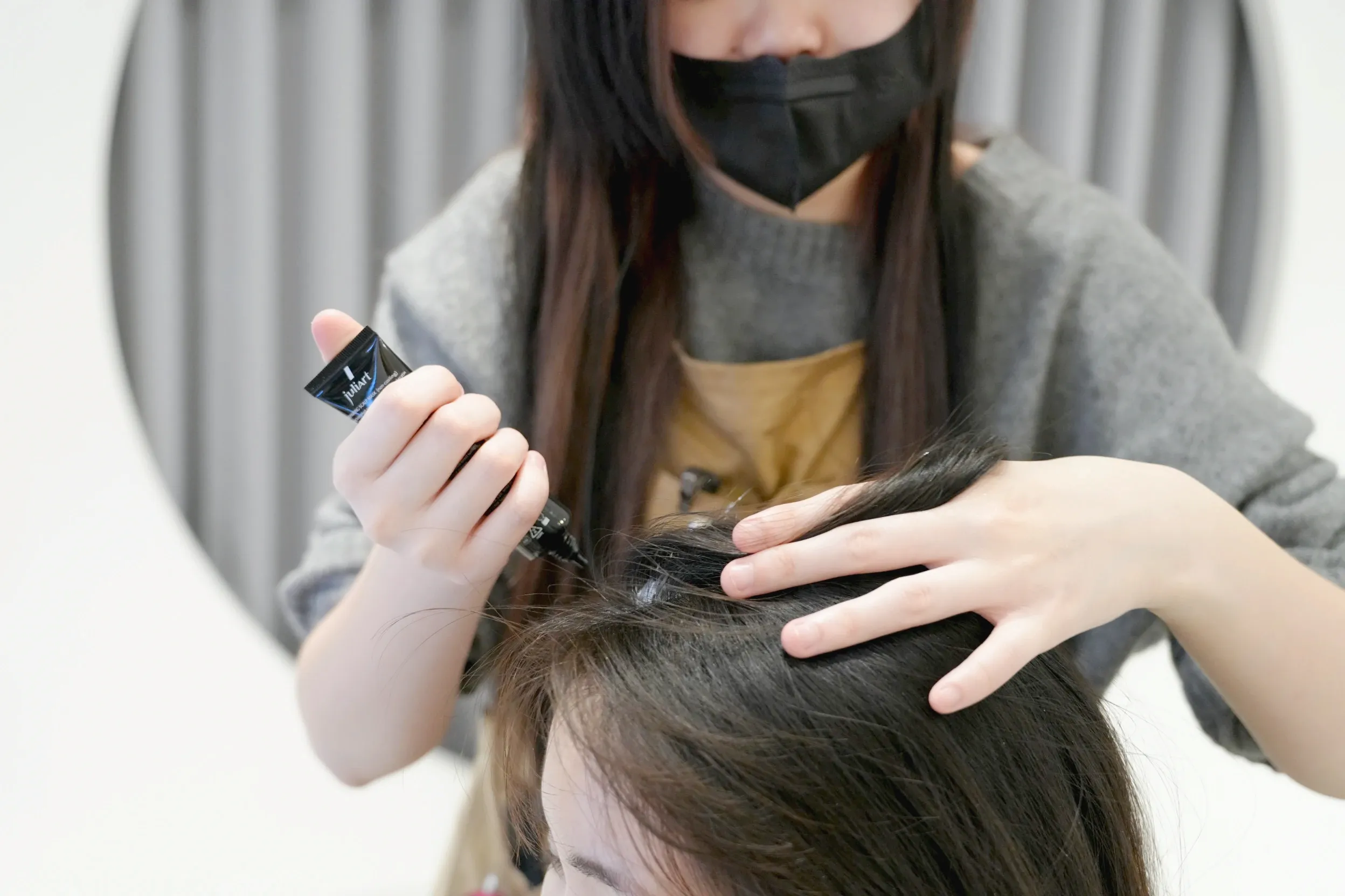 ▼接下來養護師會幫忙敷上頭膜,使用的產品是知名頭皮養護品牌juliArt覺亞,敷起來的感覺涼涼的,具有軟化角質的功能,方便後續頭皮去角質。