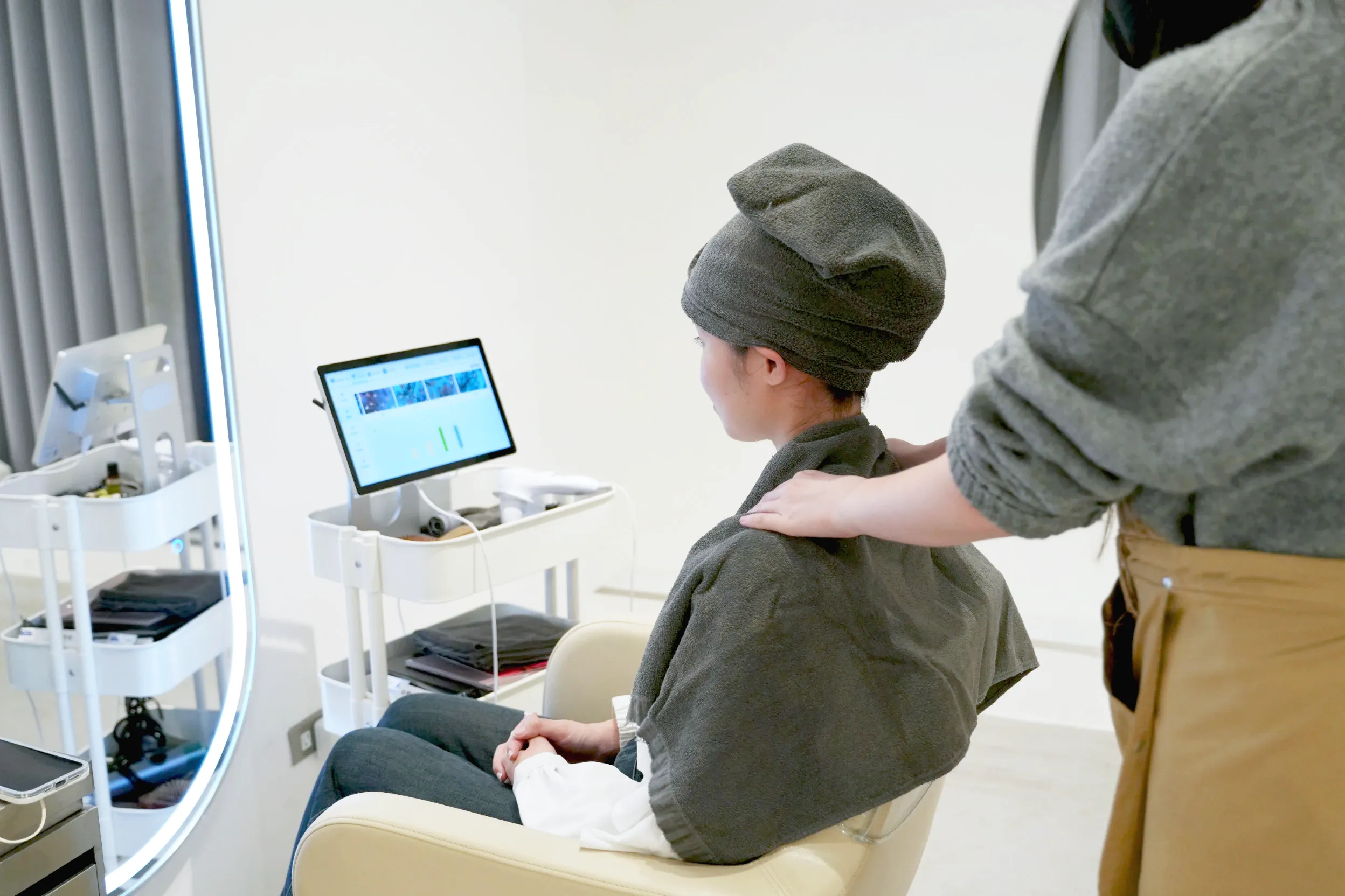 這次來「初生生」體驗沉浸式頭皮瑜珈,覺得跟一般去髮廊的頭皮管理差別最大的地方是環境!整間店都給人一種舒適的感覺,店員講話也都輕聲細語,和別的客人也間隔至少1公尺以上的距離,可以很專注地享受整個頭皮管理課程。我平時沒有太在意頭皮保養的部分,洗髮精也沒特別挑選,可想而知其實頭皮的問題不少XD不過養護師跟我講解的時候非常專業易懂,也不會推銷,對想要體驗頭皮管理的新手非常友善。