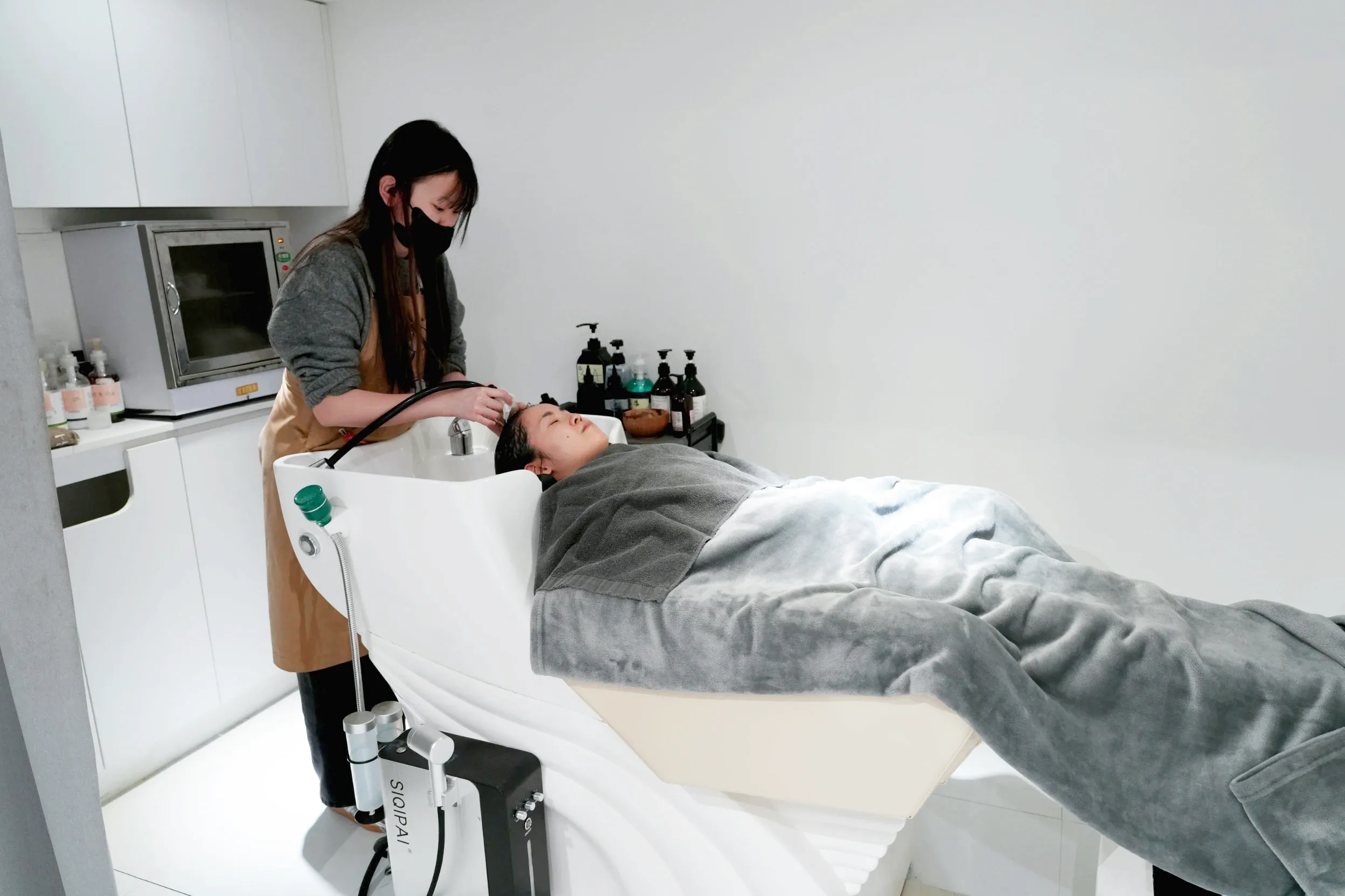 ▼按摩後就正式進到洗頭環節啦!一開始會先將頭膜沖洗掉後,用控油的洗髮精進行清洗,並且幫忙頭皮去角質,在洗頭的時候還非常貼心的提供防寒的毛毯喔!