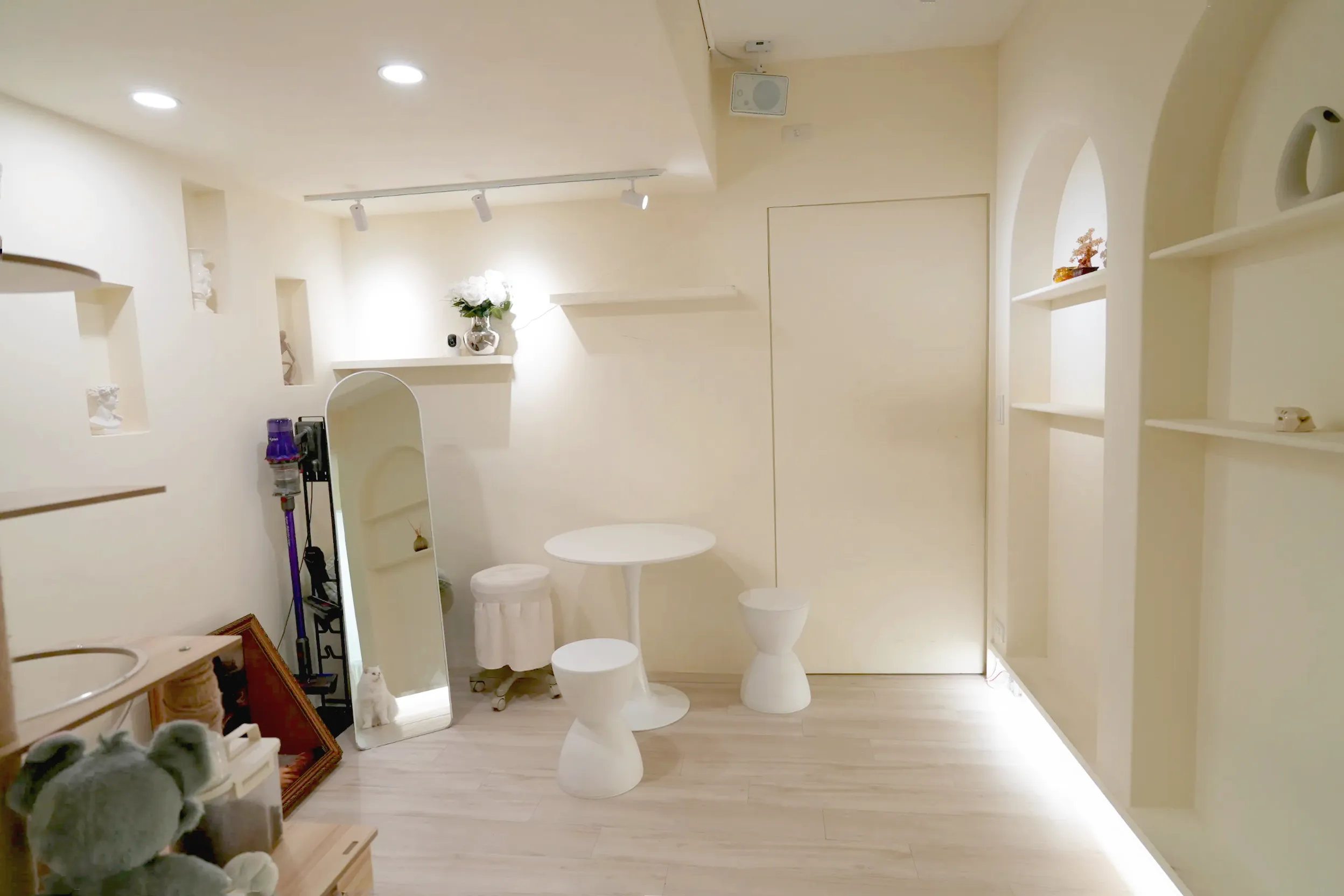 ▼「ENEN WAXING」的裝潢是非常漂亮的韓系奶油風,還有很可愛的兩隻店貓,貓咪不會進到除毛室,不過會在公共空間自由活動,如果會怕動物或是有過敏的人可能要注意一下。