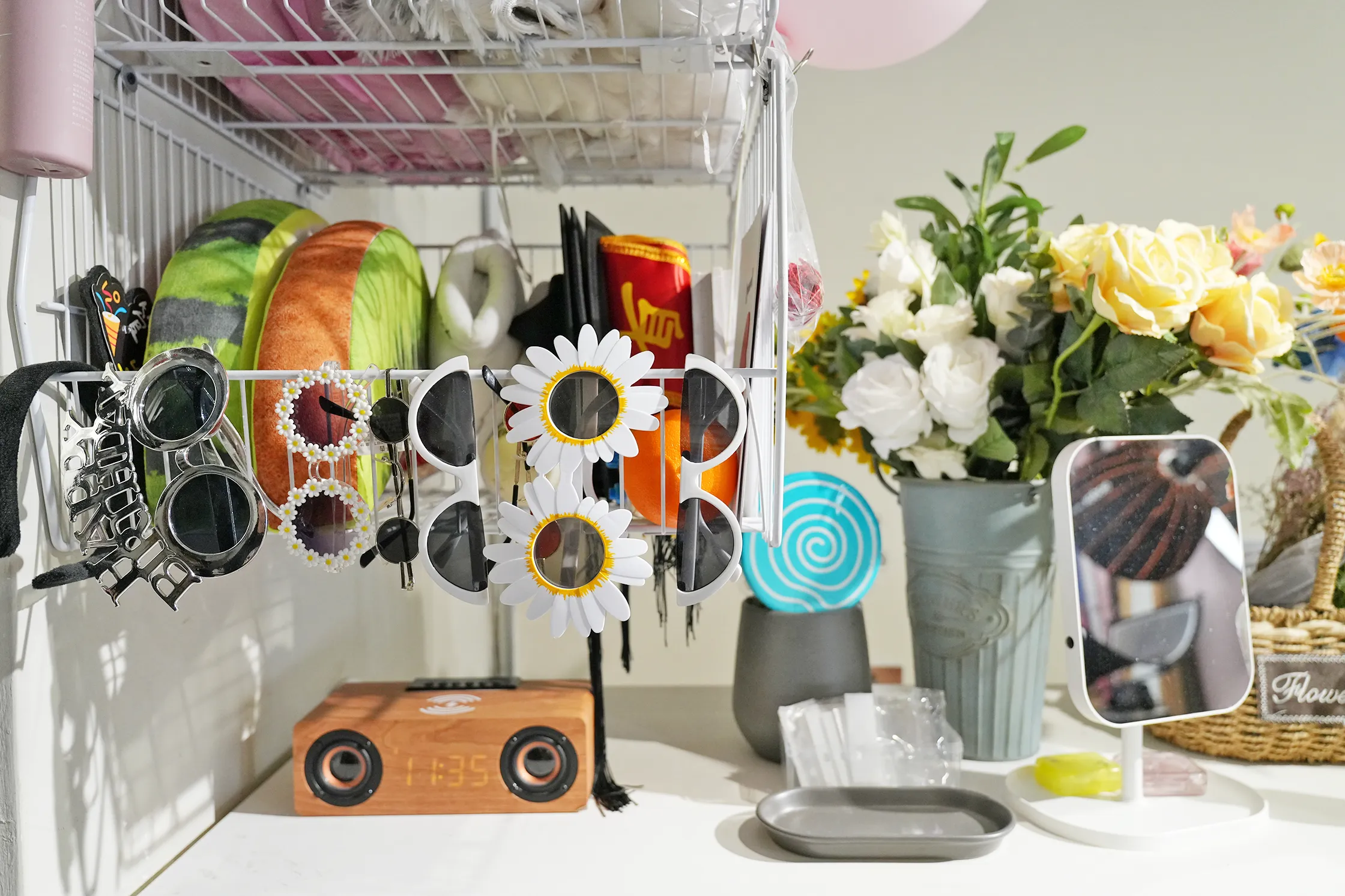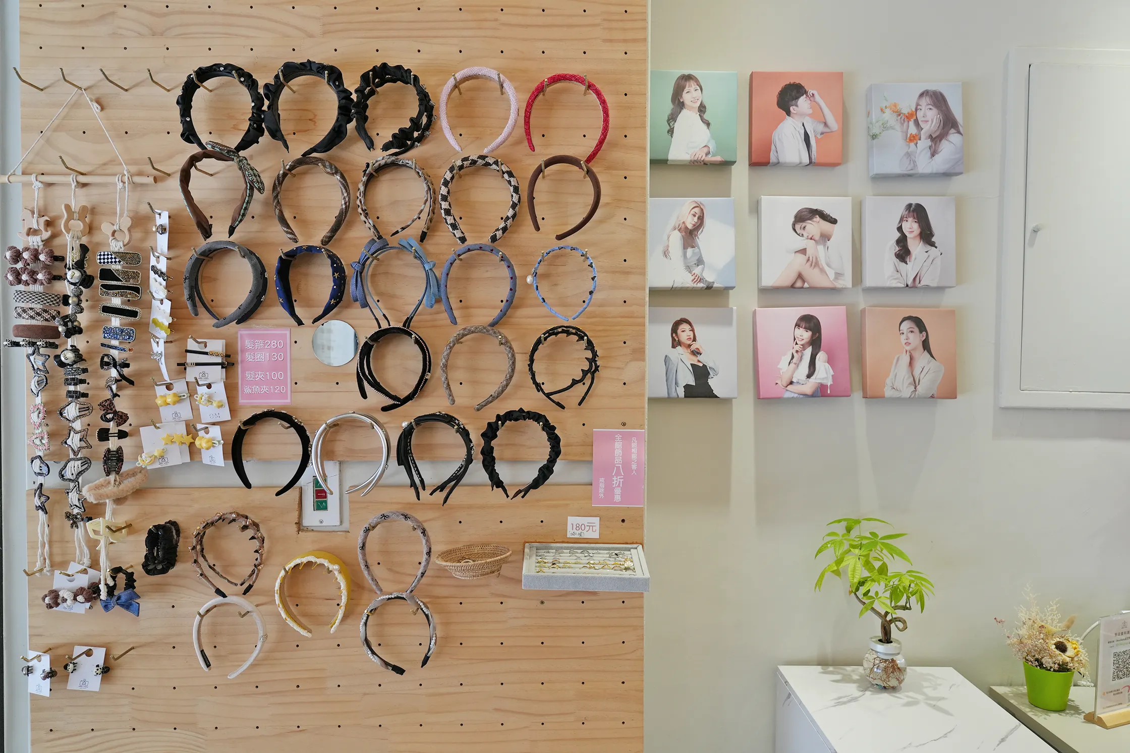 ▼善用牆壁空間,亦有販售一些髮飾與飾品,若拍照上臨時有需要都可以購買。