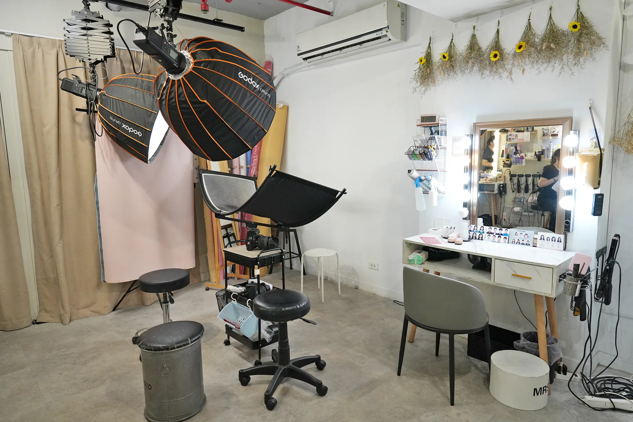 ▼善用有限空間,攝影棚並沒有另外隔開,而是開放式與化妝區共用,這區空間看起來應該是給純拍證件照用的,不知道其他形象照或家庭照會不會在另外看不到的區域拍攝。