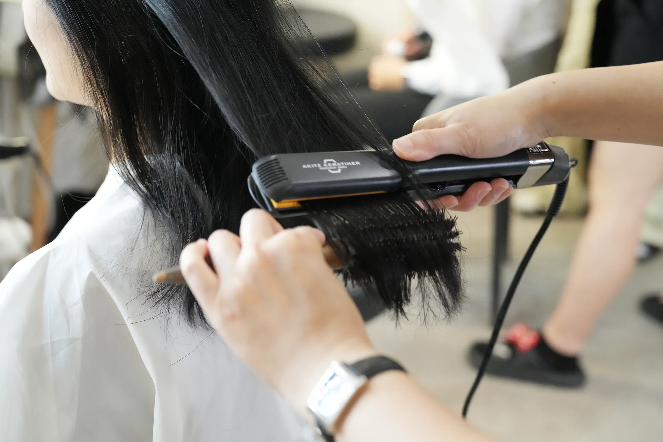 ▼就定位後造型師就會與你討論想要的髮妝,但因為有考慮日後會用在美簽上,所以變化相對來說就沒辦法太大,而且眉毛、耳朵都必須露出來才行。