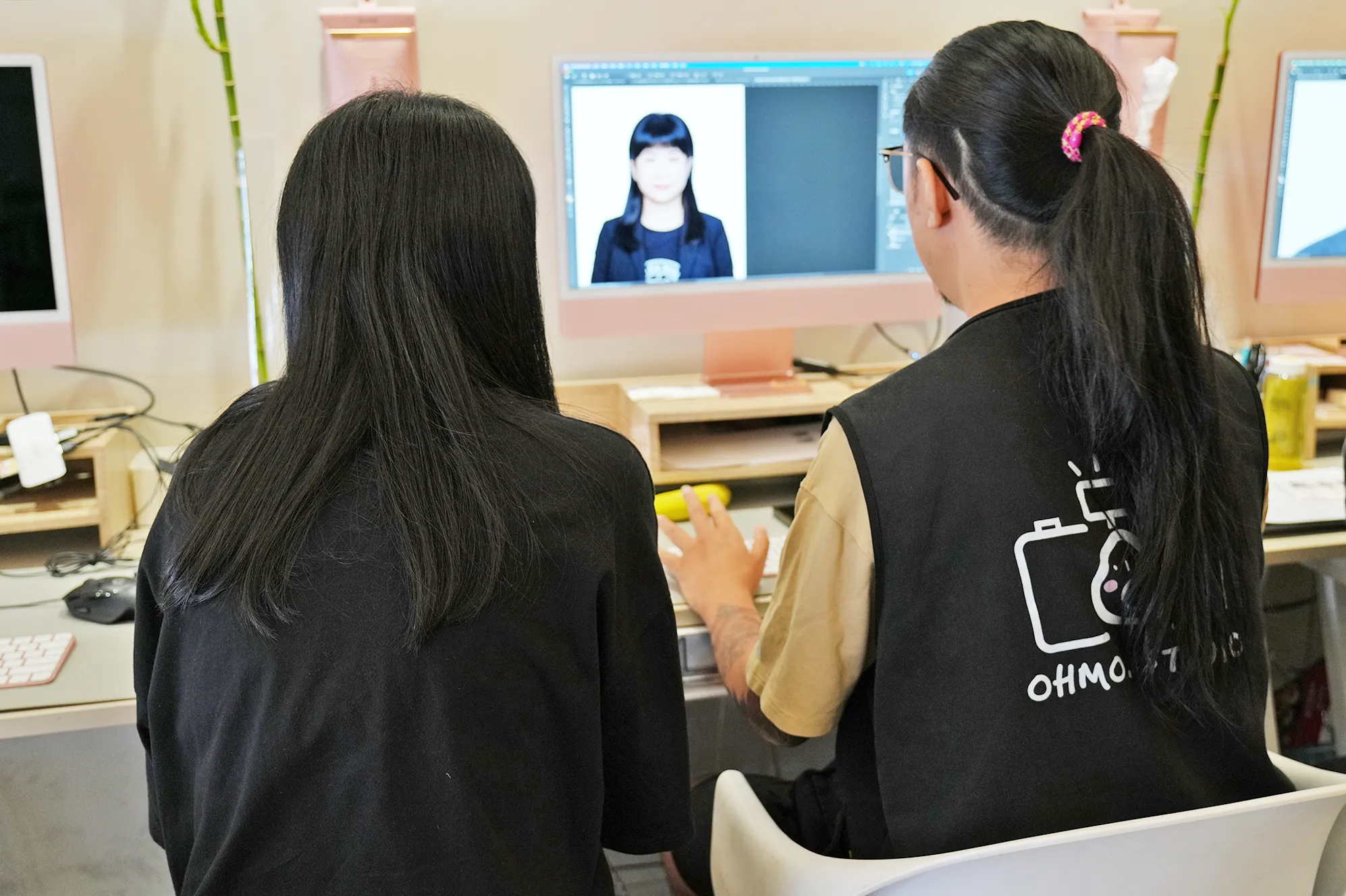 這過程也有與造型師聊天,她說平日也有很多上班族利用中午午休的空檔來拍證件照,但整體來說還是下班後的時間客人會比較多,含髮妝的證件照方案是最多人選的。