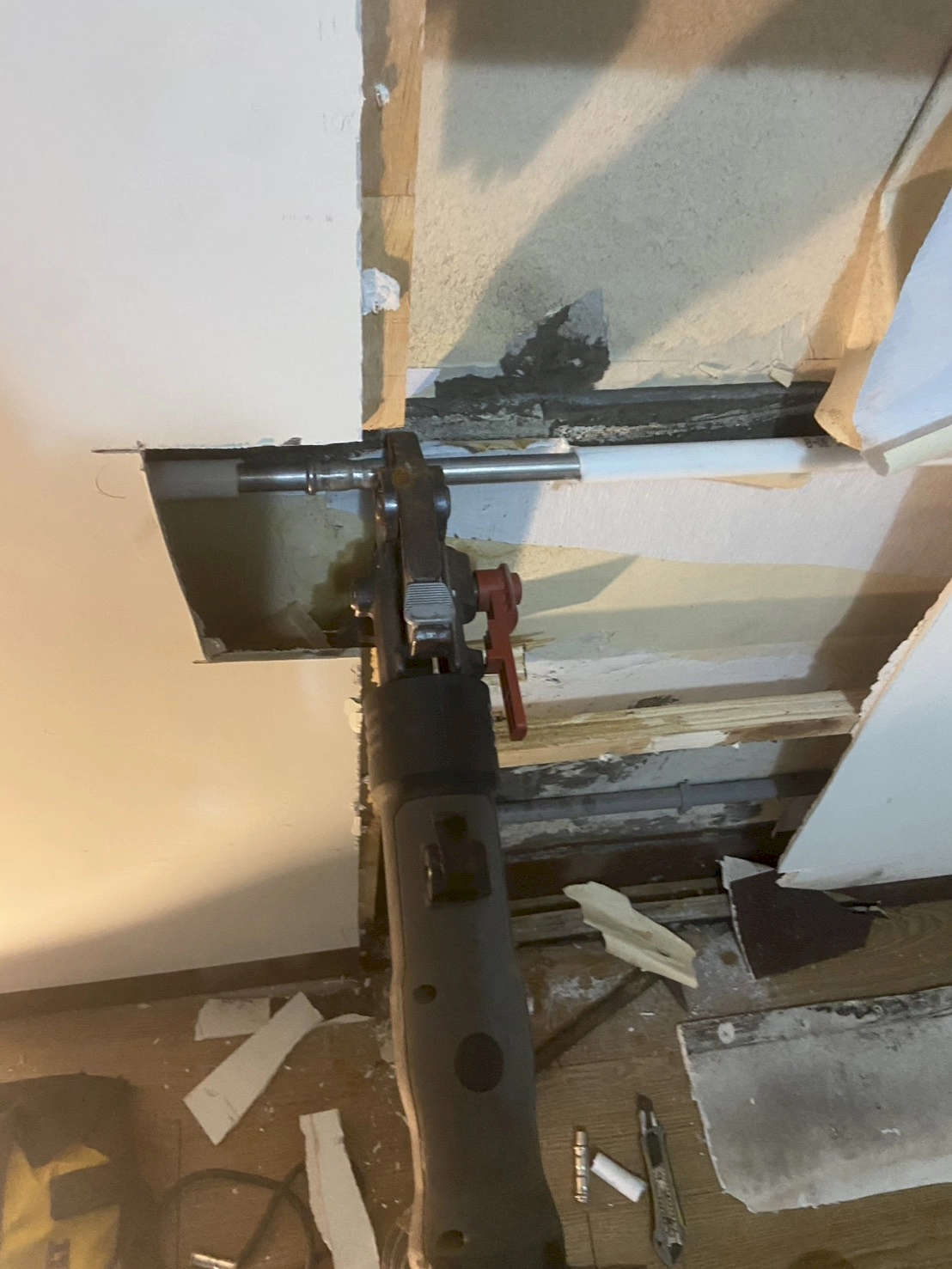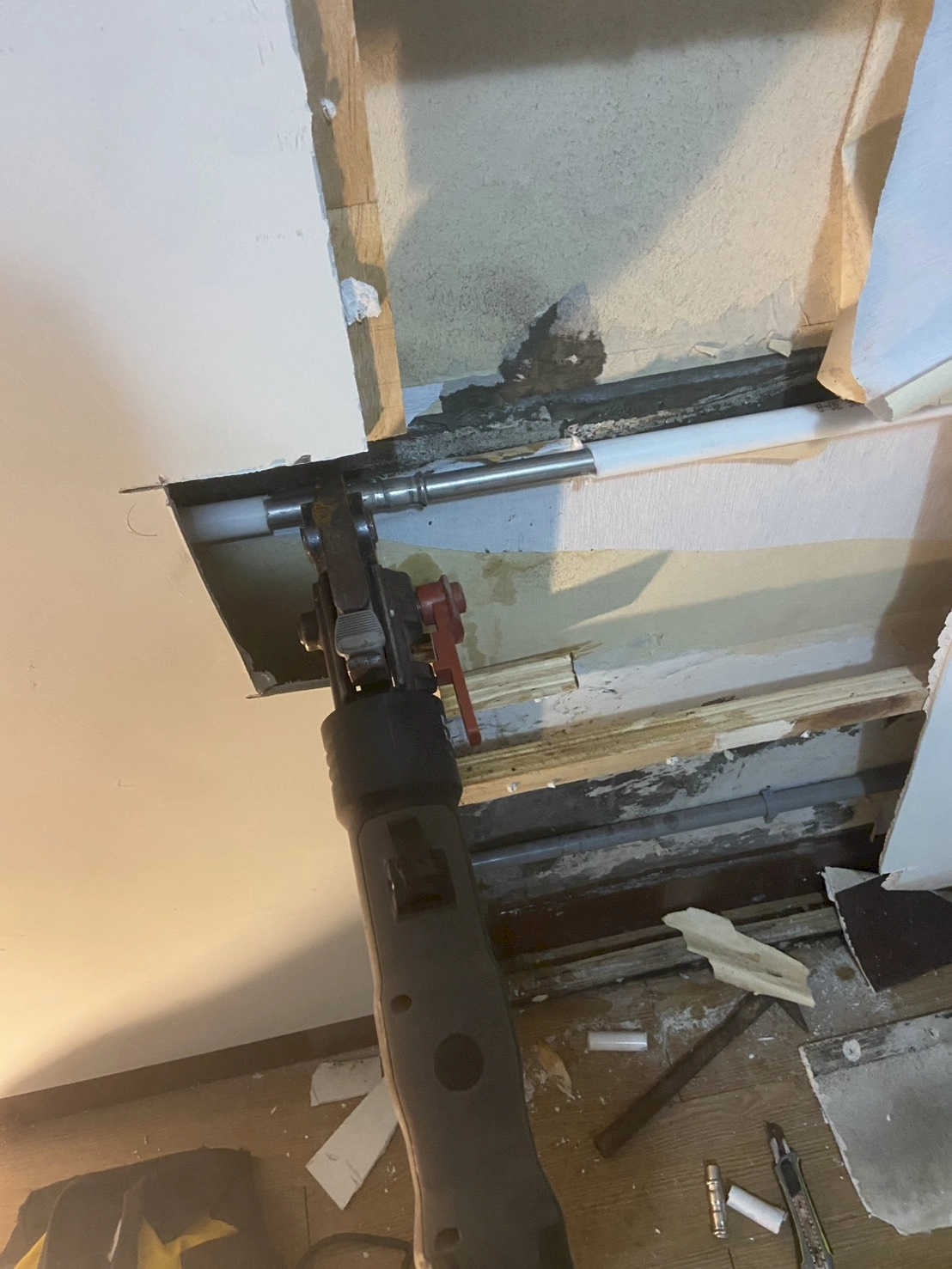 ▼找到漏水點後,迅霆的師傅隨即進行管路修復。看著師傅操作專業的壓管鉗,動作俐落且細心,將損壞的管材汰換掉,看得出師傅經驗豐富、修繕技術精湛,讓人感到非常安心。
