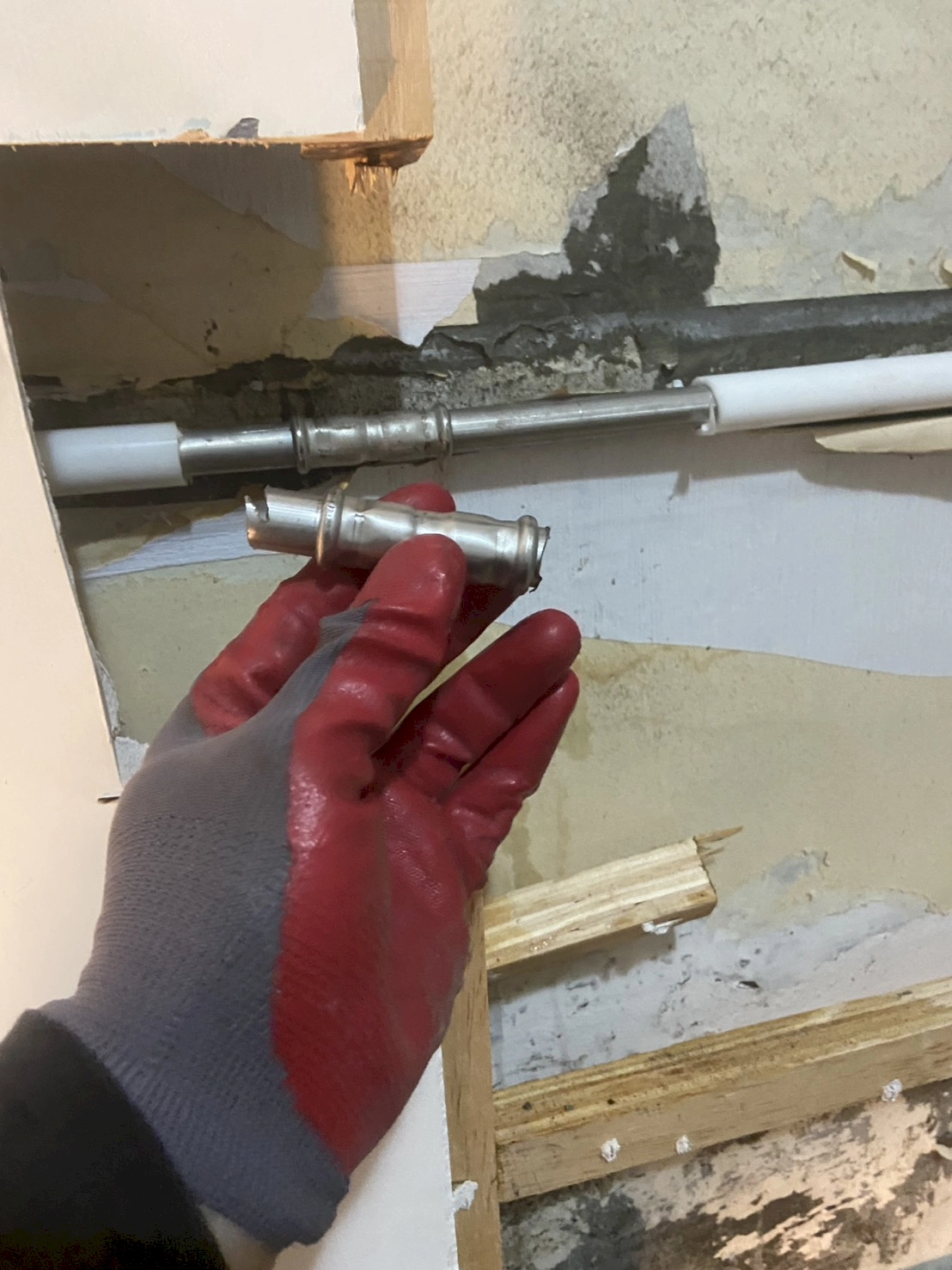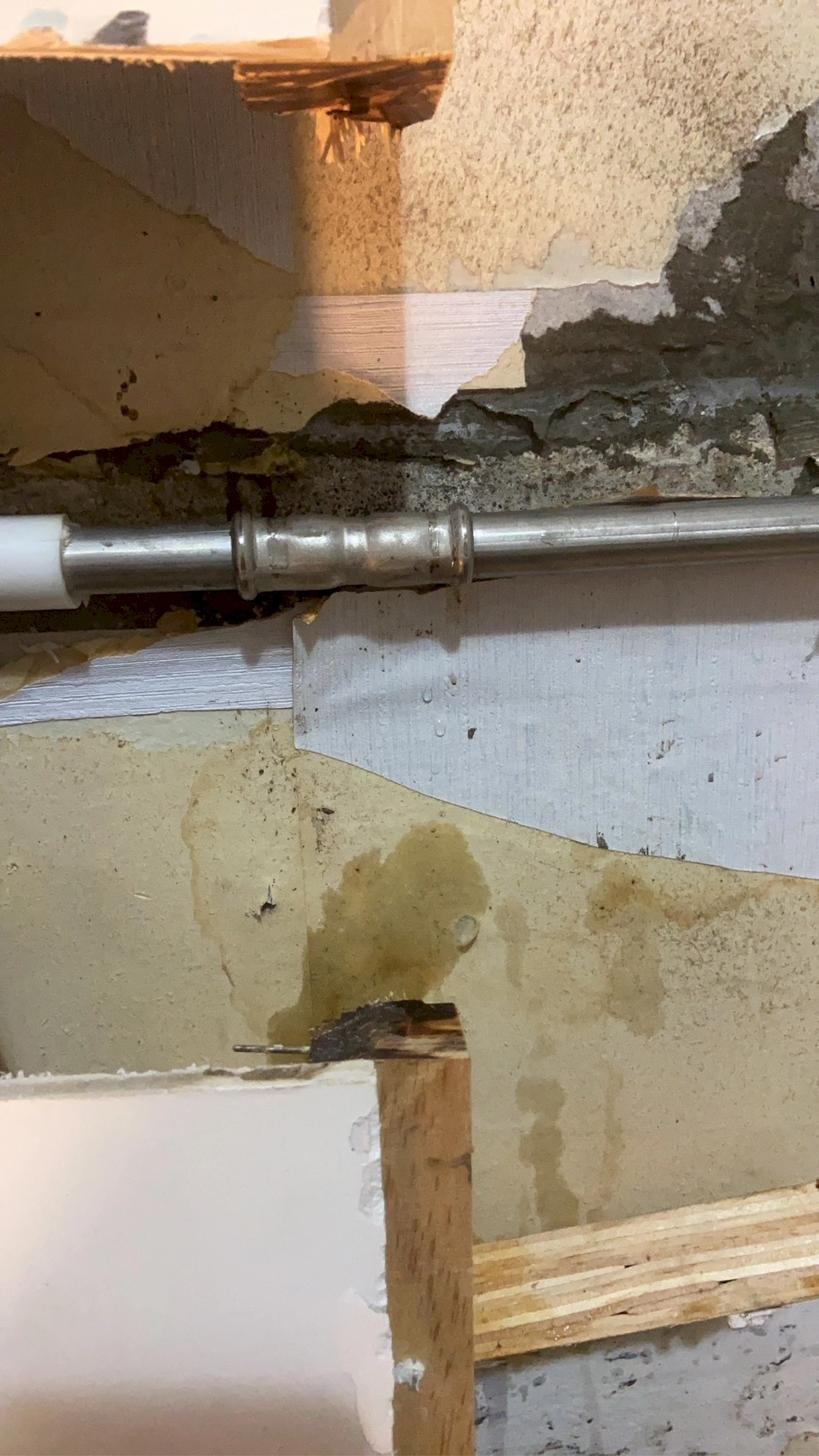 ▼抓漏最怕大拆大改,甚至拆錯地方後再四處修修補補,這樣真的會造成很大的困擾,還好迅霆很專業,只針對漏水點的牆面進行小範圍拆除,讓後續修復工程更快速,管路重新安裝完成後,重新開水測試已完全沒有漏水狀況,真的讓人非常感動。