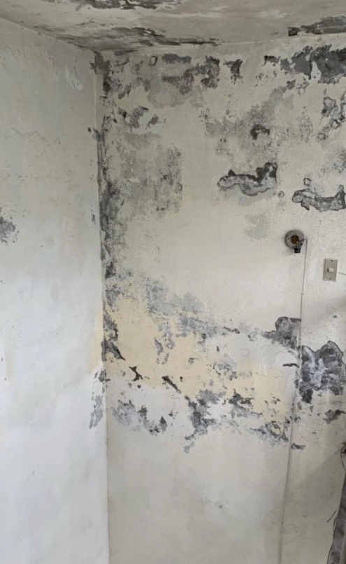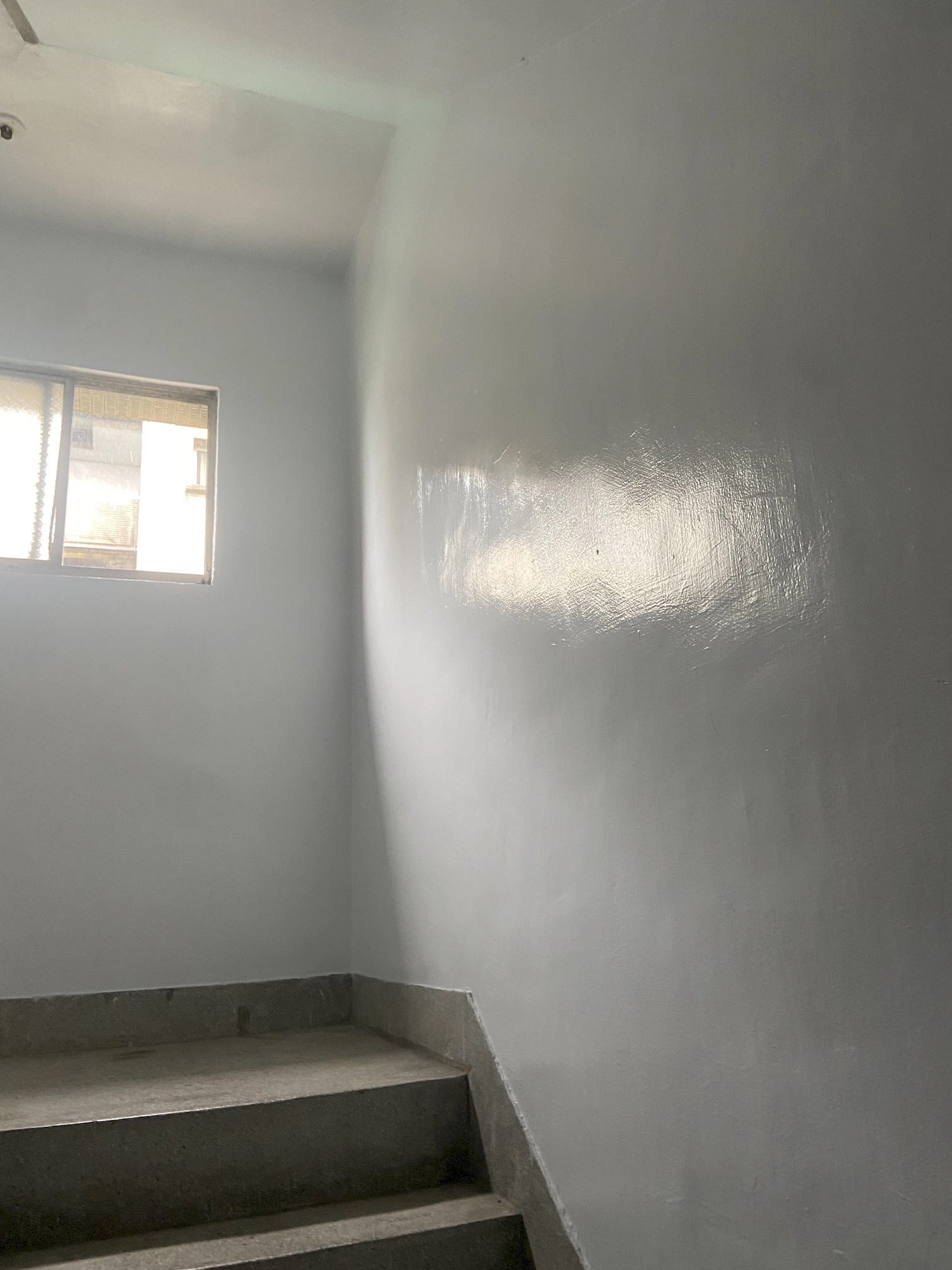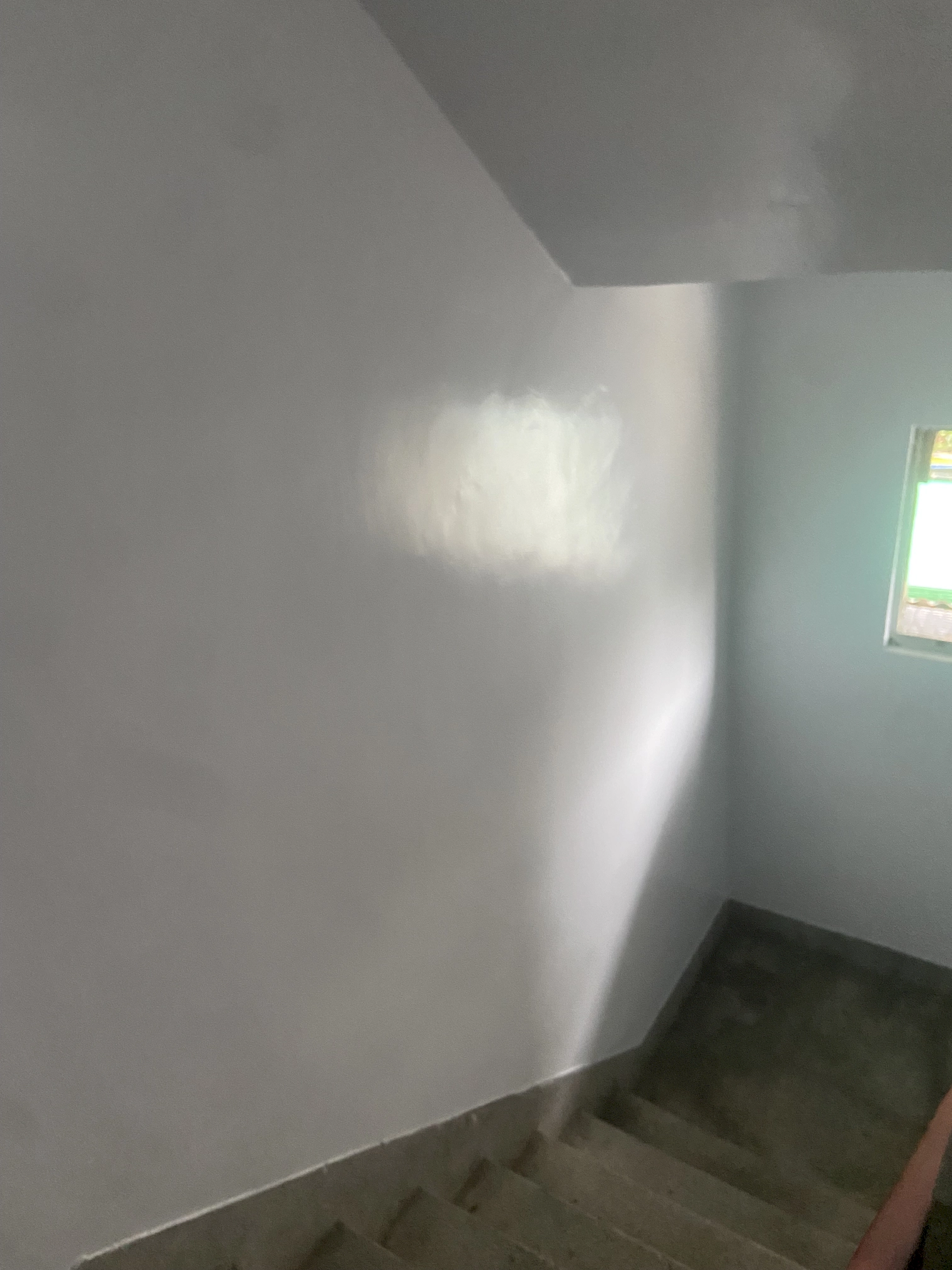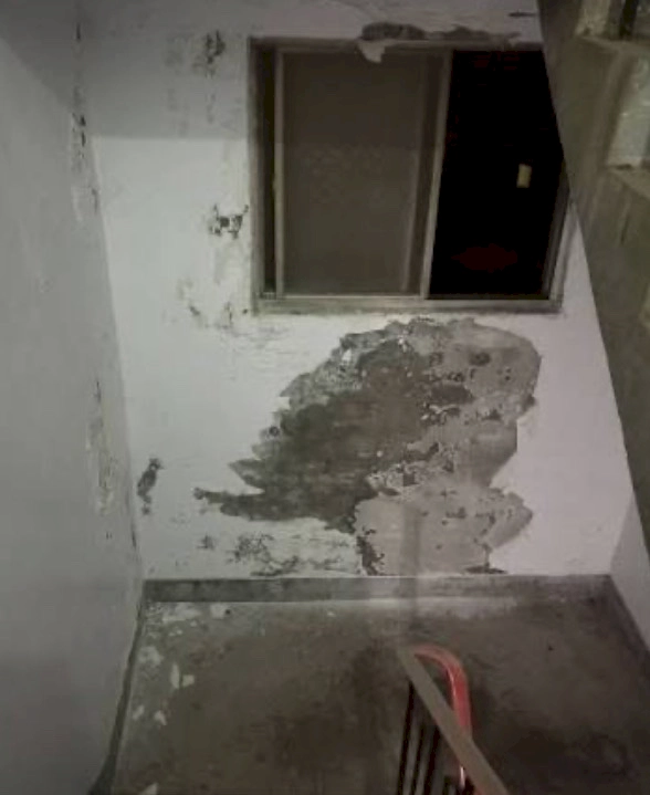▼接下來是更棘手的樓梯壁癌問題,每次去叔叔家,走在樓梯間都感到心驚膽跳,生怕不小心吸入脫落的粉塵與黴菌孢子,這壁癌真的太嚴重,太誇張了!