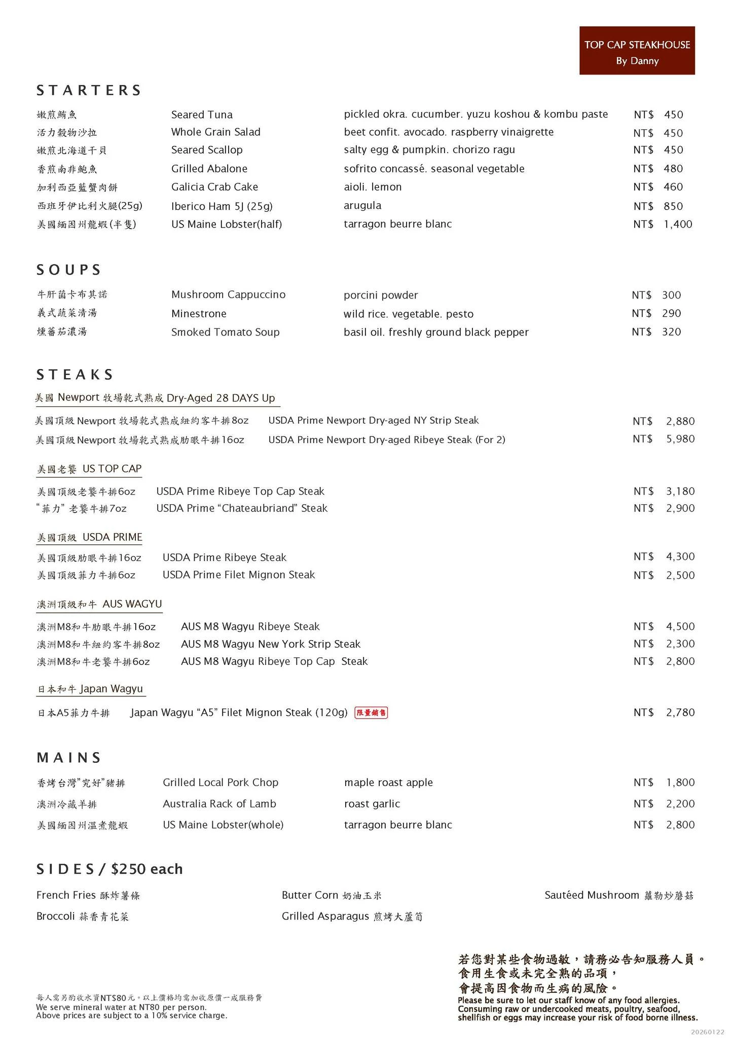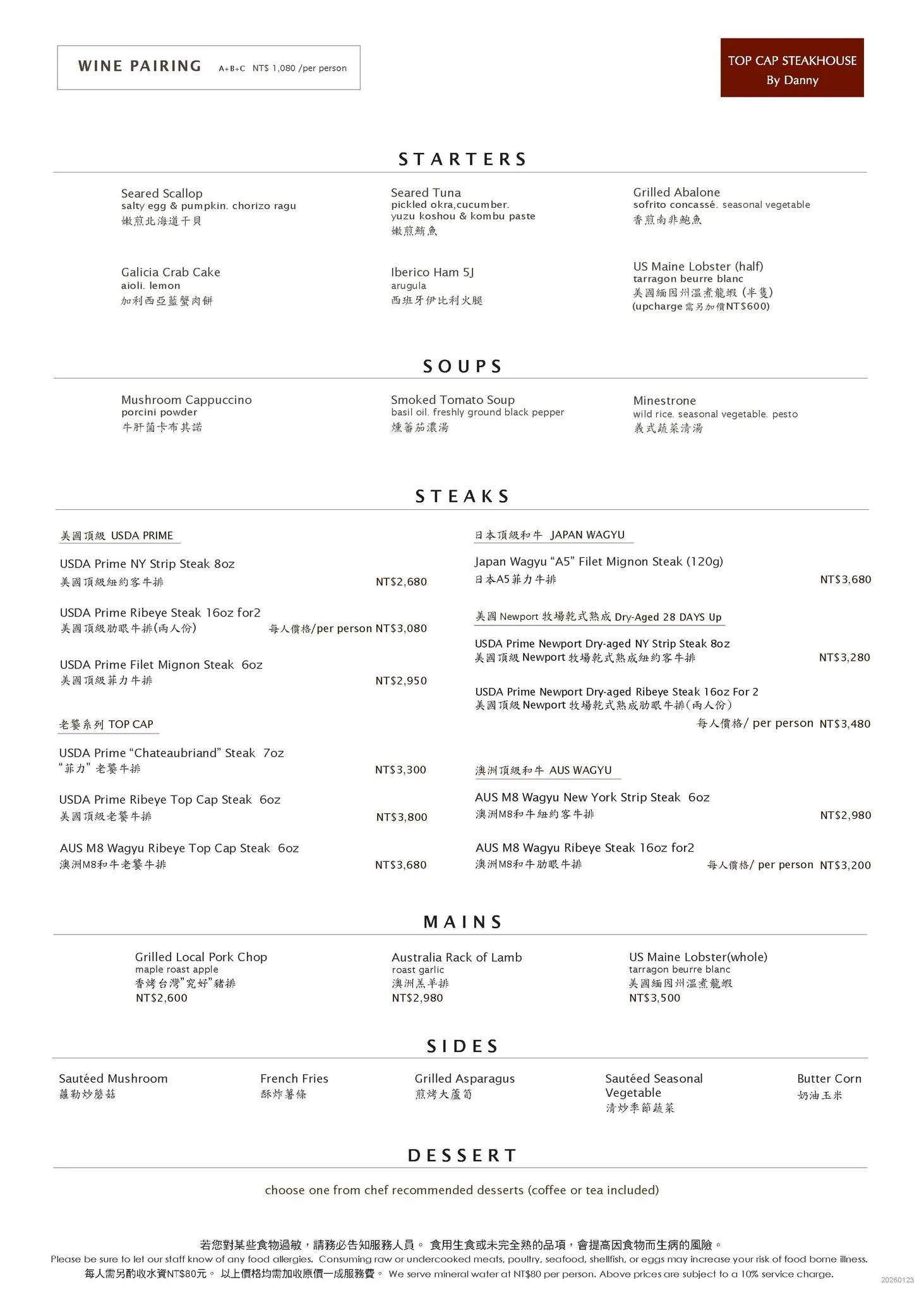▼如果擔心套餐太多吃不完,餐廳也提供單點菜單,可以自行選擇喜歡的牛排或主餐,以及要搭配的前菜、配菜等。