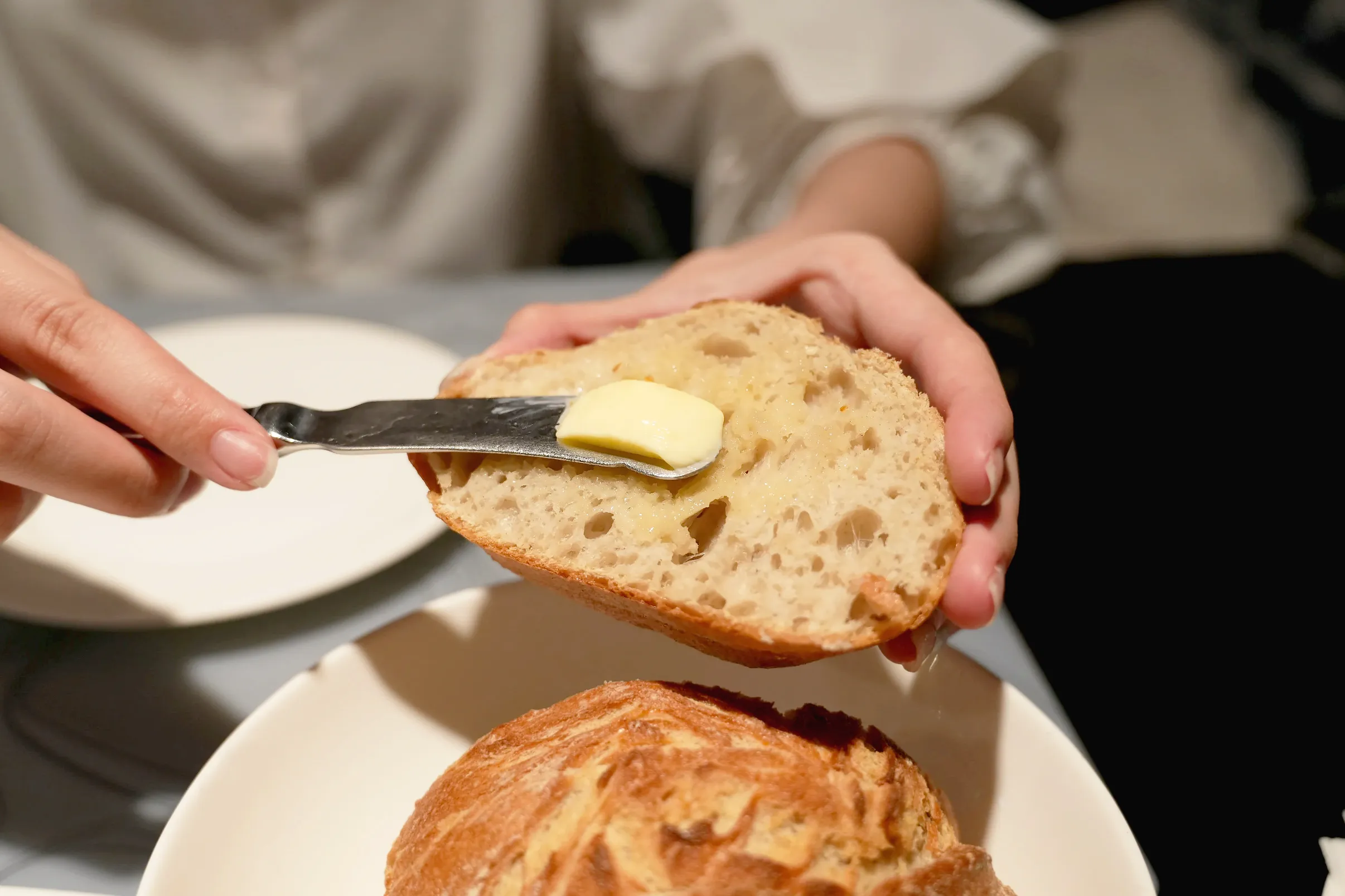 ▼和多數的西餐餐廳一樣,一開始都會有麵包盤,麵包都幫忙烤過,外皮酥脆,內部的麵包芯溫熱柔軟,還有附上奶油讓我們塗抹,奶油有一點點鹹味,很適合搭配麥香濃郁的麵包,如果吃不完也可以請餐廳幫忙打包,不用擔心會浪費。