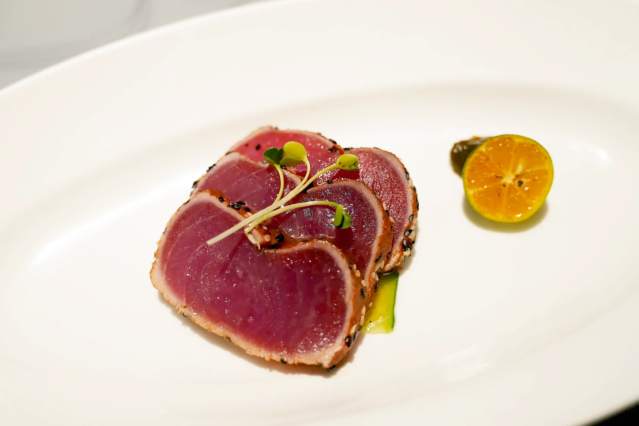▼朋友選的前菜是嫩煎鮪魚,內部的肉是生的,吃起來比較像是有焦香味的生魚片,如果不敢吃生食的話可能要注意一下。