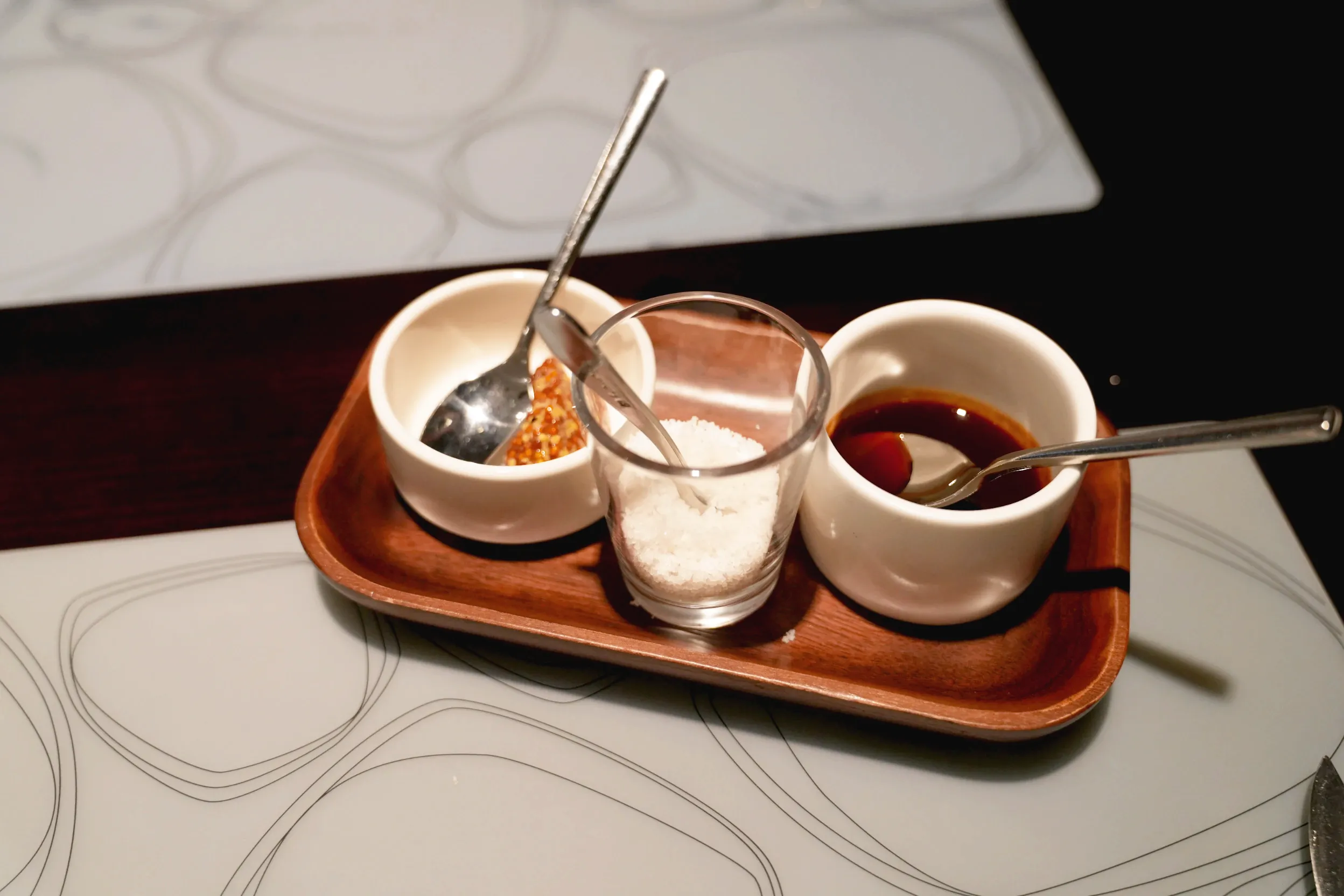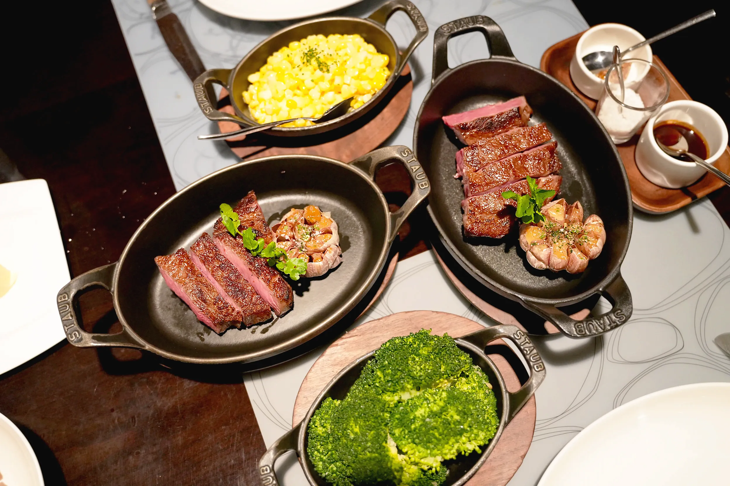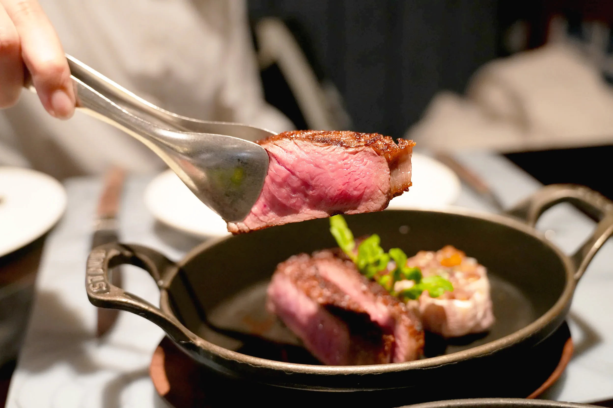 ▼餐廳有提供小夾子,方便將牛排夾取到自己的盤子裡。牛排也有附微酸的芥末籽、鹽之花和紅酒醬3種沾料,讓你可以換換口味~