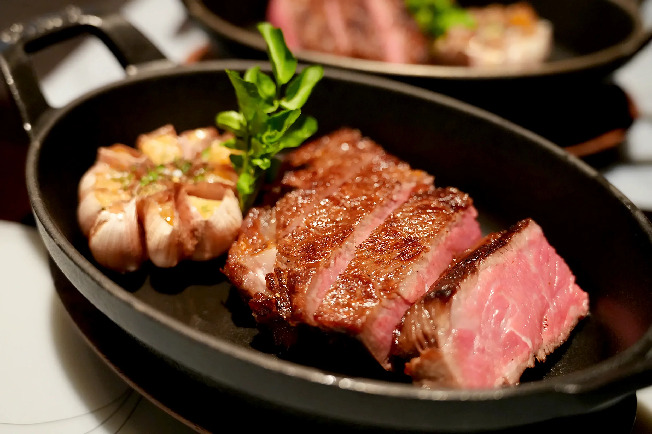 ▼接下來就是重頭戲主菜的部分!我跟朋友分別點美國頂級肋眼菲力牛排和美國頂級 Newport 牧場乾式熟成紐約客牛排,紐約客牛排有8oz,會比6oz的肋眼菲力牛排更大一點。