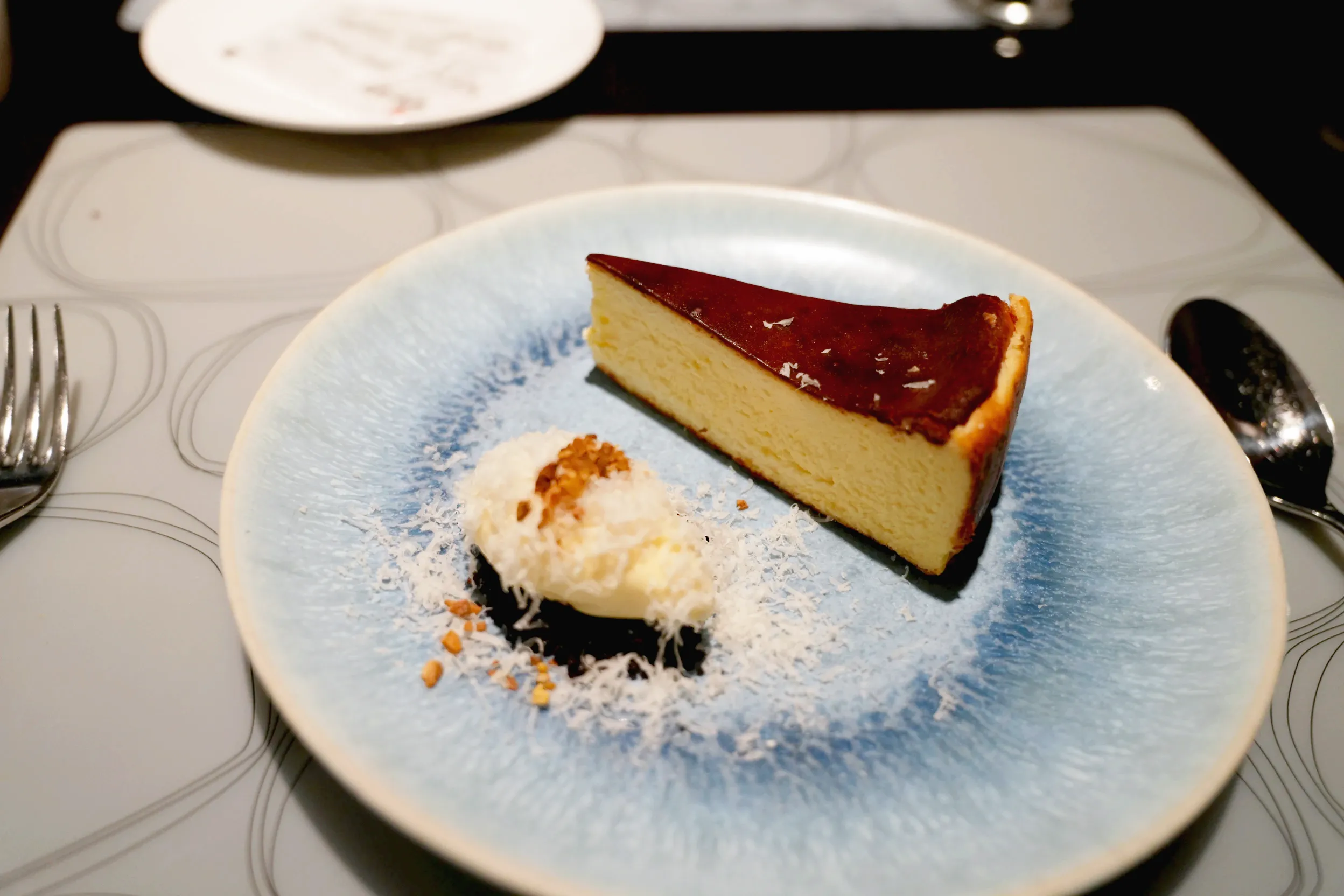 ▼餐後甜點朋友點了巴斯克乳酪蛋糕,在菜單上有特別標註含有酒精,不過吃起來乳酪味很重,並沒有什麼酒味,反而尾韻會有一點焦糖味,吃起來蠻有飽足感的,如果是小鳥胃的朋友可能要斟酌一下。