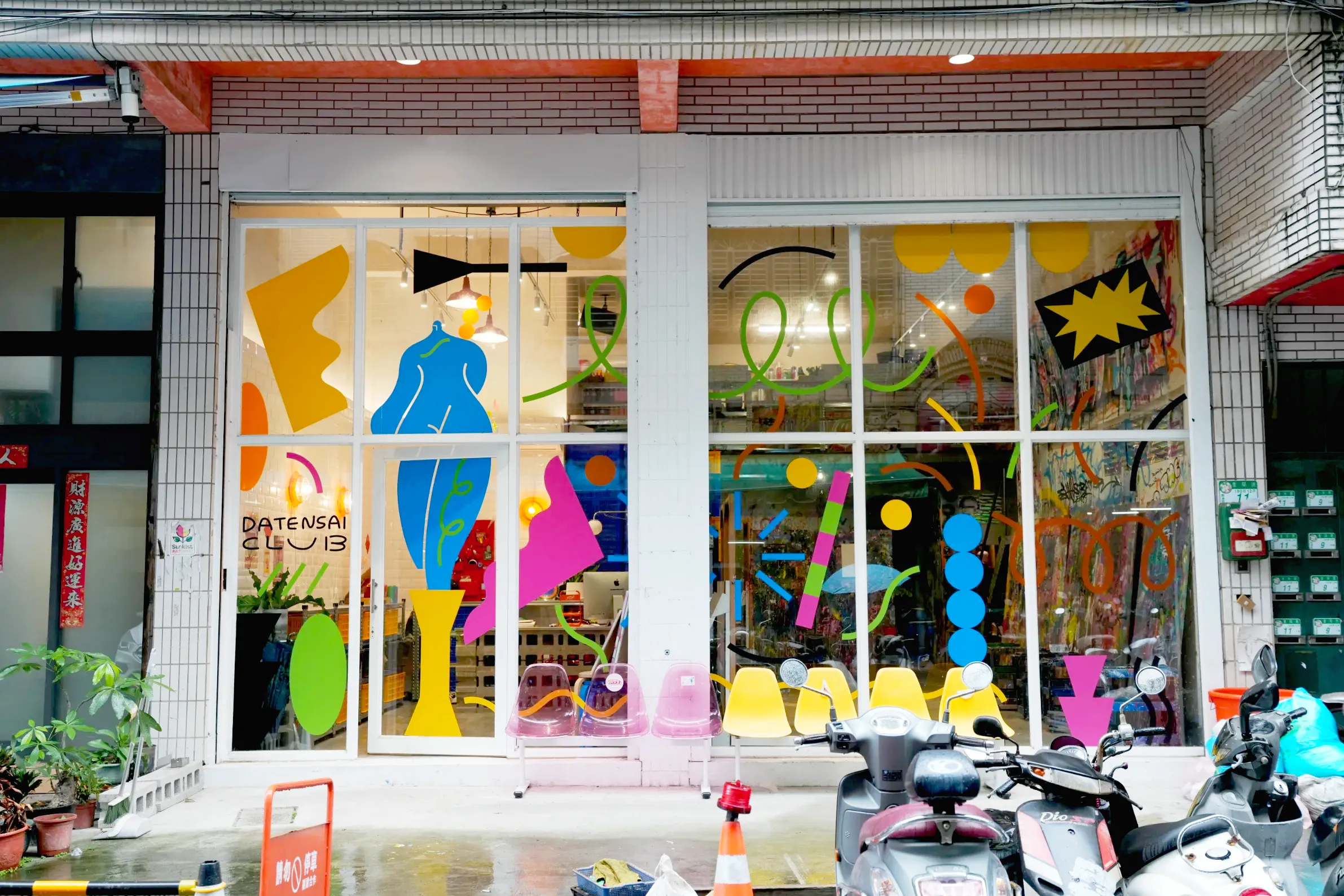 ▼「大天才動感の沙龍」的店面門口非常繽紛可愛,外面的椅子也很適合坐在那邊打卡,從玻璃落地窗還可以看到裡面的創作空間喔!