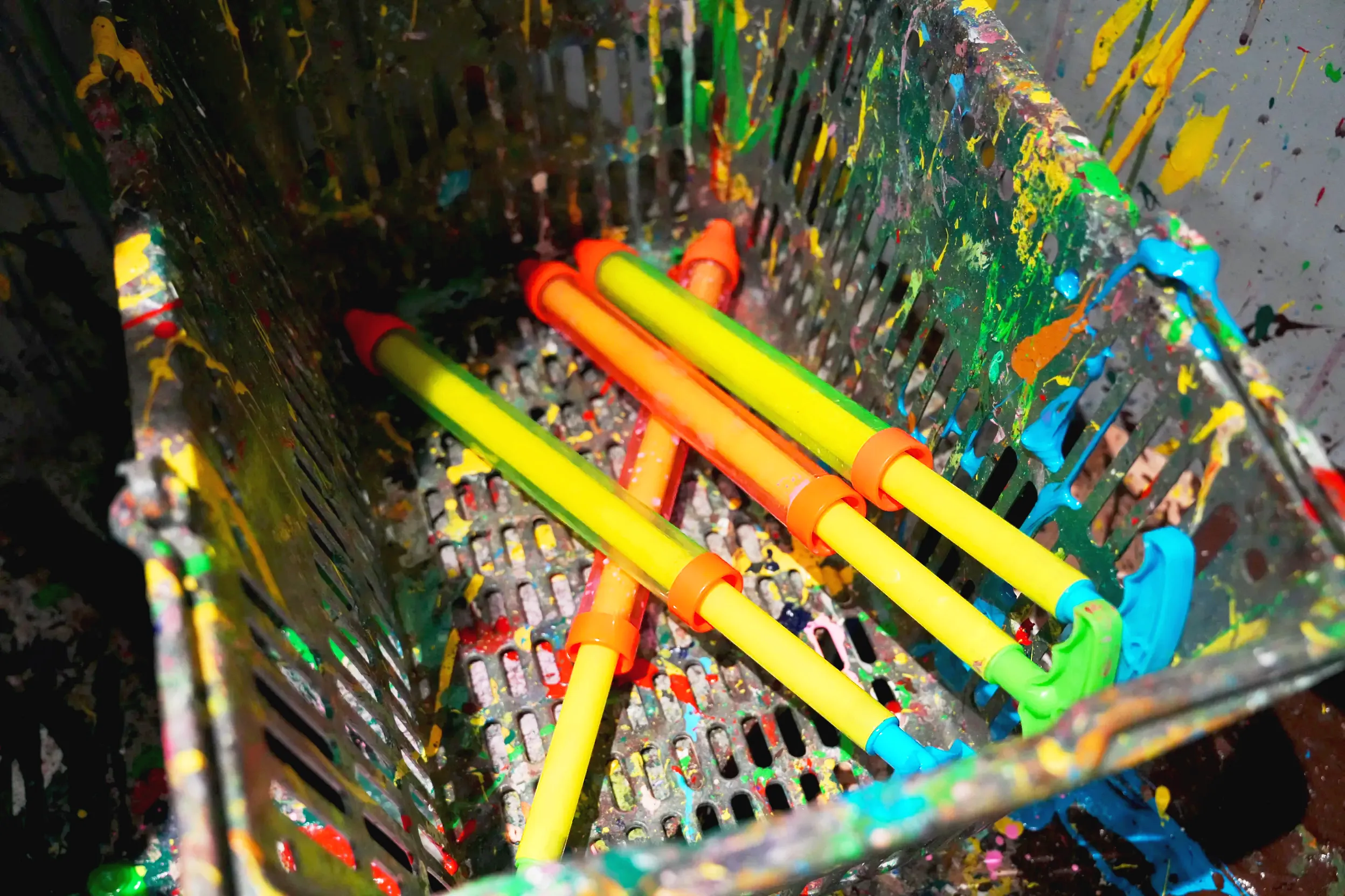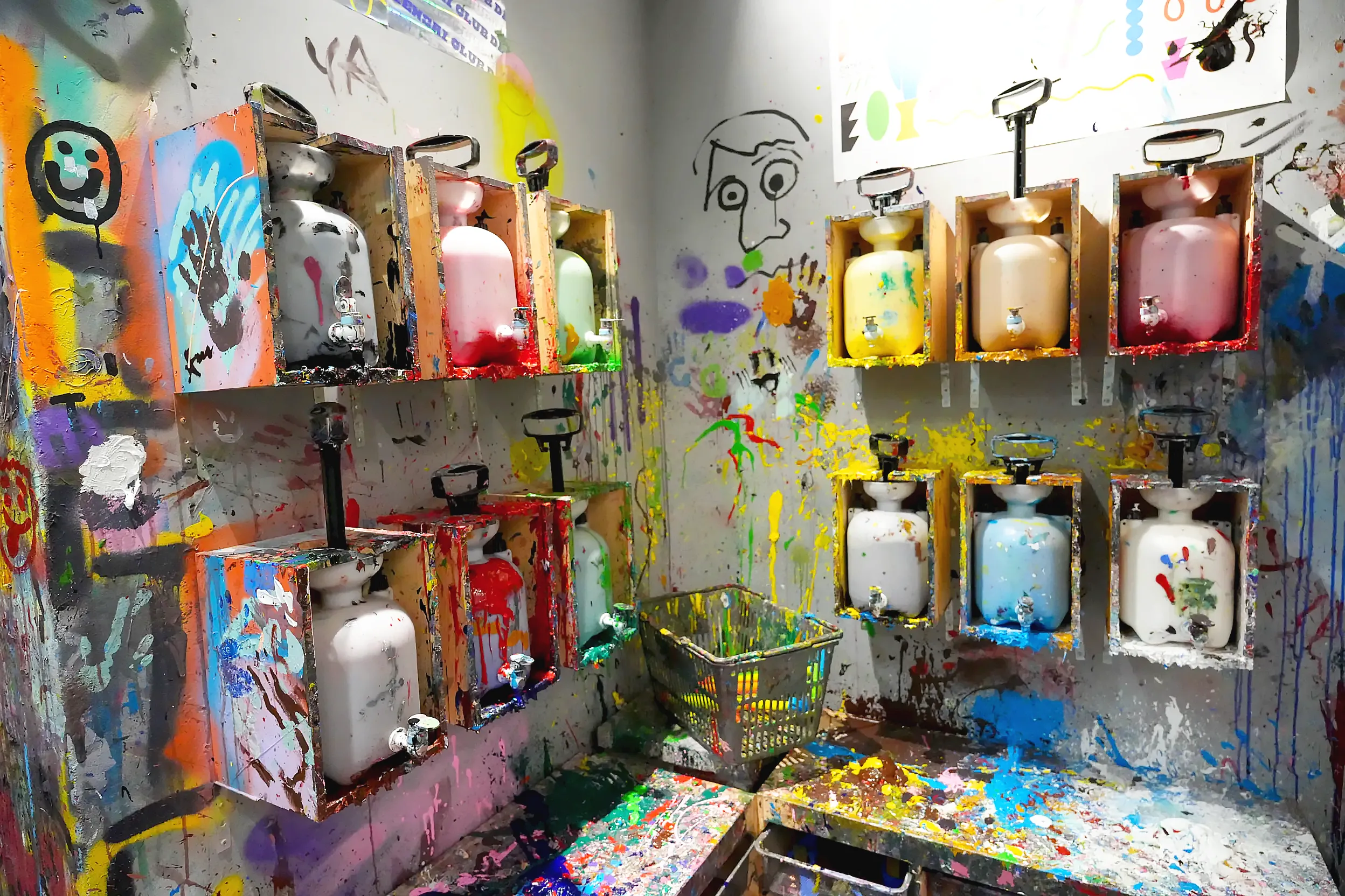▼畫室還有提供水槍,讓你可以吸取顏料做出噴濺的效果,當然也可以拿來跟同行的友人一起共同發揮創意,不過還是要小心,別噴到其他人的作品喔!