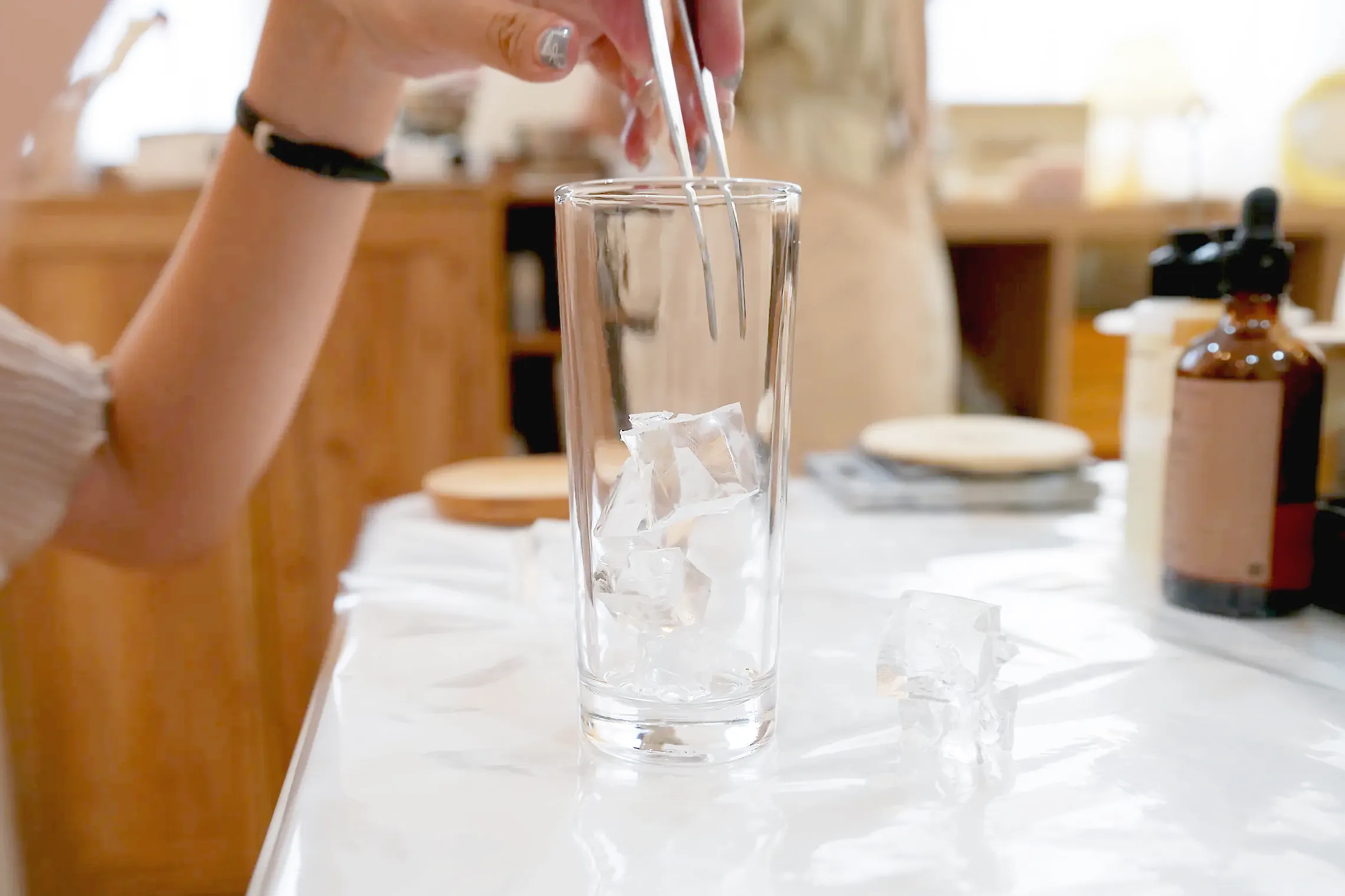 ▼等待可麗露的時候,我們要來製作拿鐵蠟燭,拿鐵蠟燭的冰塊會用的非常特別的「水晶果凍蠟」,摸起來是QQ彈彈的感覺,完全沒想到居然也是蠟燭!不過老師有說拿鐵蠟燭是化學蠟,建議擺著好看就好,不要燃燒喔~