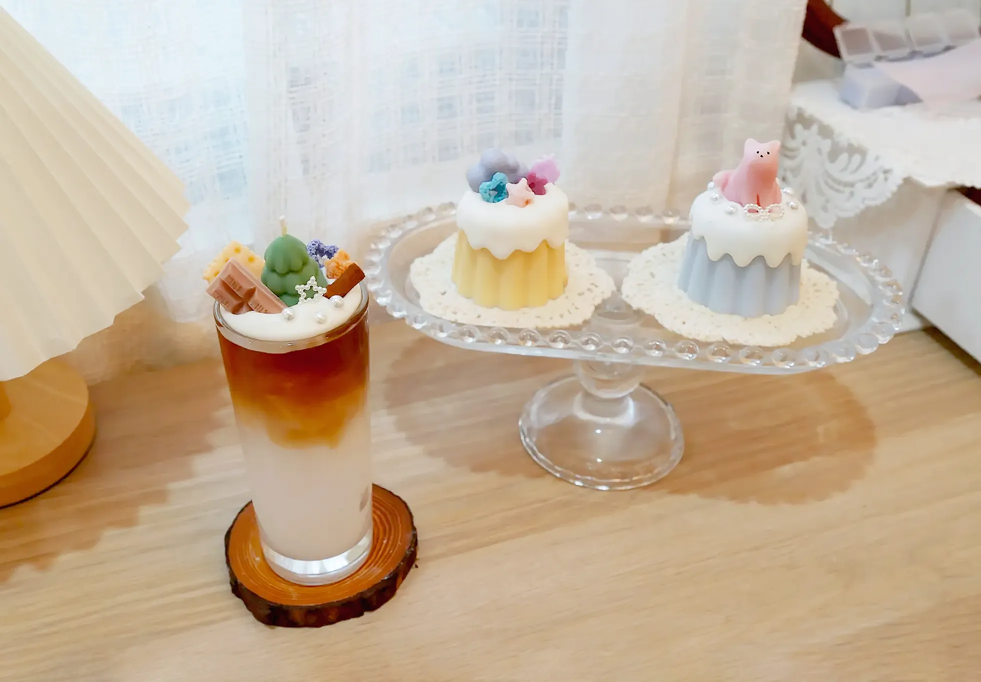 ▼蠟燭製作完成後,老師還會提供盤子和杯墊,讓你可以擺上可口美味的甜點跟飲料蠟燭,拍一堆美照發到社群上喔!