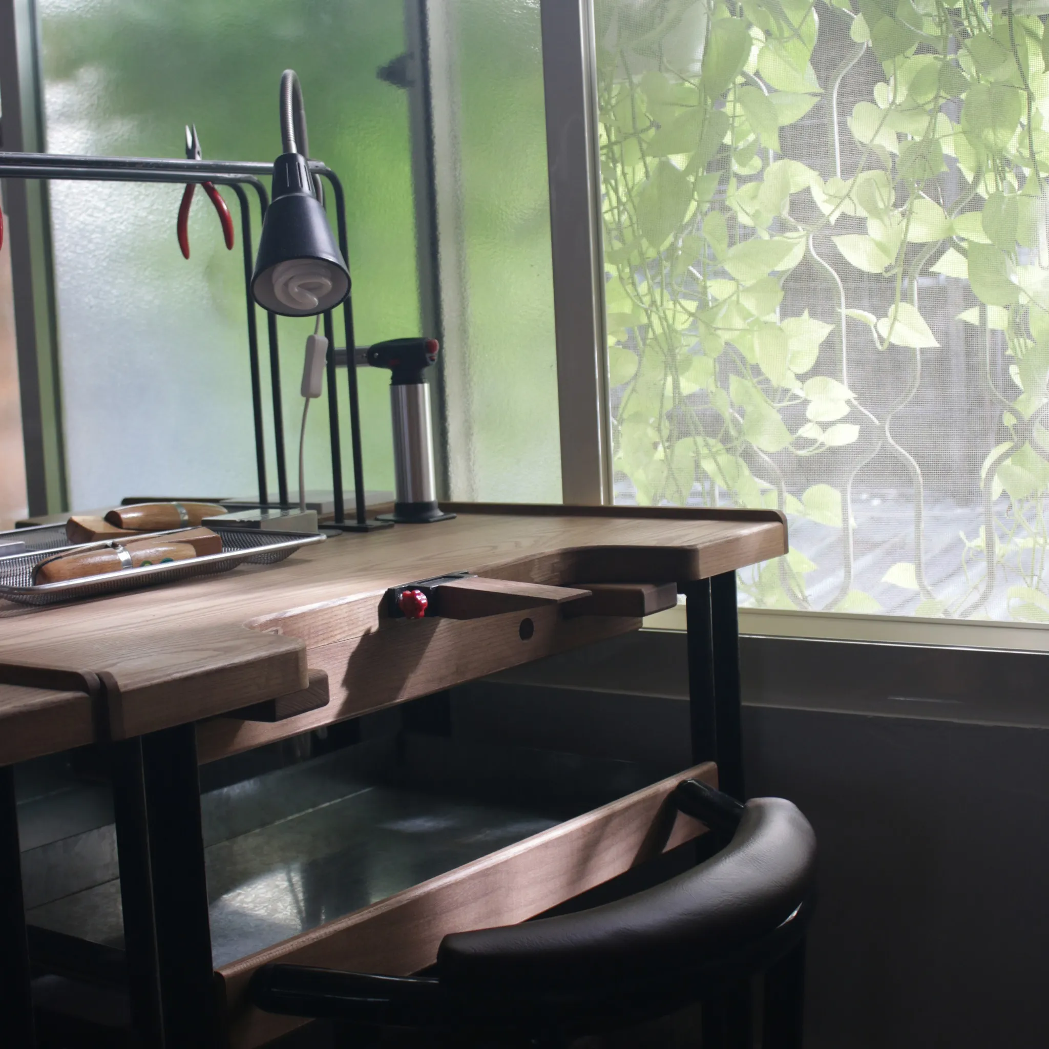 ▼一樓現場販售的展示區旁邊也有一個可以容納六個人左右的教學區,當天平日下午只有我們一組學生,所以就是在這邊上課,如果人比較多或是有團體課程的話,會開放空間比較大的二樓教學區。