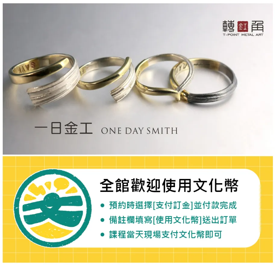 「轉角金工」位於台北市大同區,除了有手作戒指體驗課程以外,也可以自己做項鍊、手環、耳環等非常多種金工項目喔!