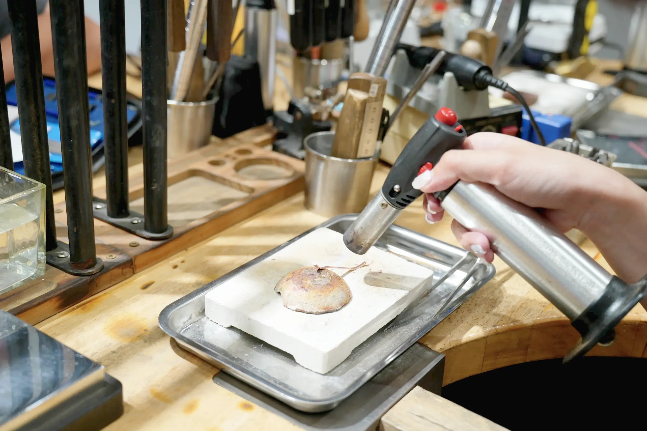 ▼「轉角金工」的教學方式和其他店家最不一樣的地方,就是幾乎每個步驟都會給學員自己動手操作,包括比較危險的噴火槍,老師講解示範完後,也都給我們自己用,如果你是新手也不用擔心,老師一直都在旁邊,有問題都可以隨時呼救喔!