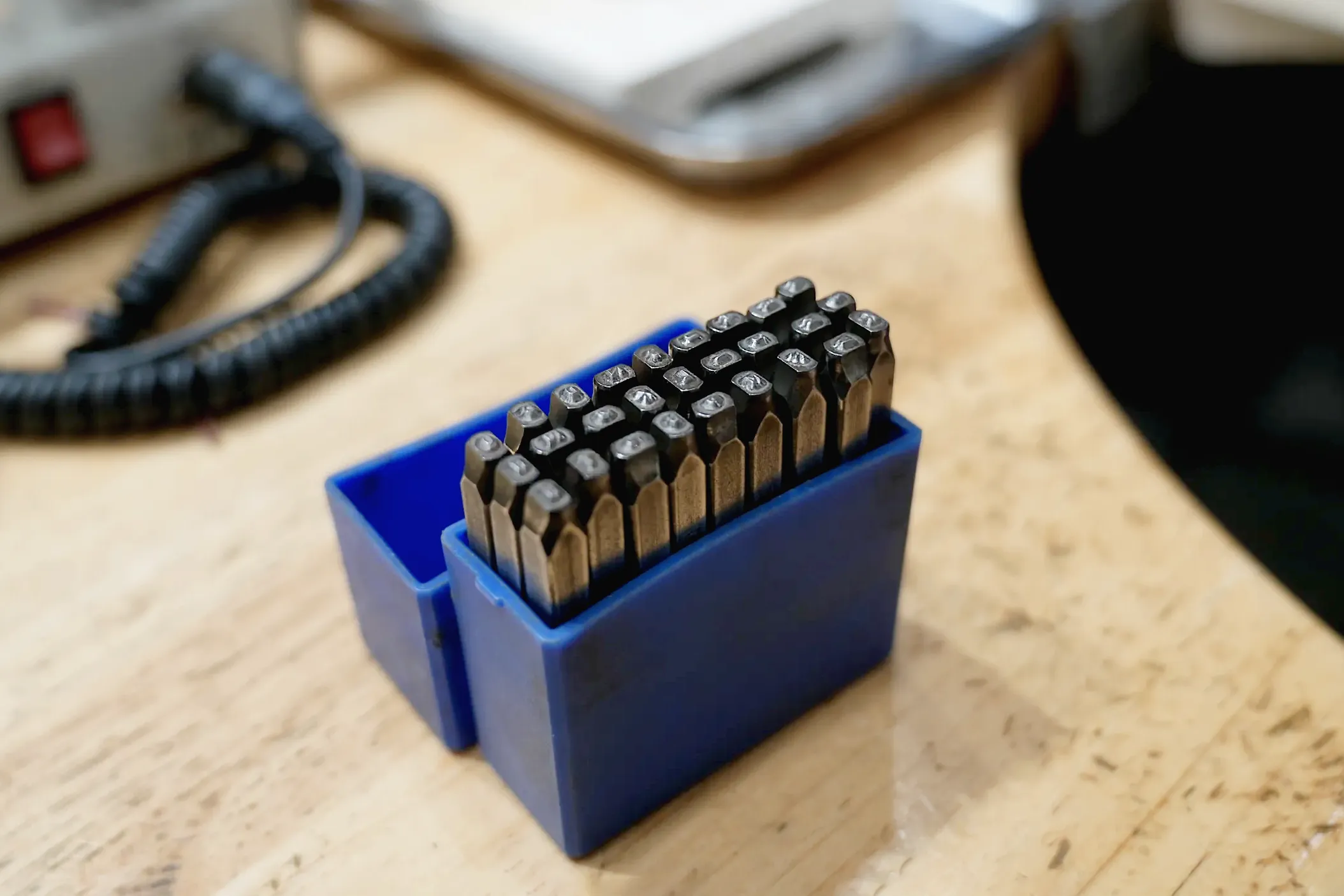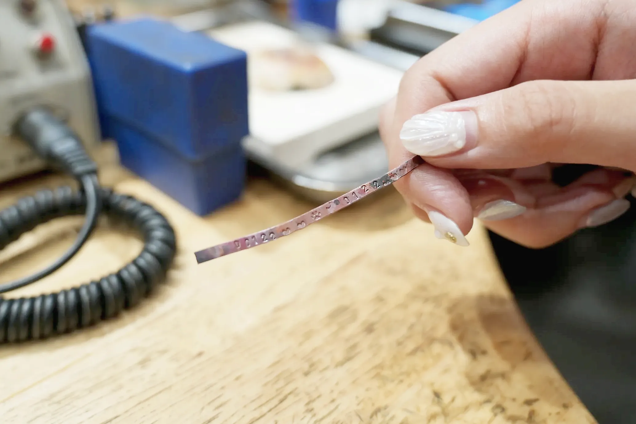 ▼練習完後就可以正式在這次製作的銀條上敲字啦!這次製作的轉運戒材質是925銀,含有92.5%的純銀,再加上7.5%的其他金屬,平時洗澡都不用拆下來,店家也提供永久保養,變黑或是稍微小變形都可以帶回店家保養喔!
