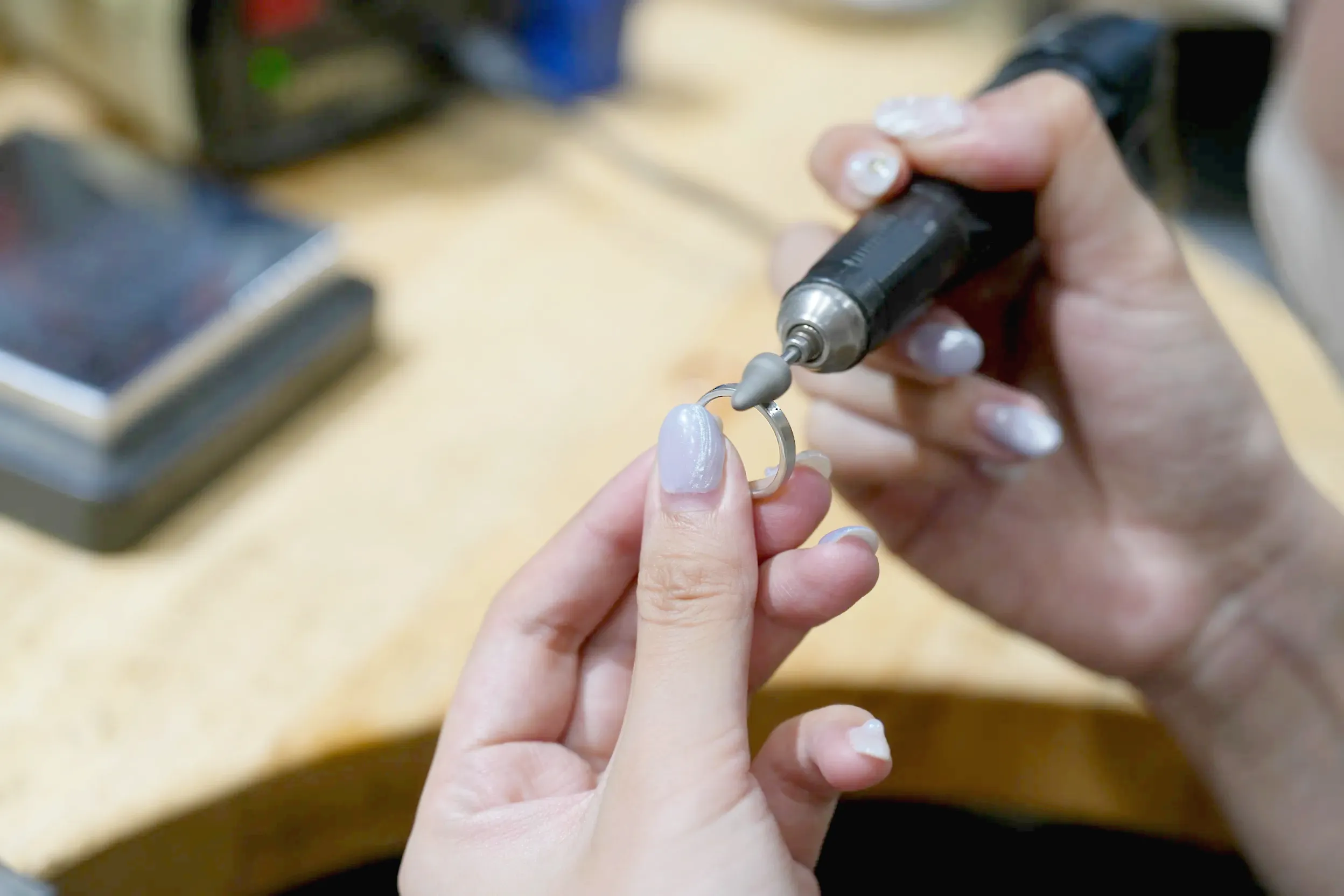 ▼老師修整完後,會再讓我們用橡皮拋光,並且再用機器進行一次拋光,手作戒指的大功告成啦!拋光前後的對比真的差很多,整個戒指都亮起來了!