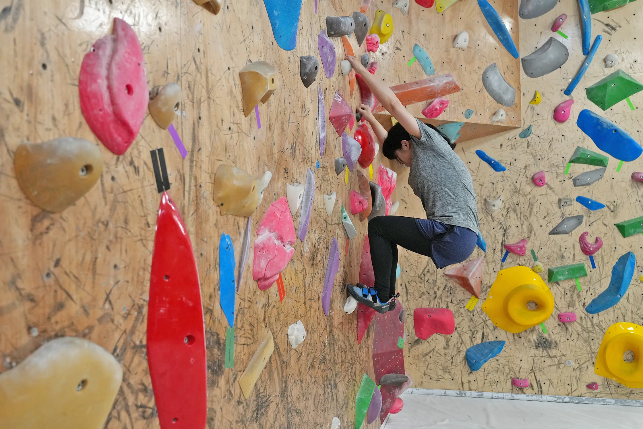 長大後很少這樣爬高高了,但實在是很想試試室內的攀岩課程,因此選擇相對容易的「抱石」。一開始確實有點怕怕的,但後來就像喚起兒時記憶般越爬越好,只是到體驗課後半會越來越無力,而且我本身是雙手用的力度遠大於雙腿,所以回去後手痠了幾天,教練說看你哪邊比較酸,就是你哪邊力氣比較大、用的力比較多,爬久了有經驗了,身體就會自己去平衡力度,讓你的四肢可以達到平衡,用更省力的方式攀爬。