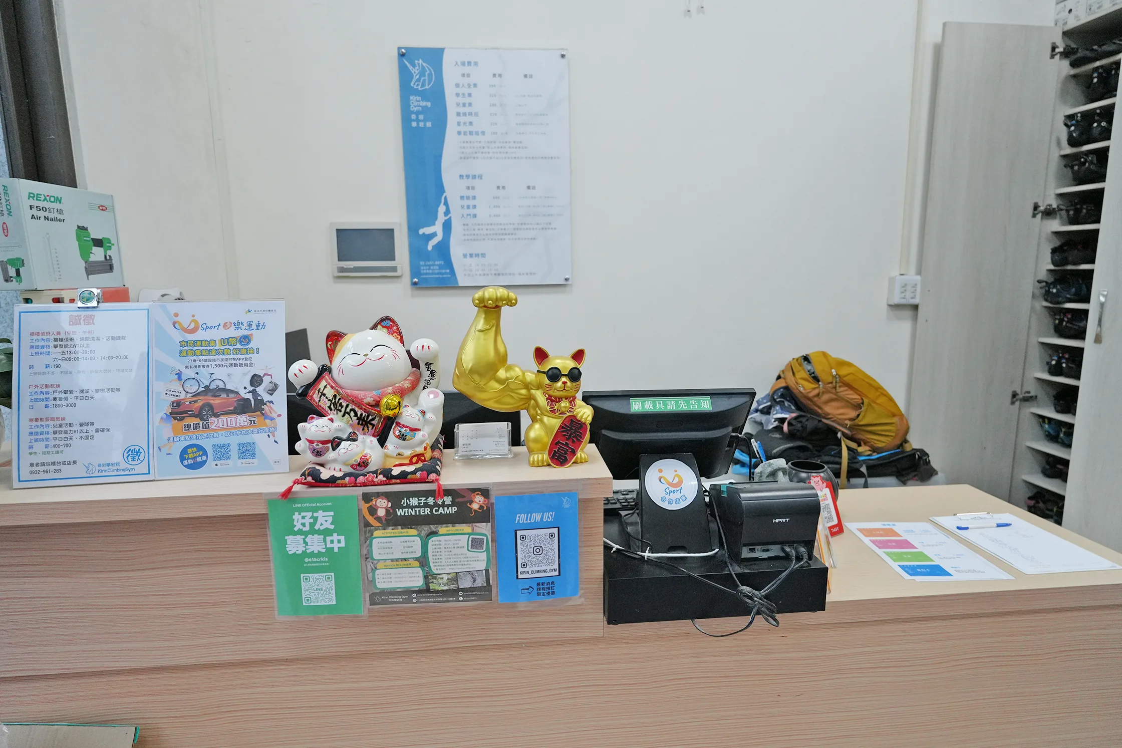 「奇岩攀岩館」收費主要分成入場與教學兩大項目,另外入場還有推套票、月票、季票等,可以直接與櫃檯詢問。