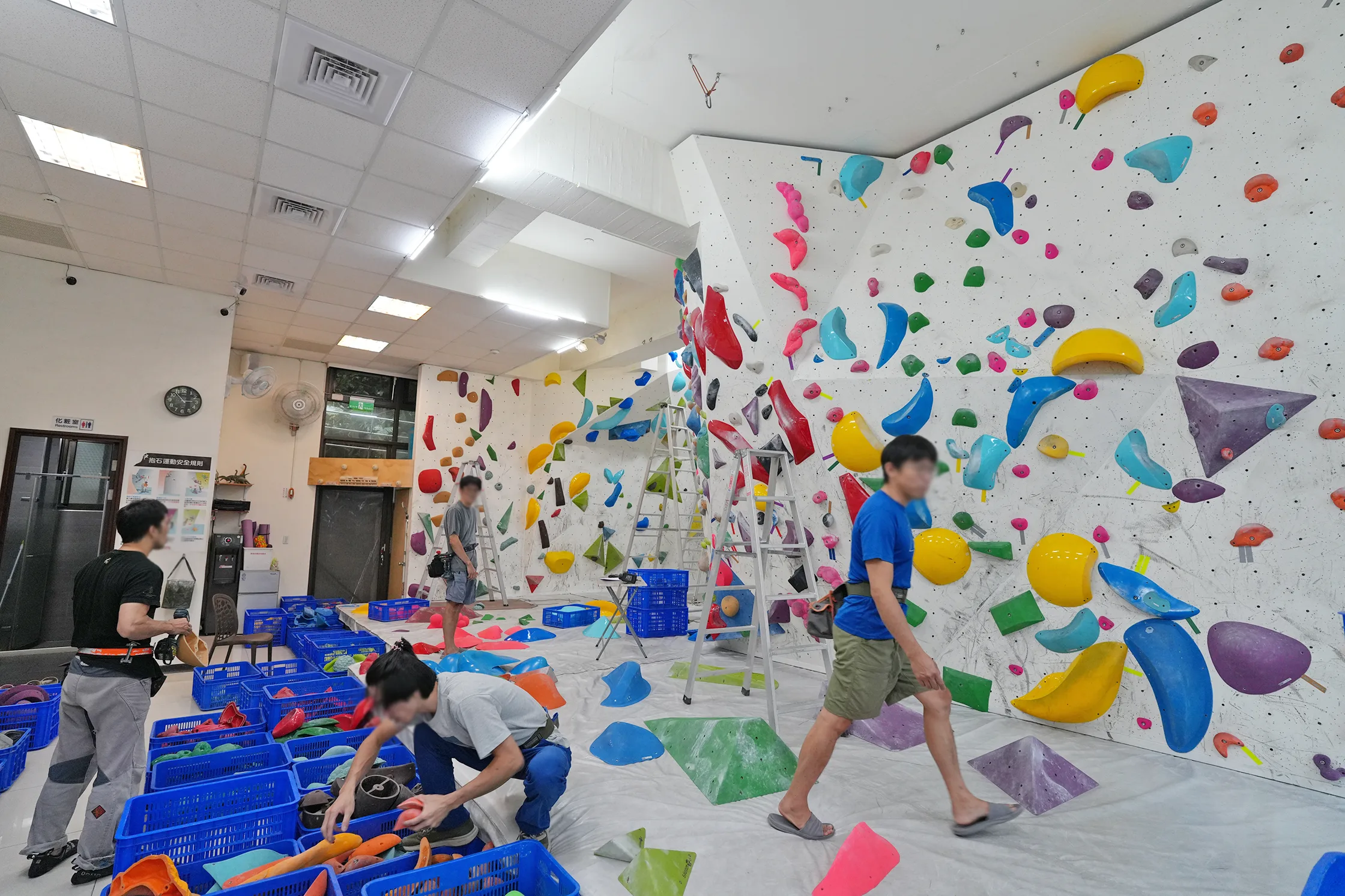 ▼今天剛好遇到換路線施工,所以前面這區牆面今天沒辦法用比較可惜,但我也是看到才知道攀岩場會定時換路線。後來想想也是,常來爬的老手都爬膩了,不換換增加新鮮感怎麼行呢。