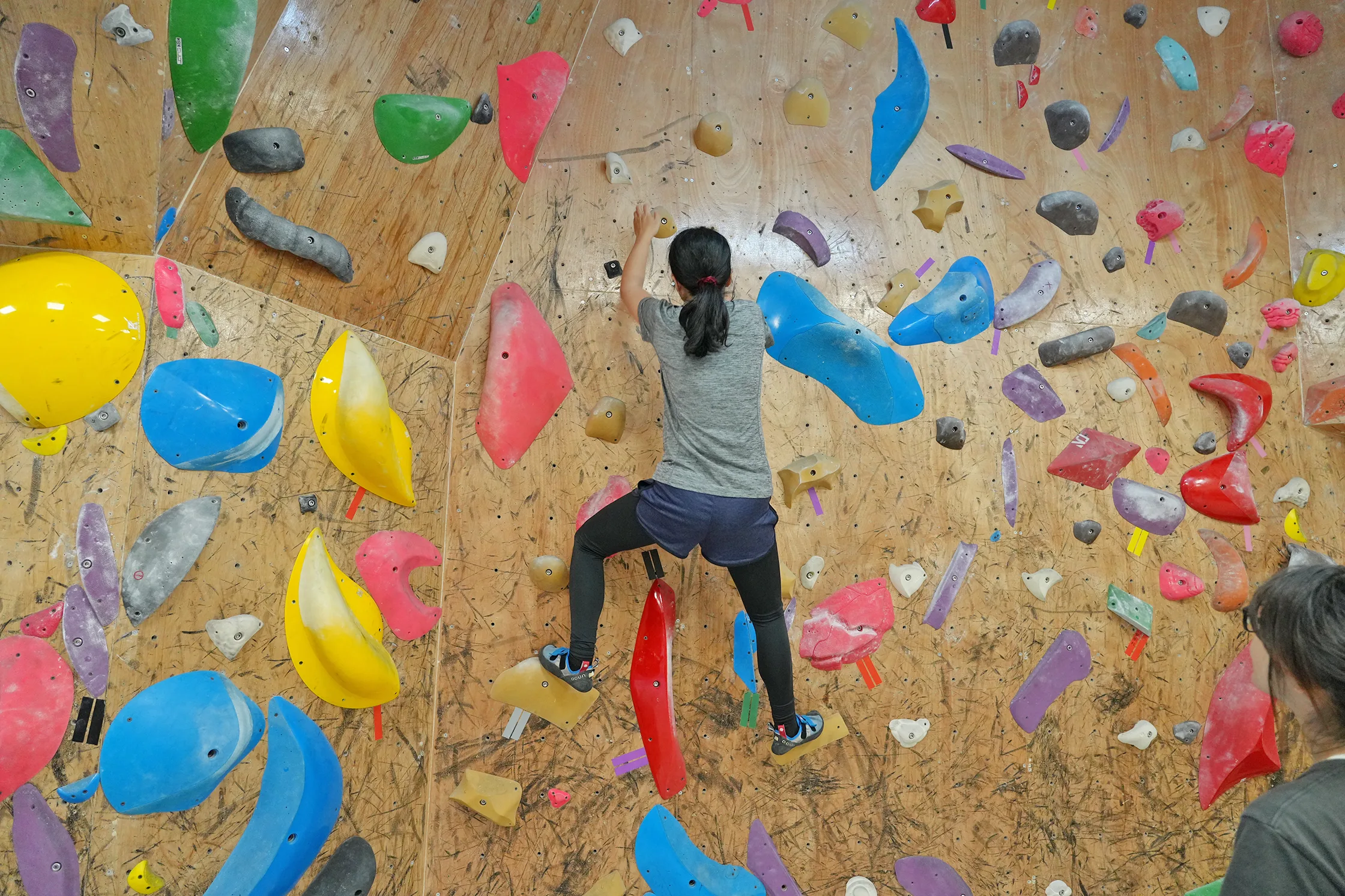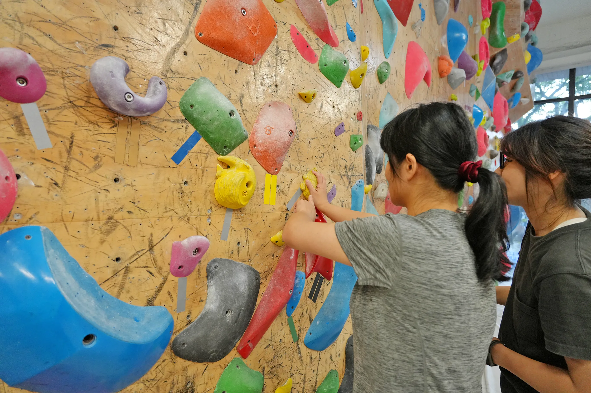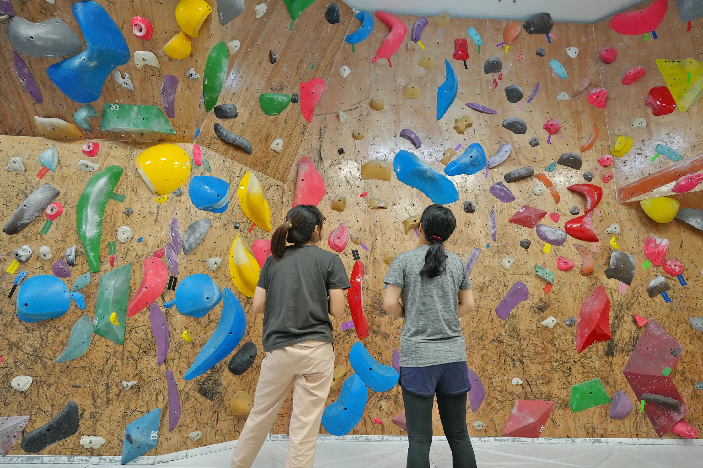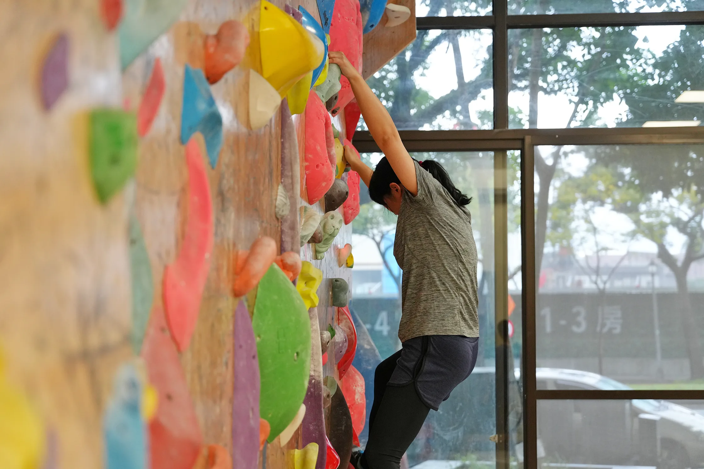 有些小怕高的人也是能來體驗抱石的,因為你的眼睛是一直往上看,根本沒什麼時間往下看,而且視線都貼牆,基本上不會有什麼懼高感。