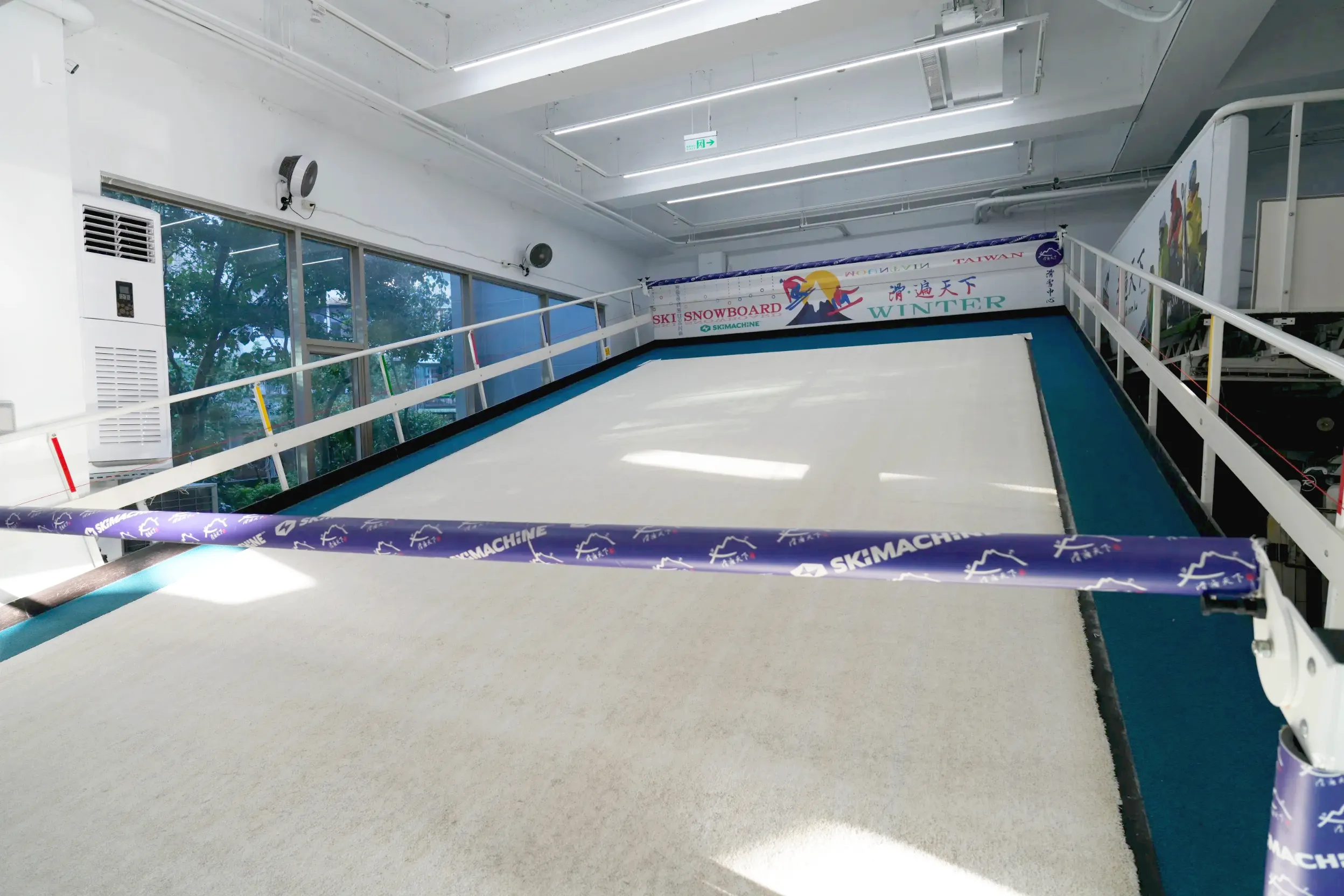▼「滑遍天下滑雪中心」有2台滑雪訓練機和1台滑雪模擬機。訓練機是類似跑步機輸送帶的概念,採用奈米科技滑雪專用草皮,讓你可以實際體驗滑雪的感覺。模擬機又稱「搖搖寶」,主要是左右搖動,會透過感應器來顯示練習數據,進而調整動作。