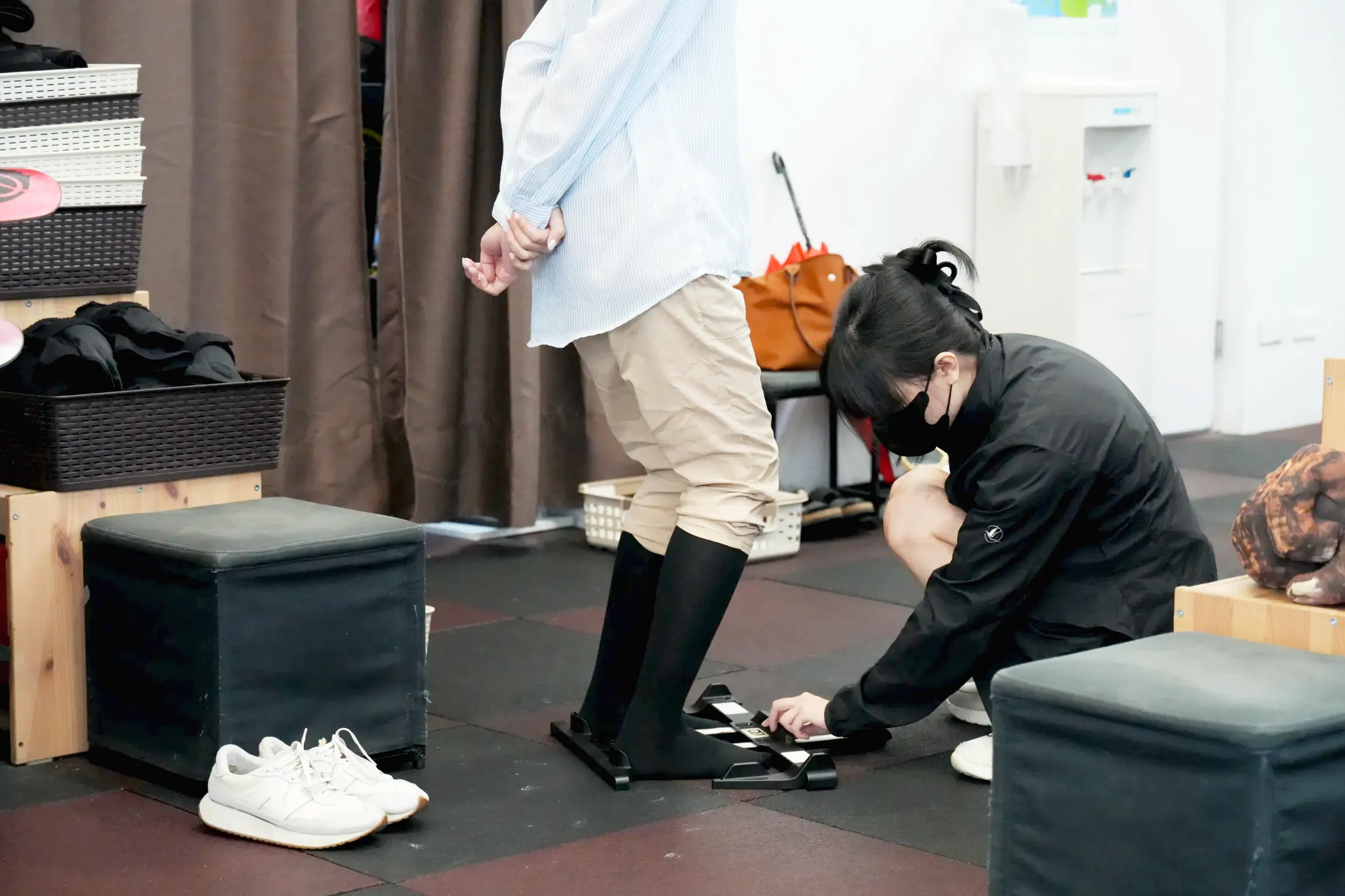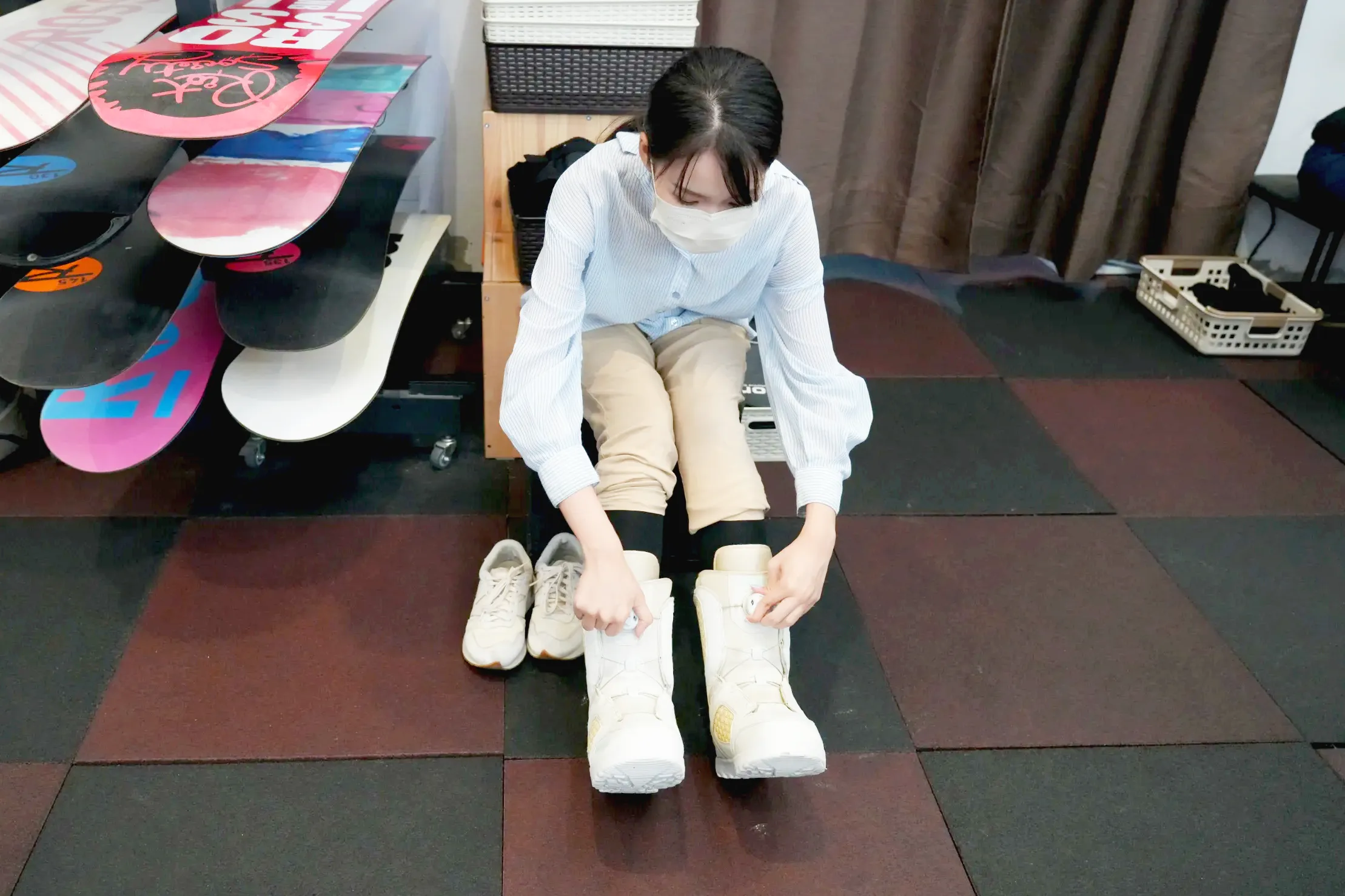 ▼因為中心希望學員可以學會自己穿裝備,所以店員基本上只會告訴你怎麼穿,還是會請你自己試試看,我第一次穿真的是有點搞不清楚XD但有任何問題都可以求救店員,所以最終還是有順利穿好雪鞋啦~