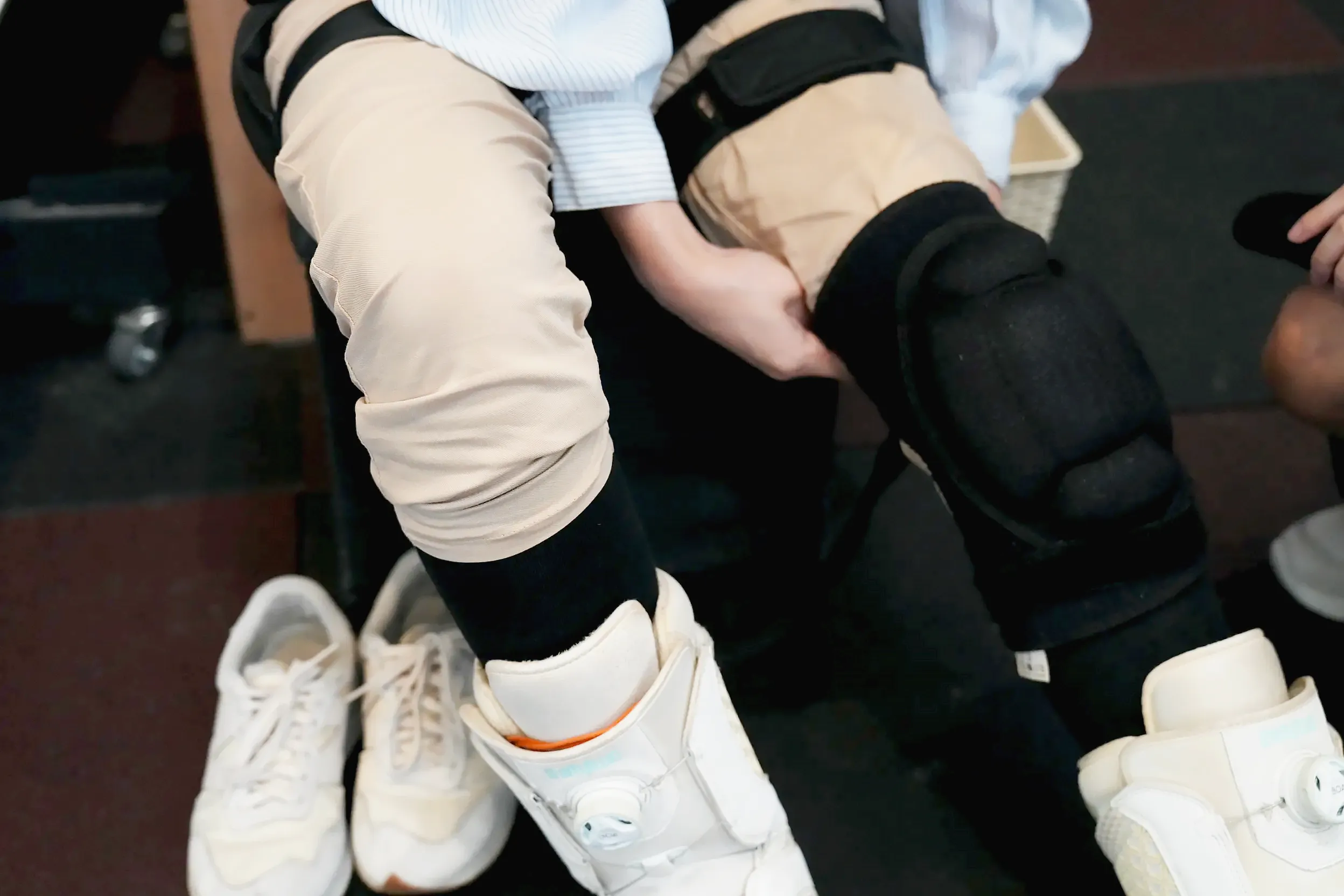 ▼要注意的是因為安全考量,盡量避免穿太長的褲子,長褲需要捲起來,所以不能穿牛仔褲這種沒有彈性的褲子,然後一定要穿到膝蓋的雪襪喔!