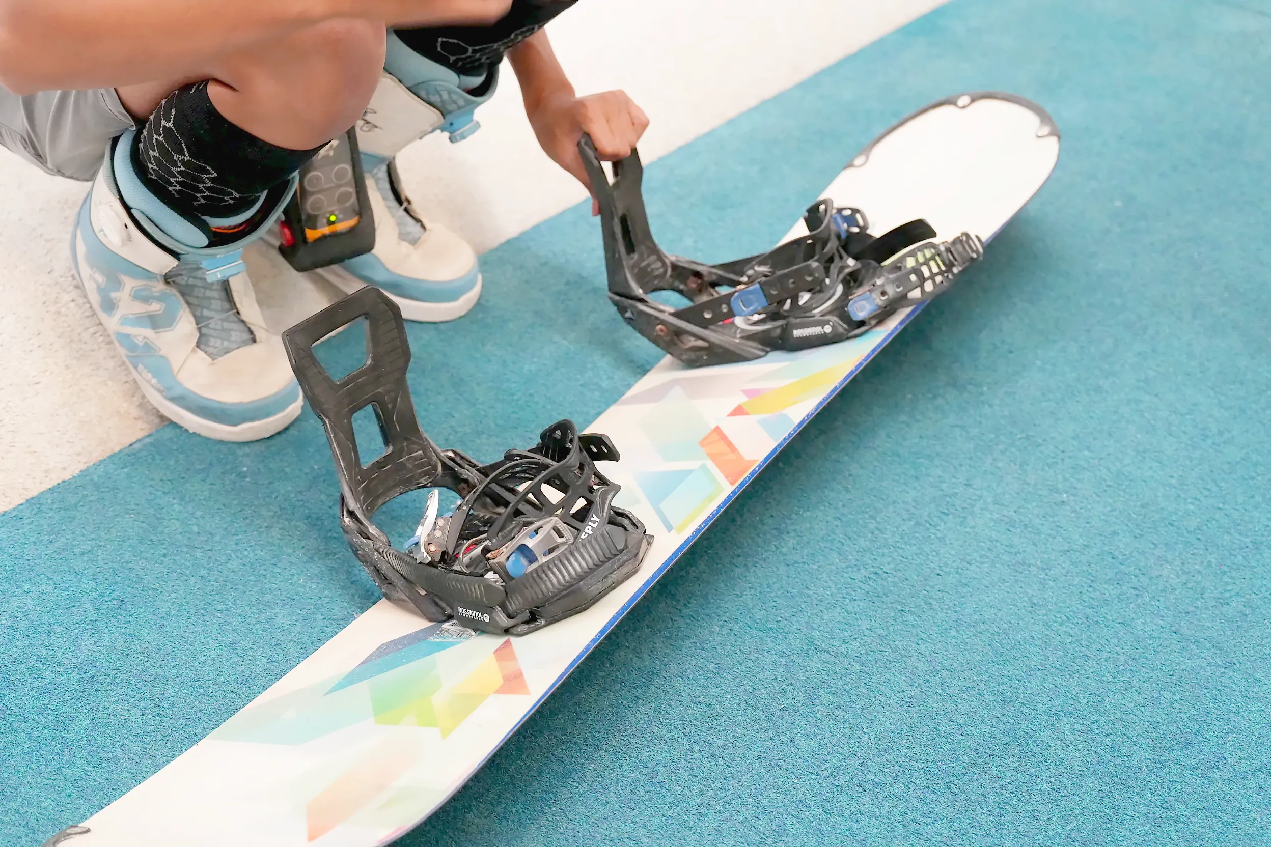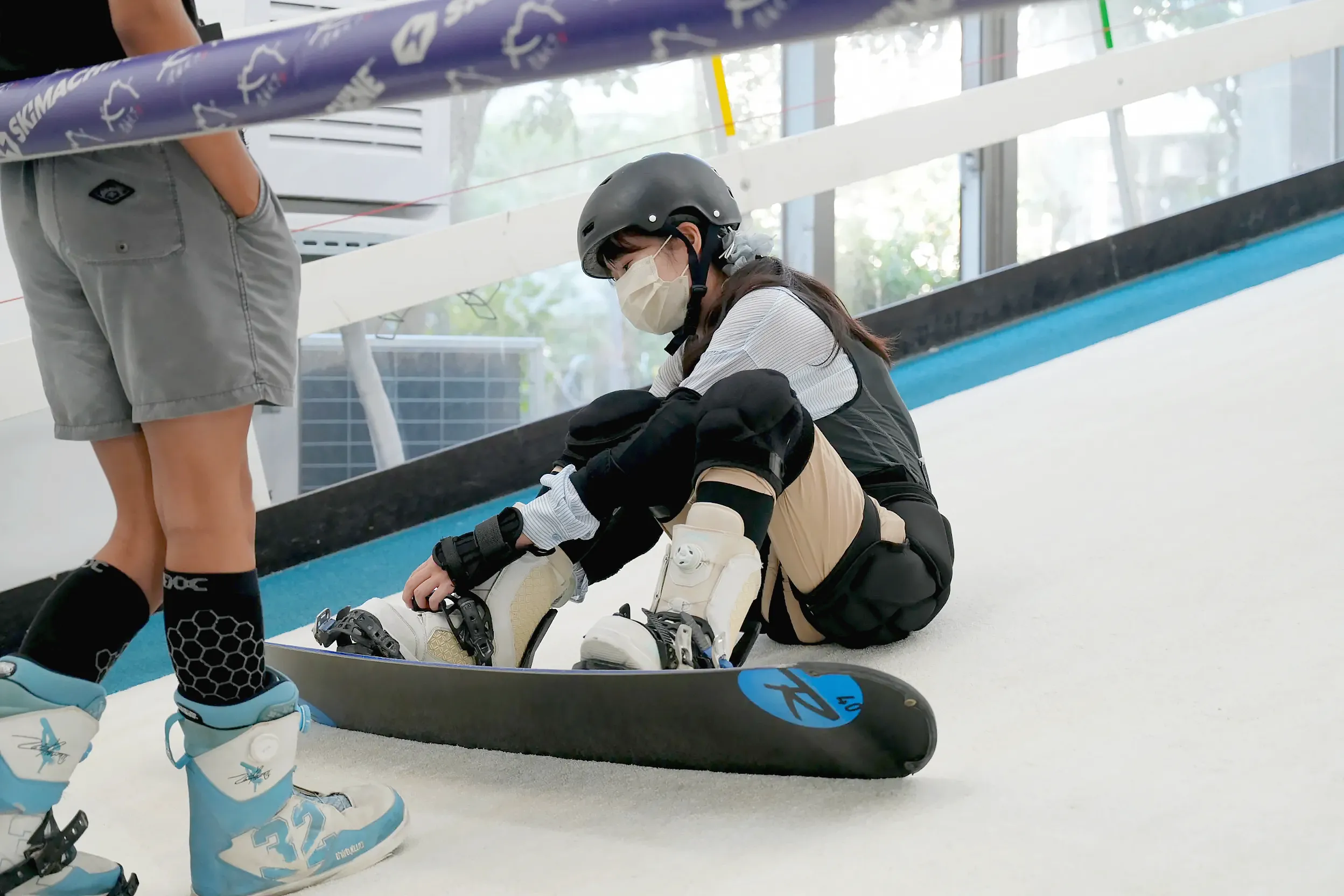 ▼再來會教導怎麼穿單板,教練會先協助穿上去一次後,再幫我拆掉,讓我上滑雪練習機時自己實際穿一次看看,確定我有辦法自己穿,過程中教練也都會協助,很快就上手了!