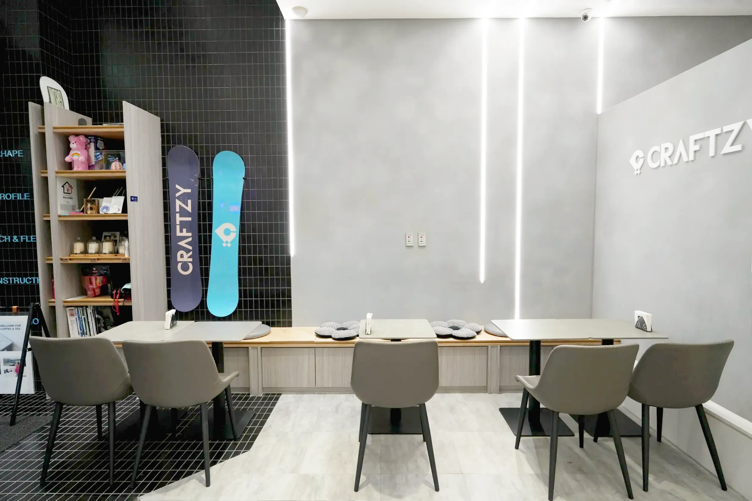 ▼一進門就是 Craftzy Sports Club 的咖啡廳空間,咖啡的價格大約落在一杯100~150元左右,旁邊也有很舒服的座位區,陪同的雪友們也可以在這邊坐著休息享受喔~