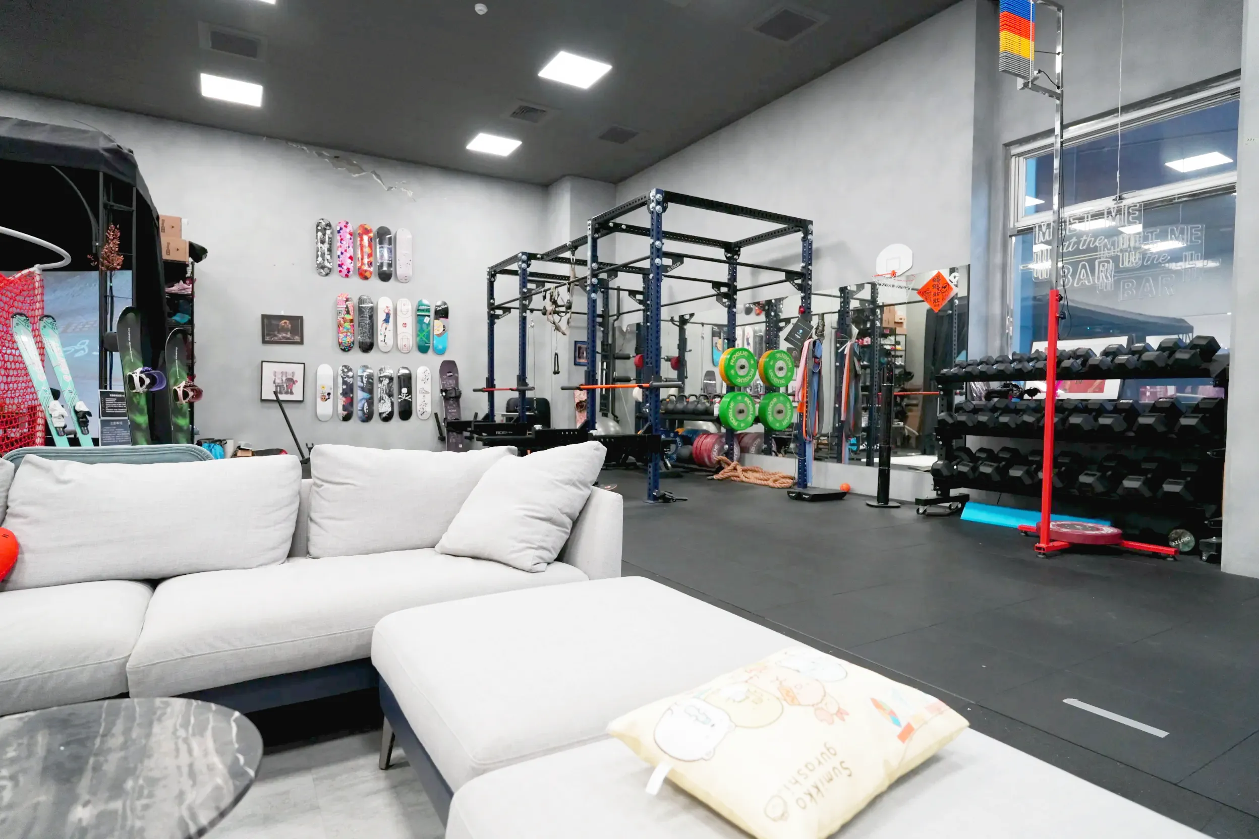 ▼店內也有提供健身空間,上機前的暖身或是練習後的舒緩都可以在這邊進行,旁邊也有沙發可以休息,陪同的親友也可以在這邊觀摩上課喔!