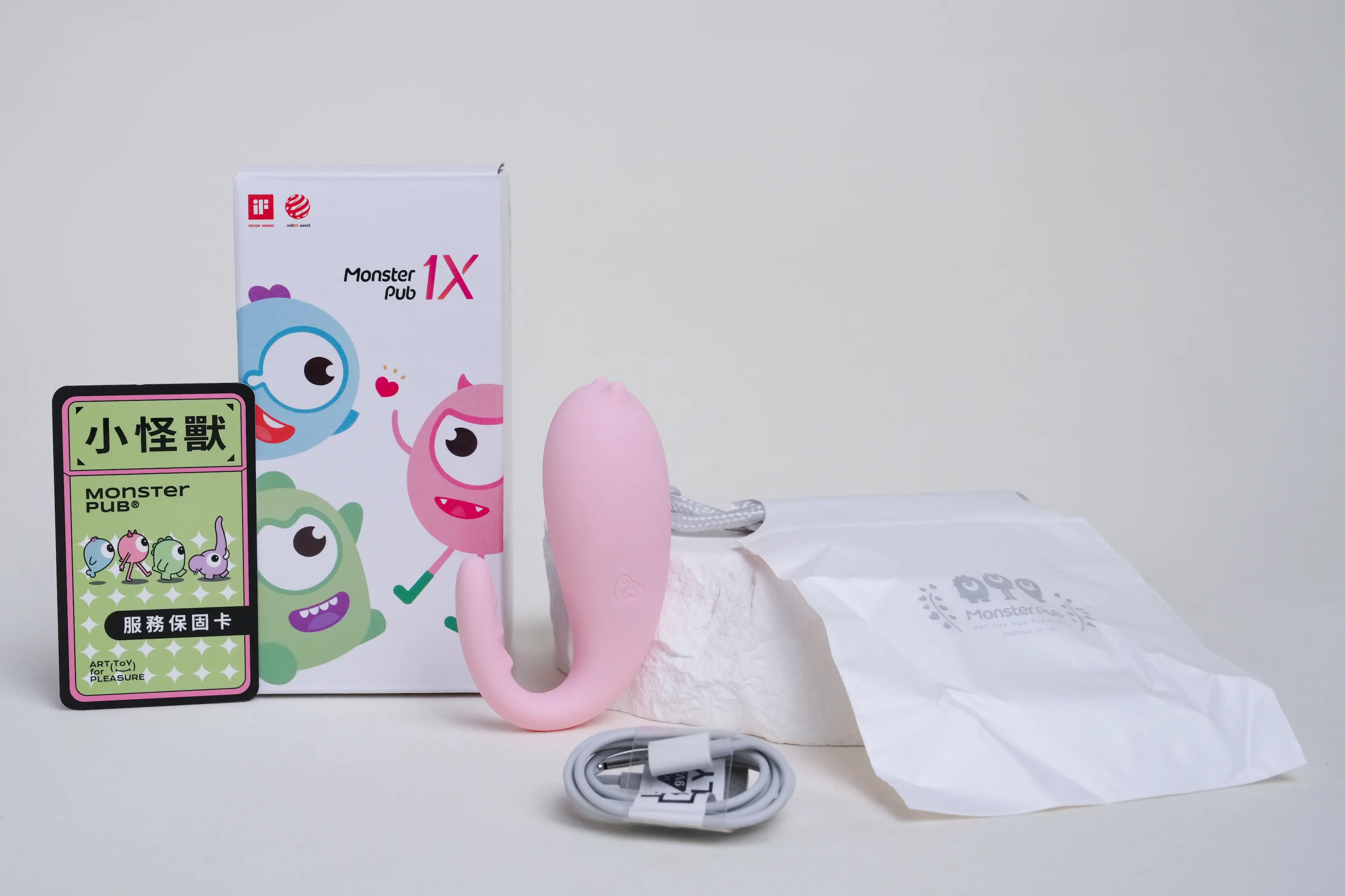 - 產品內容:小怪獸 x 1、保固卡 x 1、說明書 x 1、USB充電線 x 1、收納袋 x 1